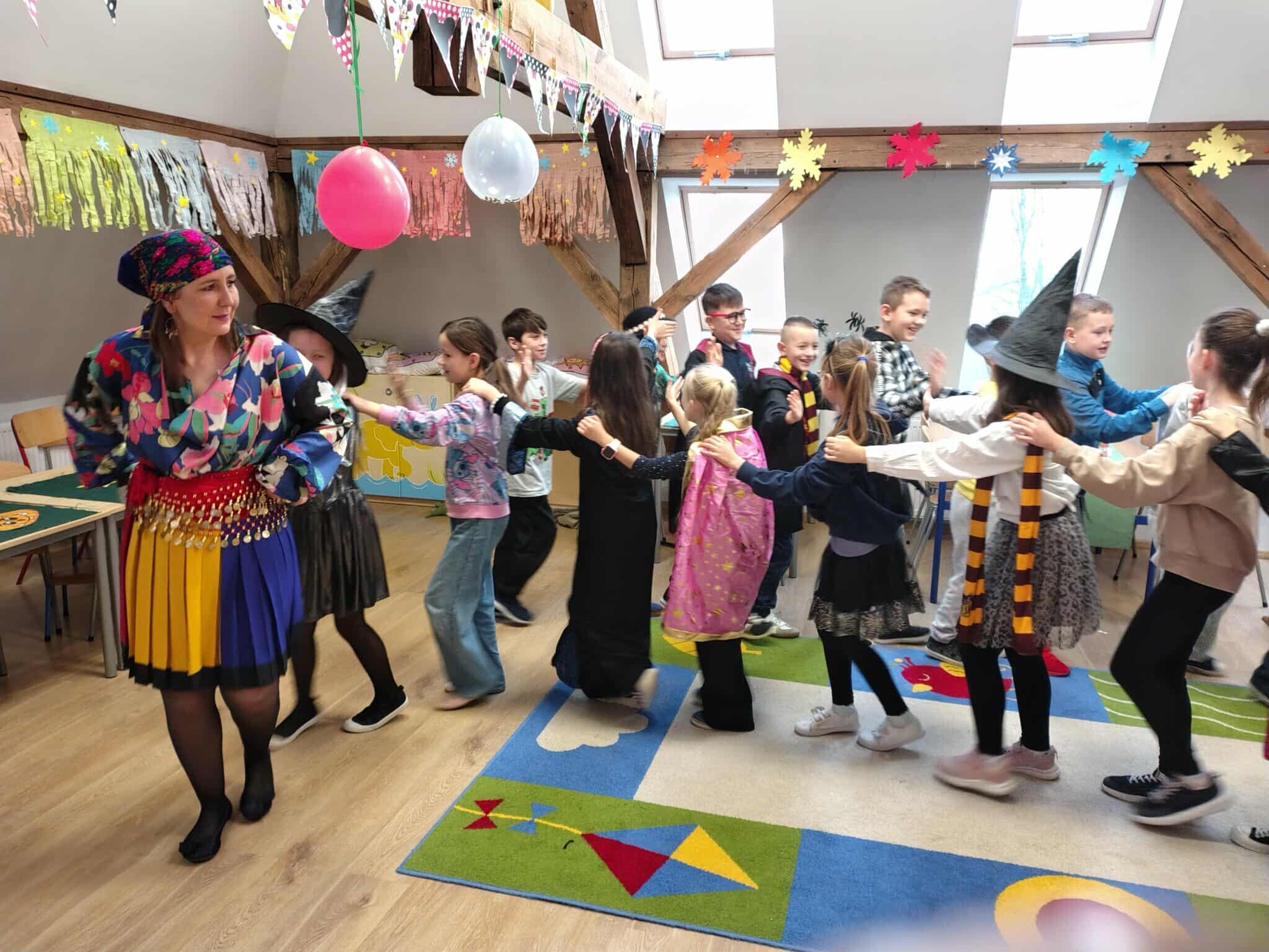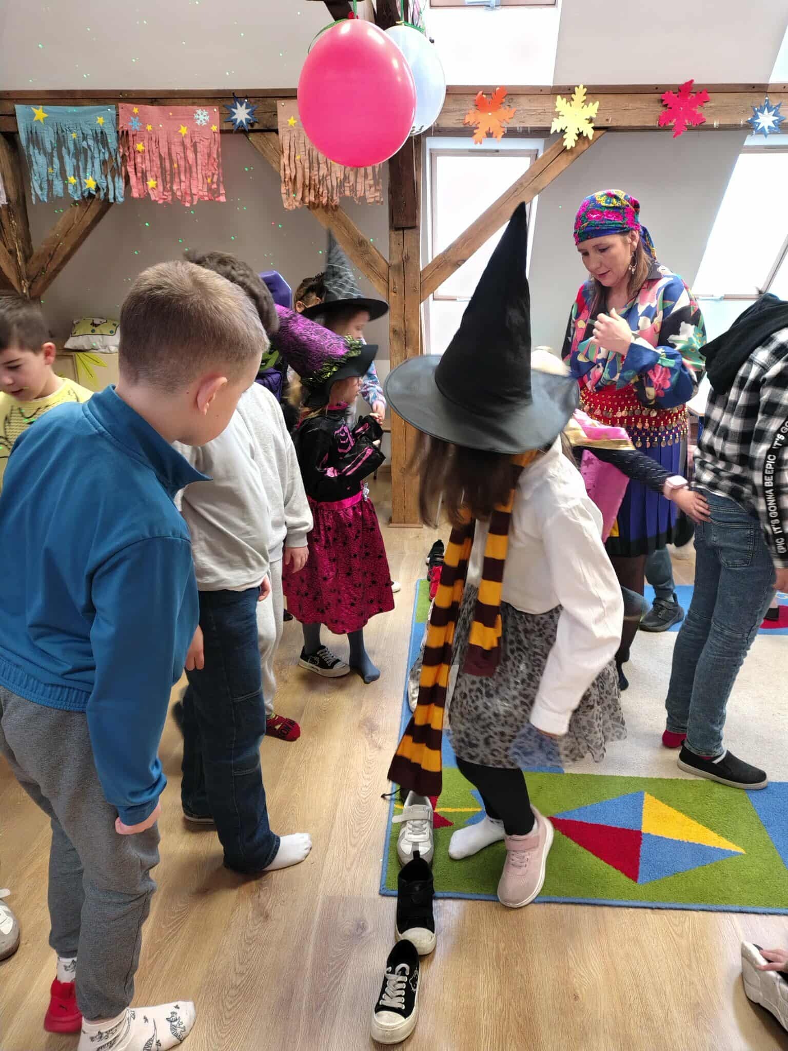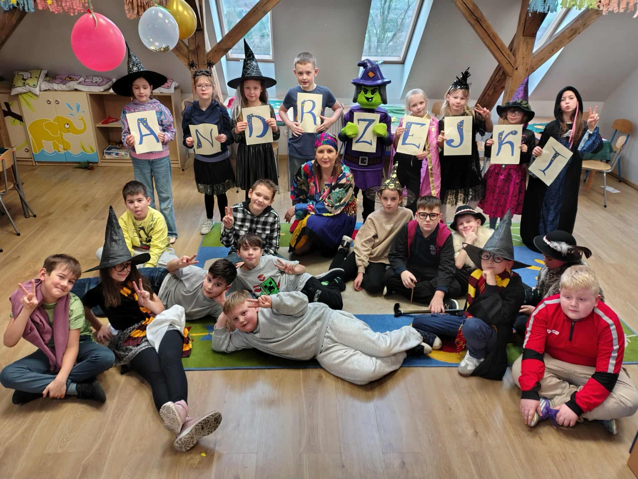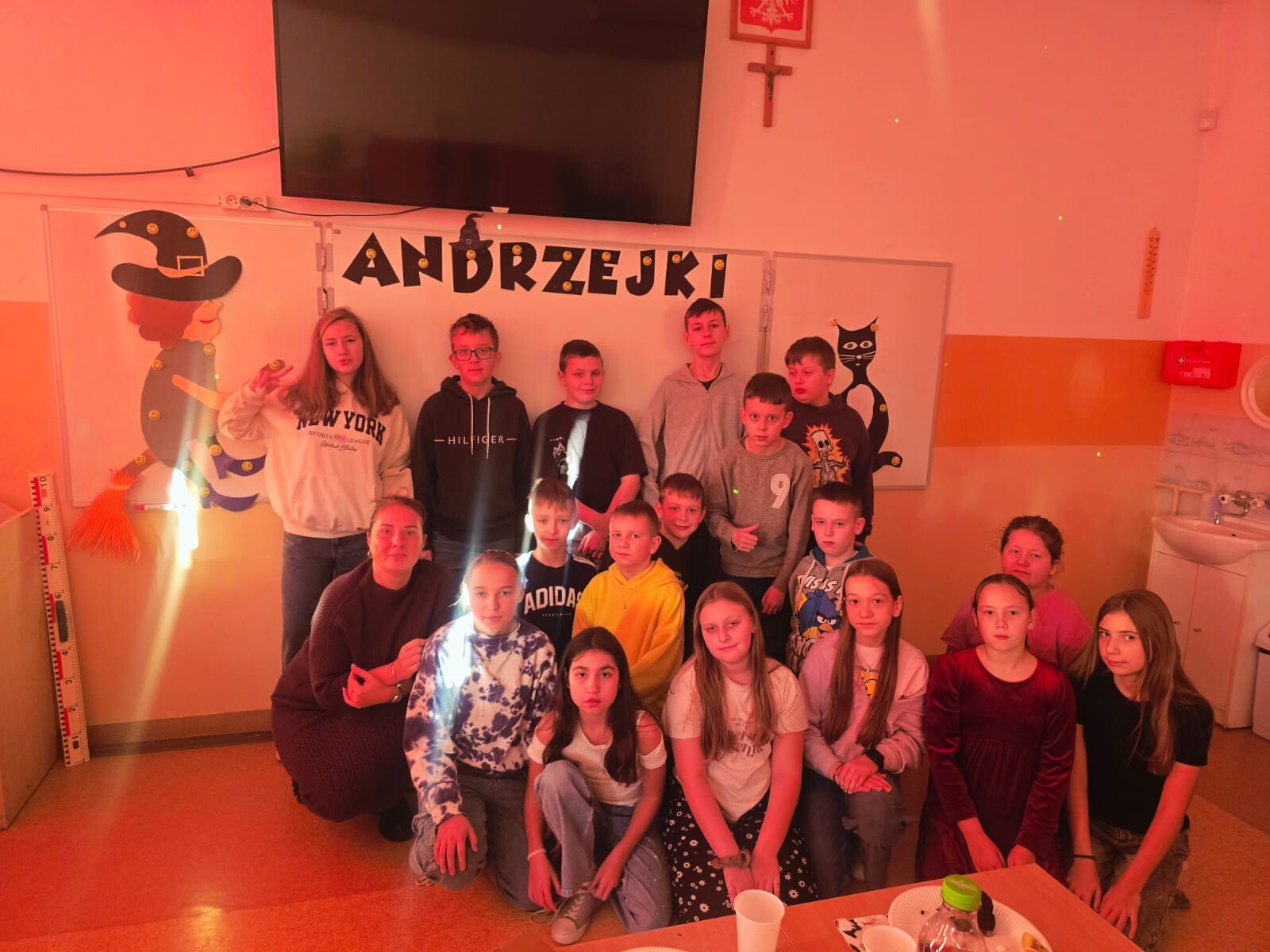 W świetlicy szkolnej odbyło się wyjątkowe andrzejkowe spotkanie, które wprowadziło wszystkich w radosny nastrój. Dzieci z klas I-III i oddziału przedszkolnego przygotowały się do tego wydarzenia wyjątkowo starannie – pięknie się przebrały, wprowadzając magiczną atmosferę.