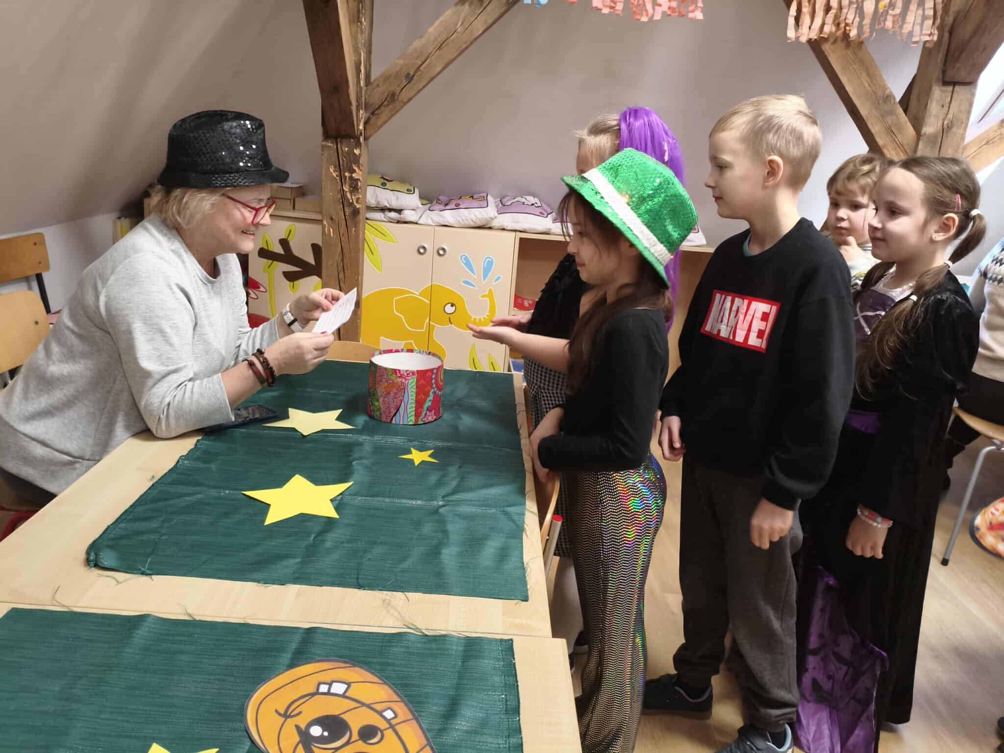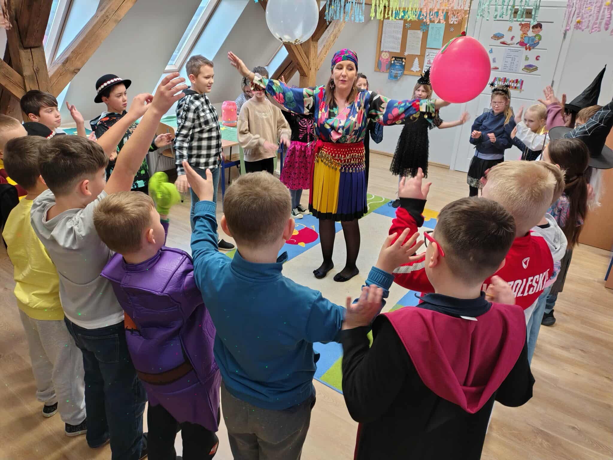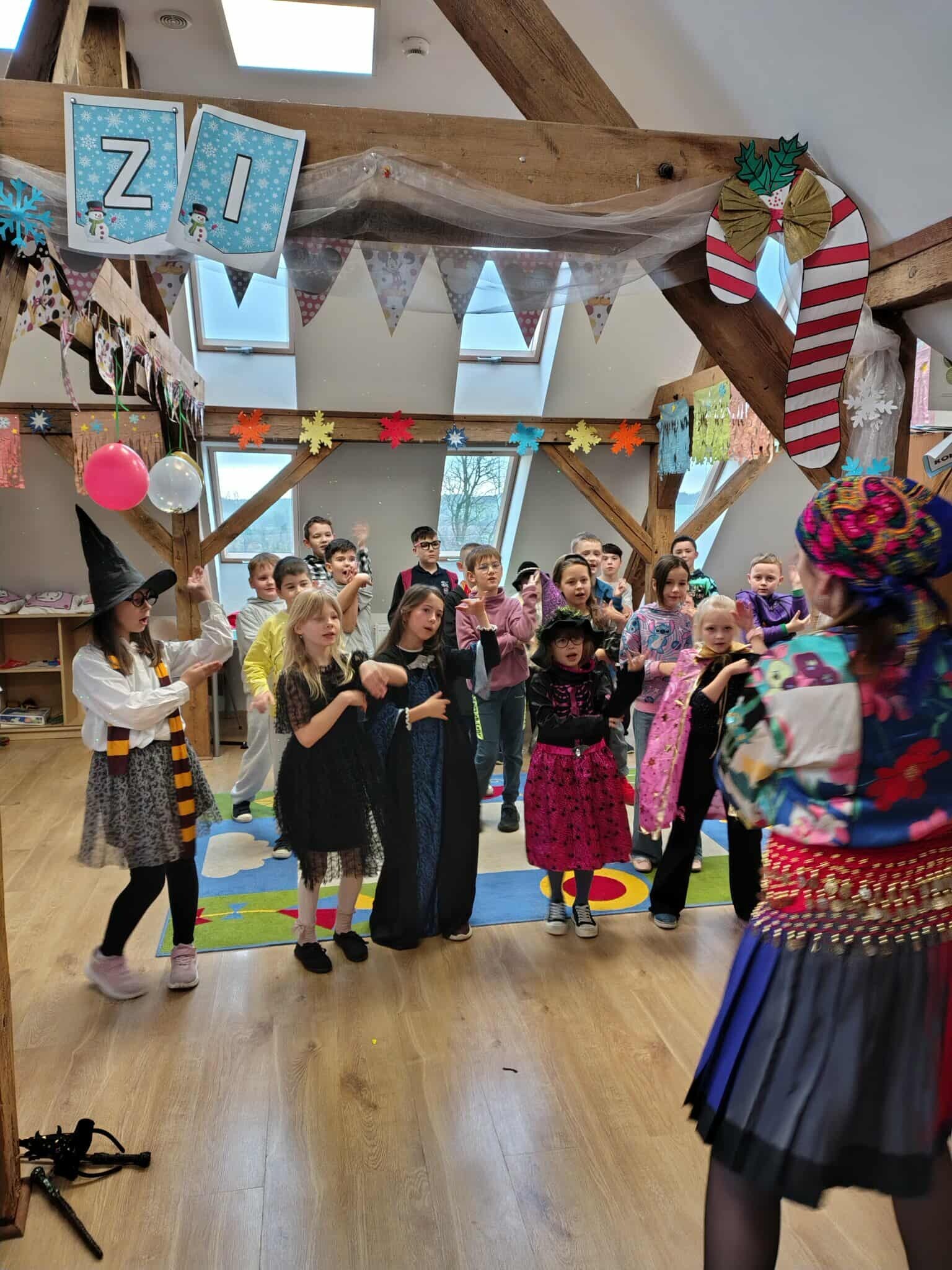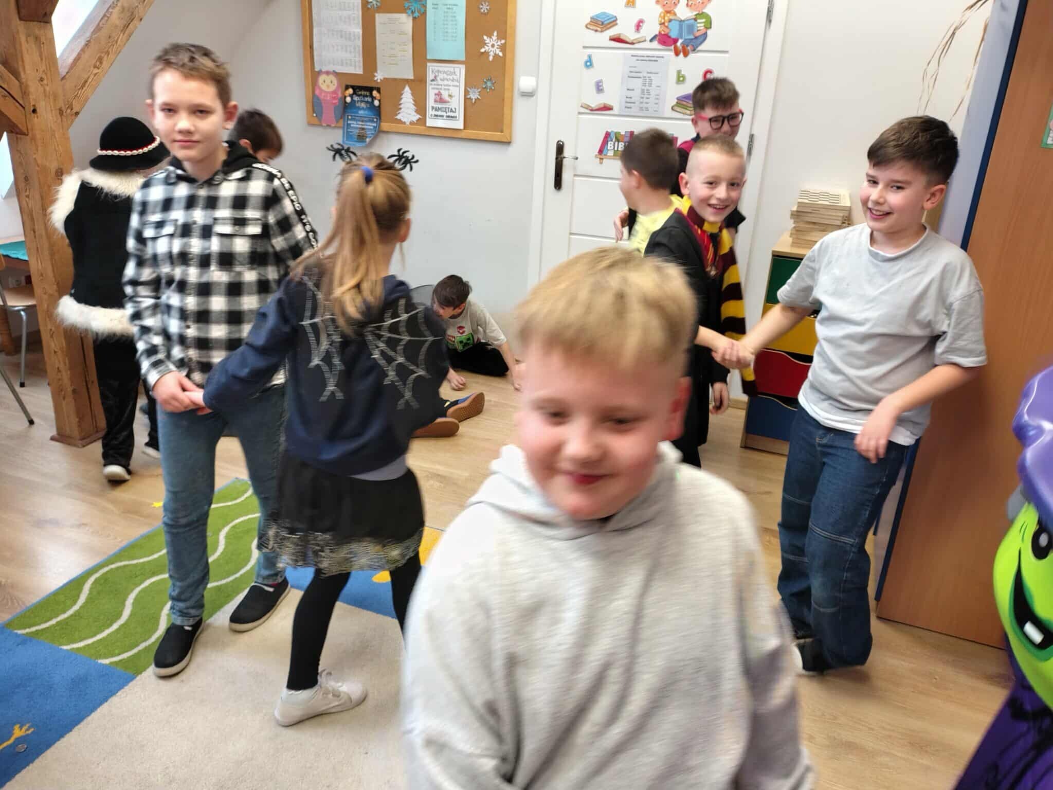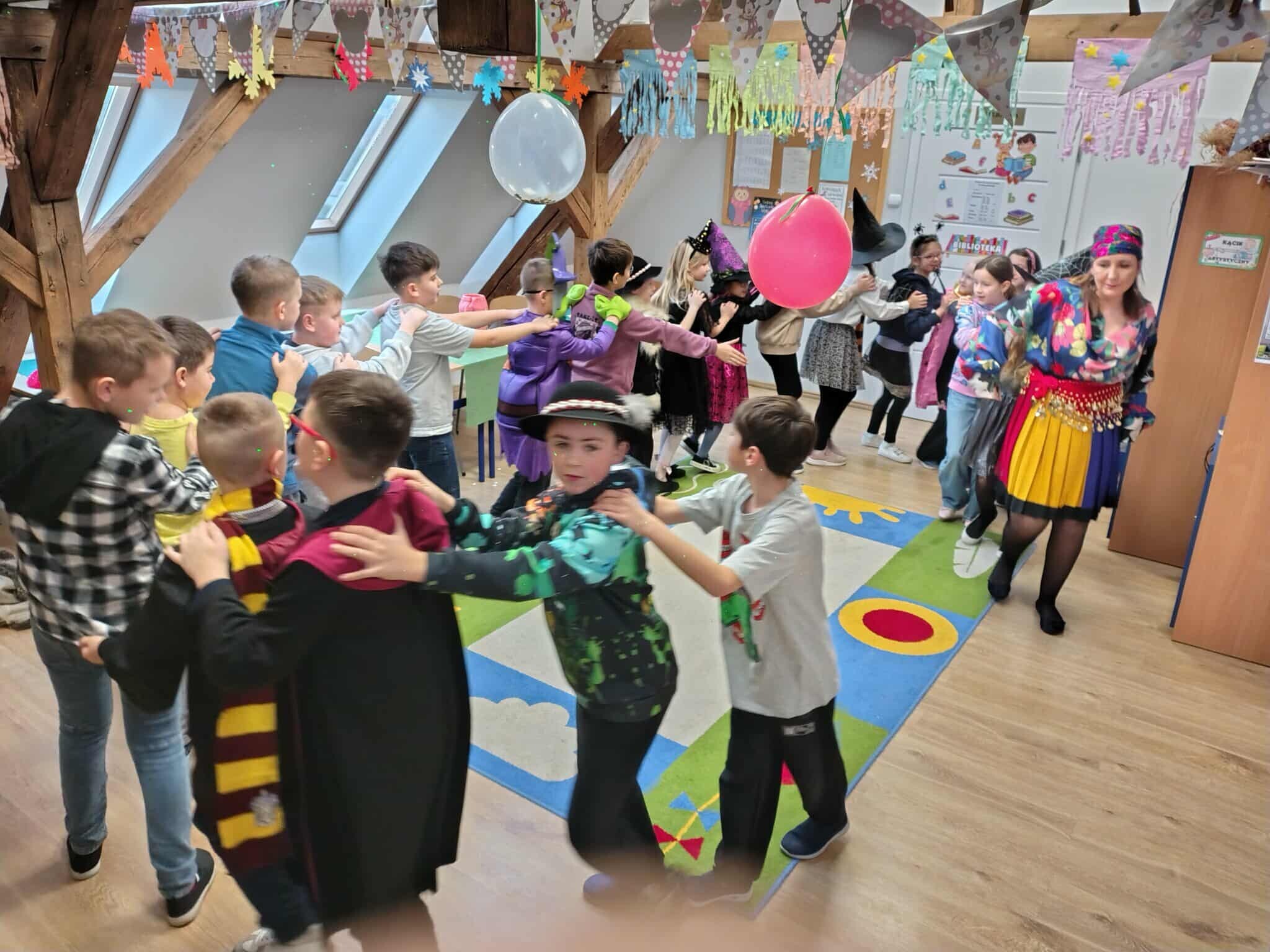 W świetlicy szkolnej odbyło się wyjątkowe andrzejkowe spotkanie, które wprowadziło wszystkich w radosny nastrój. Dzieci z klas I-III i oddziału przedszkolnego przygotowały się do tego wydarzenia wyjątkowo starannie – pięknie się przebrały, wprowadzając magiczną atmosferę.