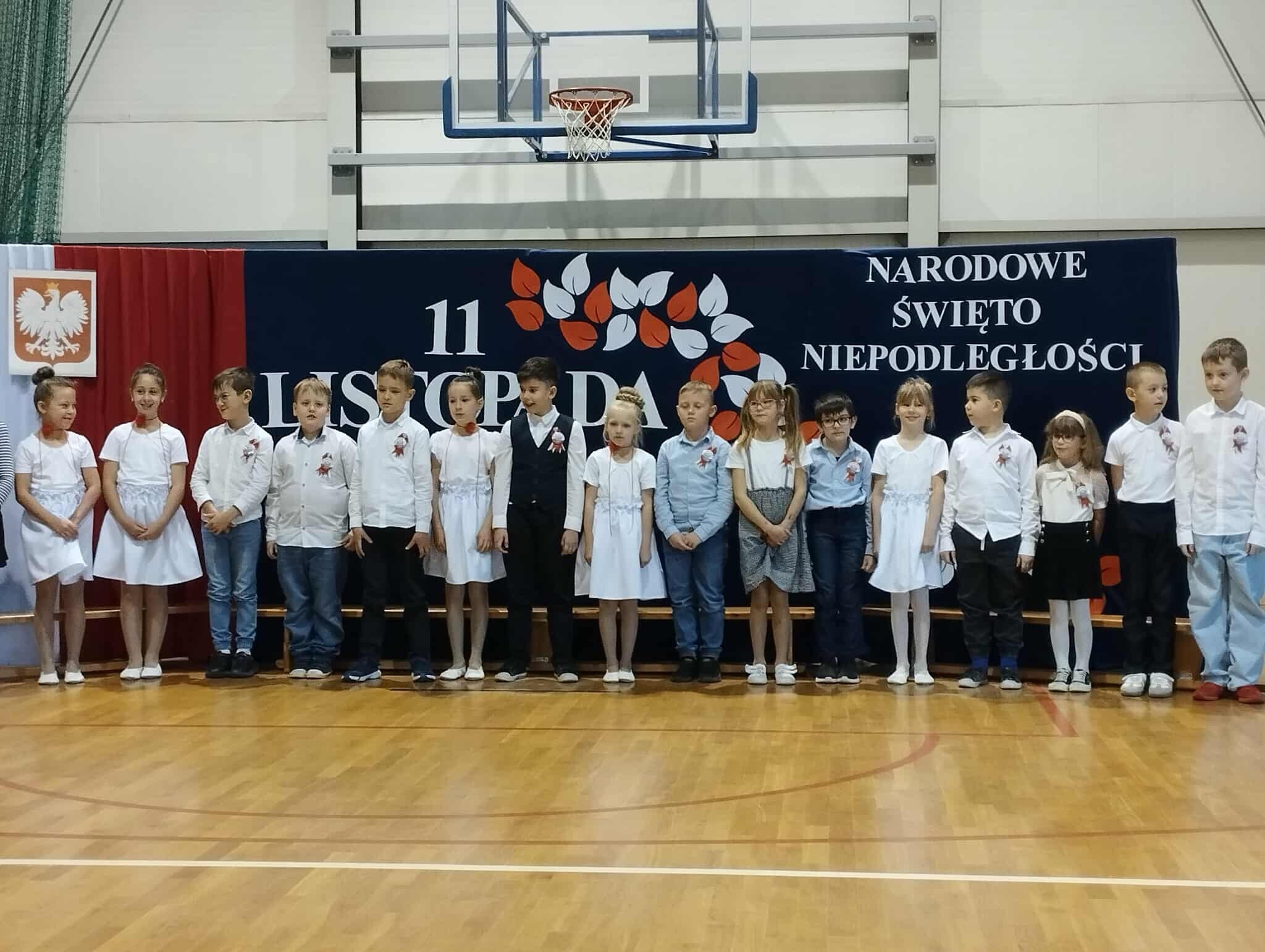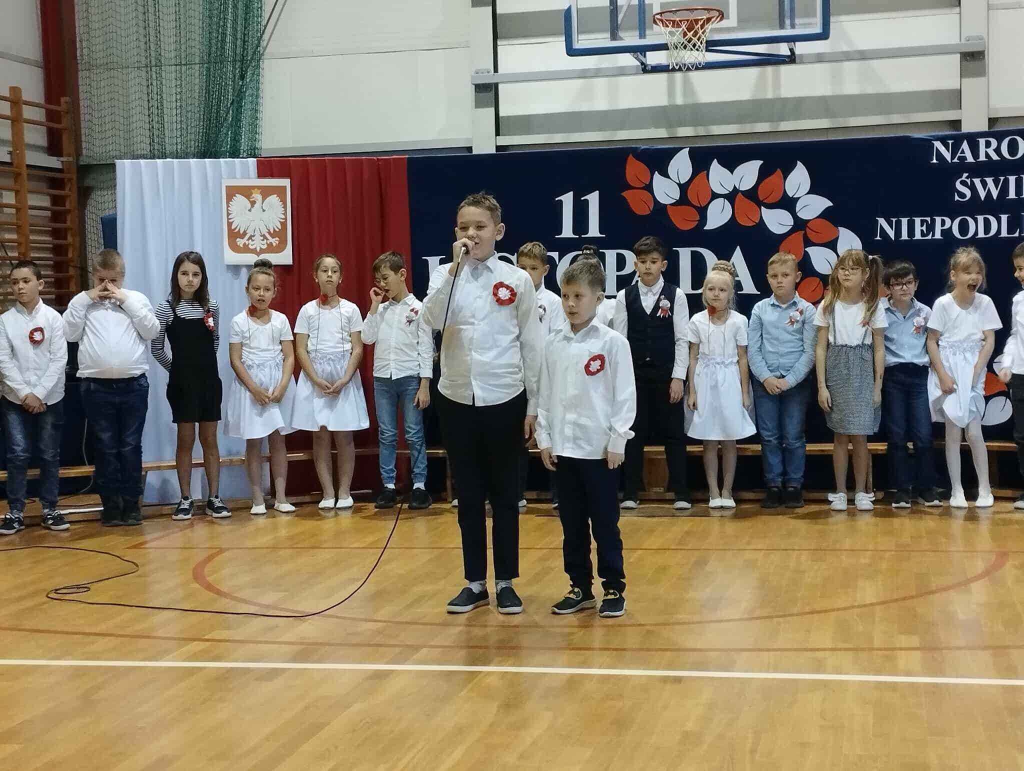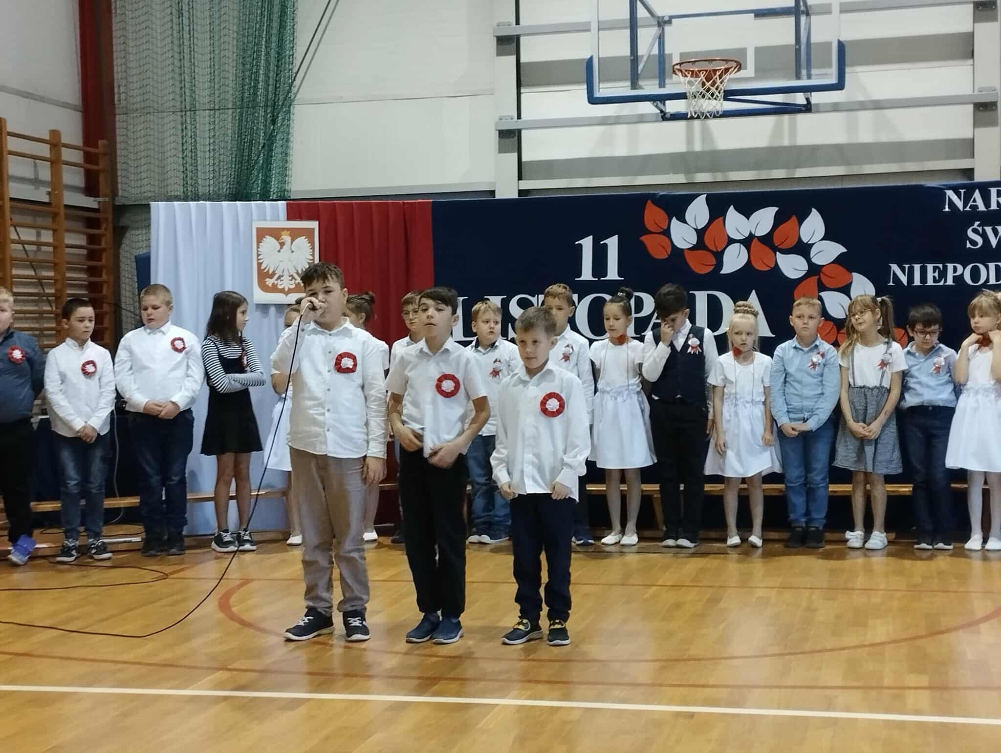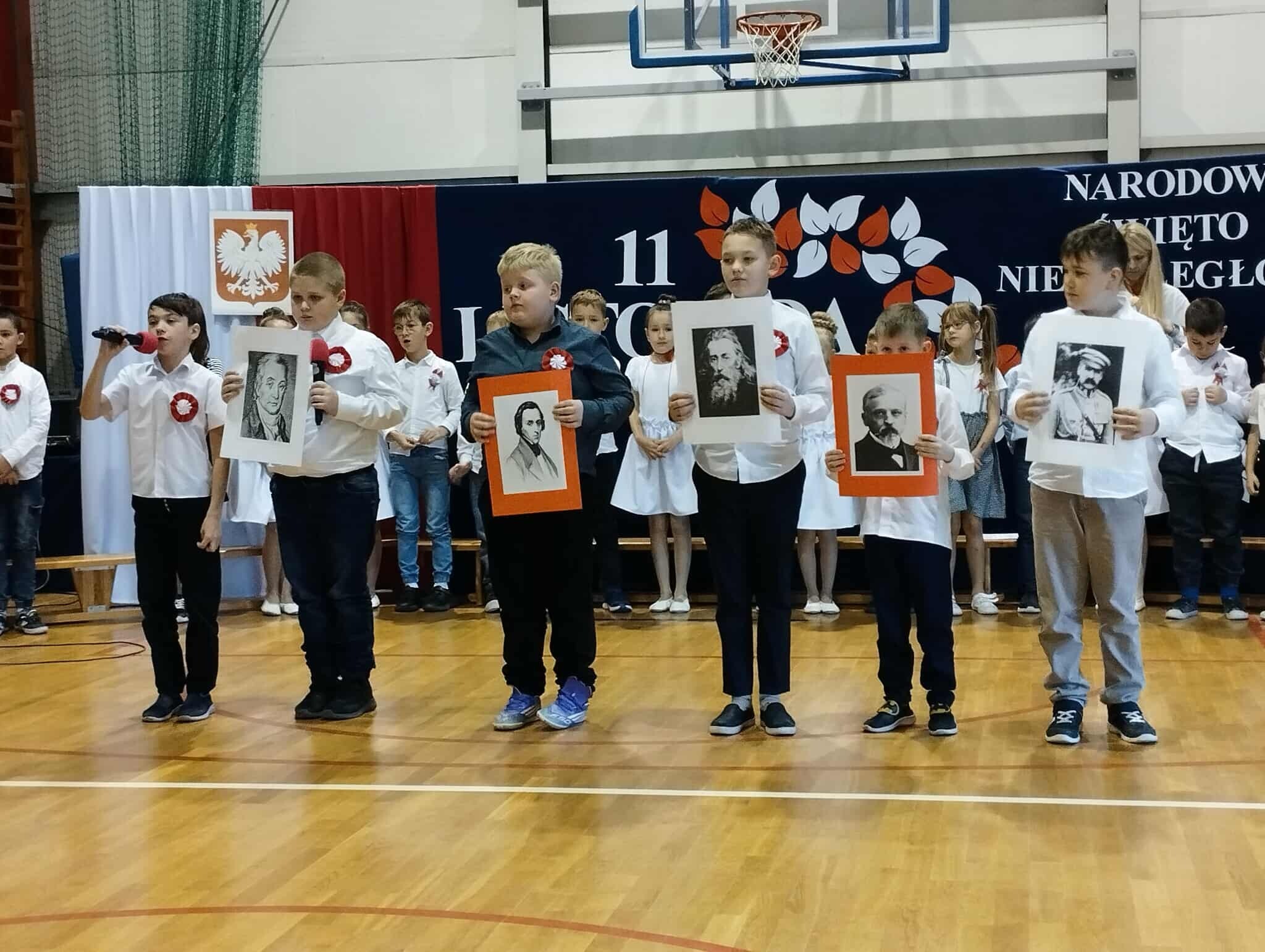 Apel rozpoczął się pięknym Polonezem w wykonaniu zespołu, który wprowadził wszystkich w podniosły, patriotyczny nastrój. Cała społeczność szkolna z dumą odśpiewała hymn państwowy, oddając hołd wszystkim, którzy walczyli o wolność i niepodległość naszej ojczyzny. Podczas apelu zabrzmiały wiersze i piosenki o miłości do ojczyzny, wolności i polskich bohaterach. Publiczność miała okazję podziwiać występy solowe – Gabriel Jaskólski z klasy VI zaśpiewał utwór „Kalina Malina”, a Aleksandra Czyżewska z klasy VII wzruszyła wszystkich wykonaniem piosenki „Orła cień”. Publiczność zachwyciły rónież dzieci z oddziału przedszkolnego, które cudownie zaśpiewały i zatańczyły piosenkę „Czterej pancerni i pies”.