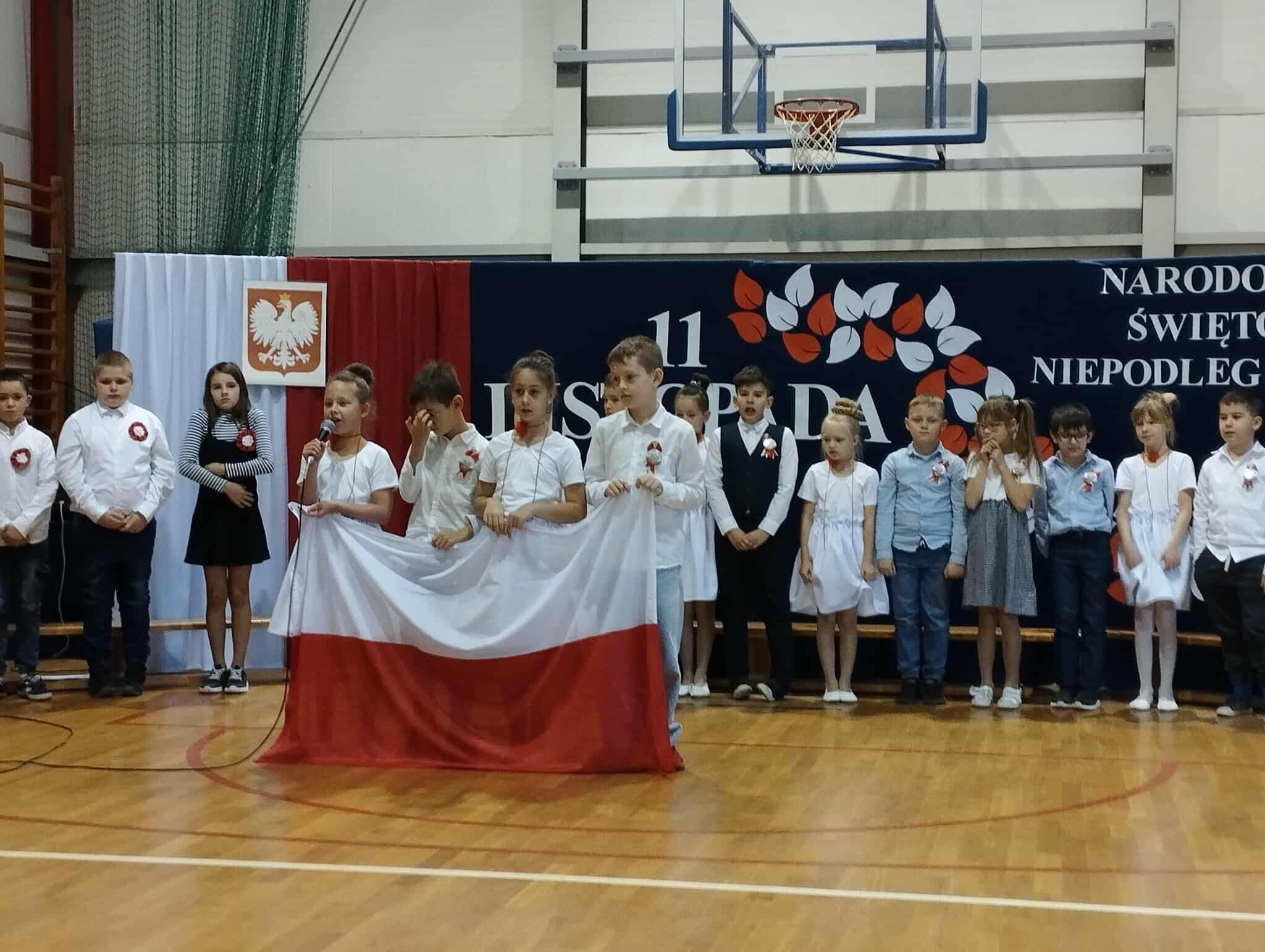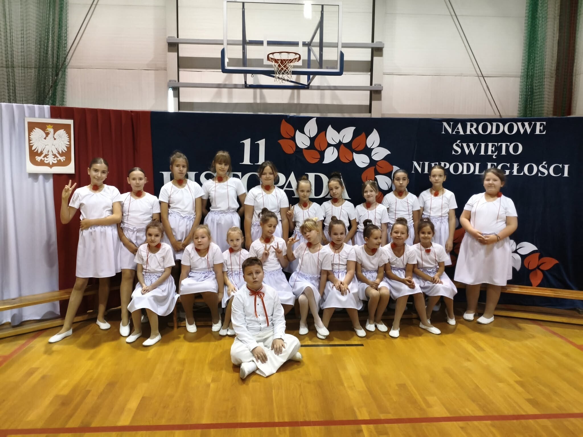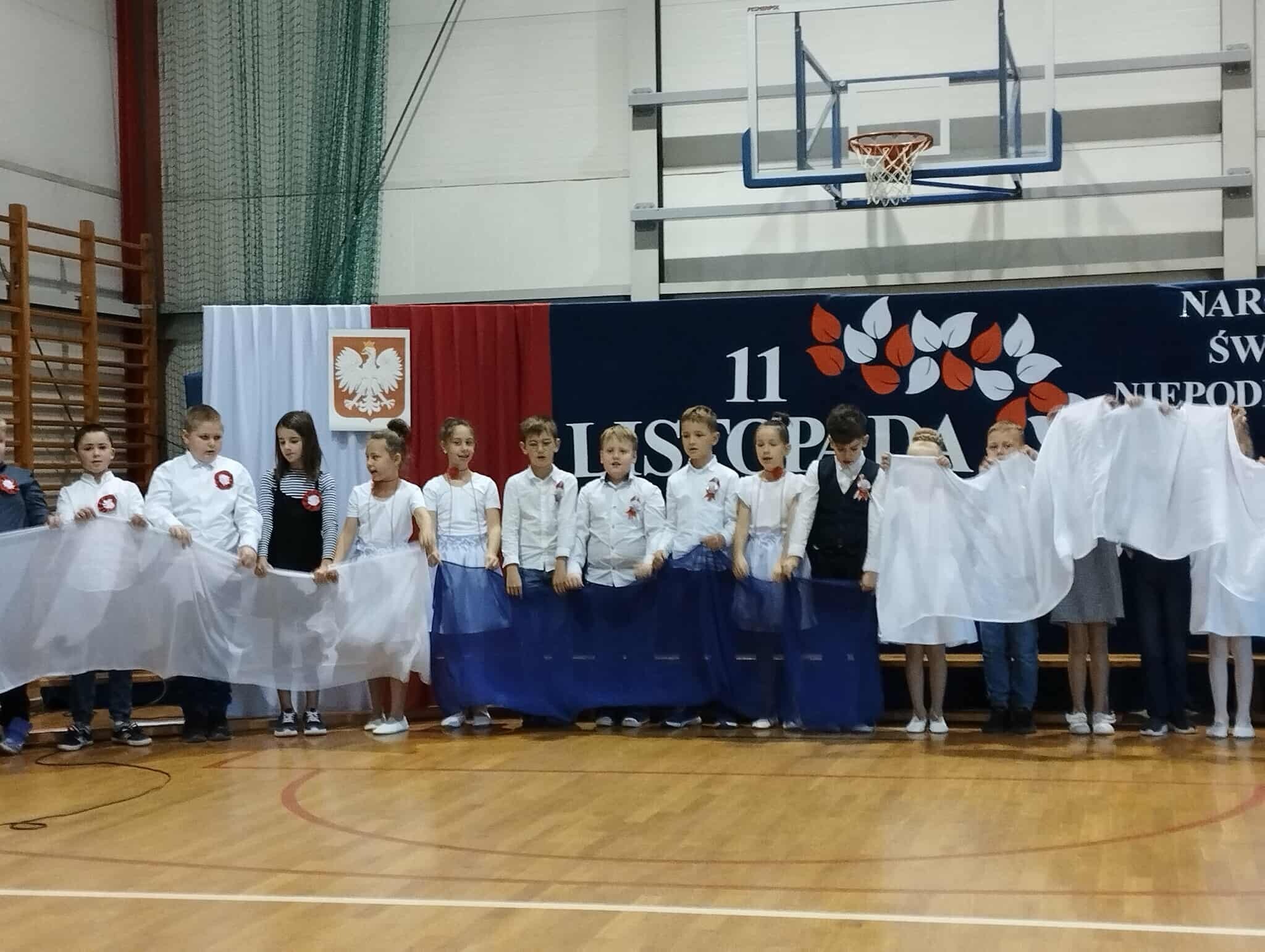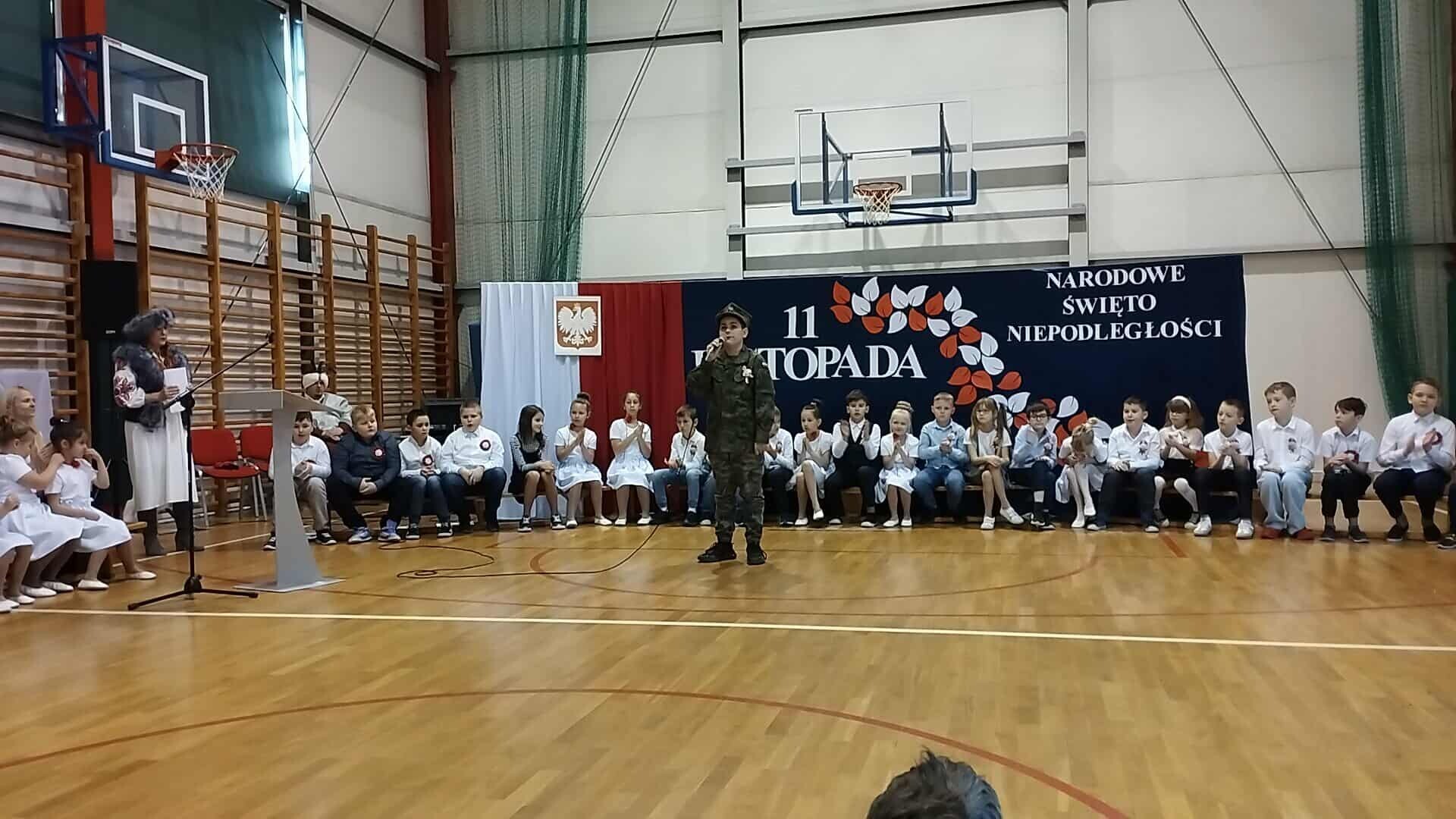 Apel rozpoczął się pięknym Polonezem w wykonaniu zespołu, który wprowadził wszystkich w podniosły, patriotyczny nastrój. Cała społeczność szkolna z dumą odśpiewała hymn państwowy, oddając hołd wszystkim, którzy walczyli o wolność i niepodległość naszej ojczyzny. Podczas apelu zabrzmiały wiersze i piosenki o miłości do ojczyzny, wolności i polskich bohaterach. Publiczność miała okazję podziwiać występy solowe – Gabriel Jaskólski z klasy VI zaśpiewał utwór „Kalina Malina”, a Aleksandra Czyżewska z klasy VII wzruszyła wszystkich wykonaniem piosenki „Orła cień”. Publiczność zachwyciły rónież dzieci z oddziału przedszkolnego, które cudownie zaśpiewały i zatańczyły piosenkę „Czterej pancerni i pies”.