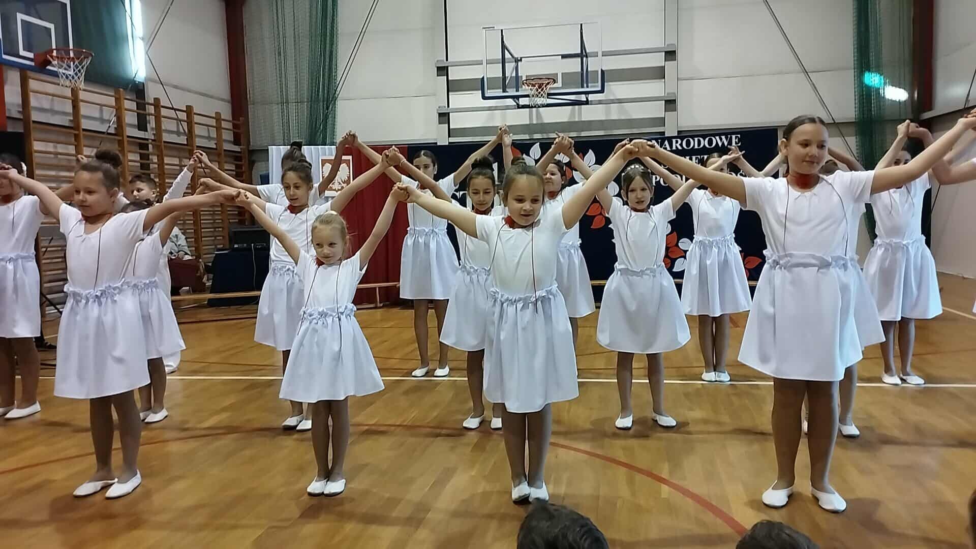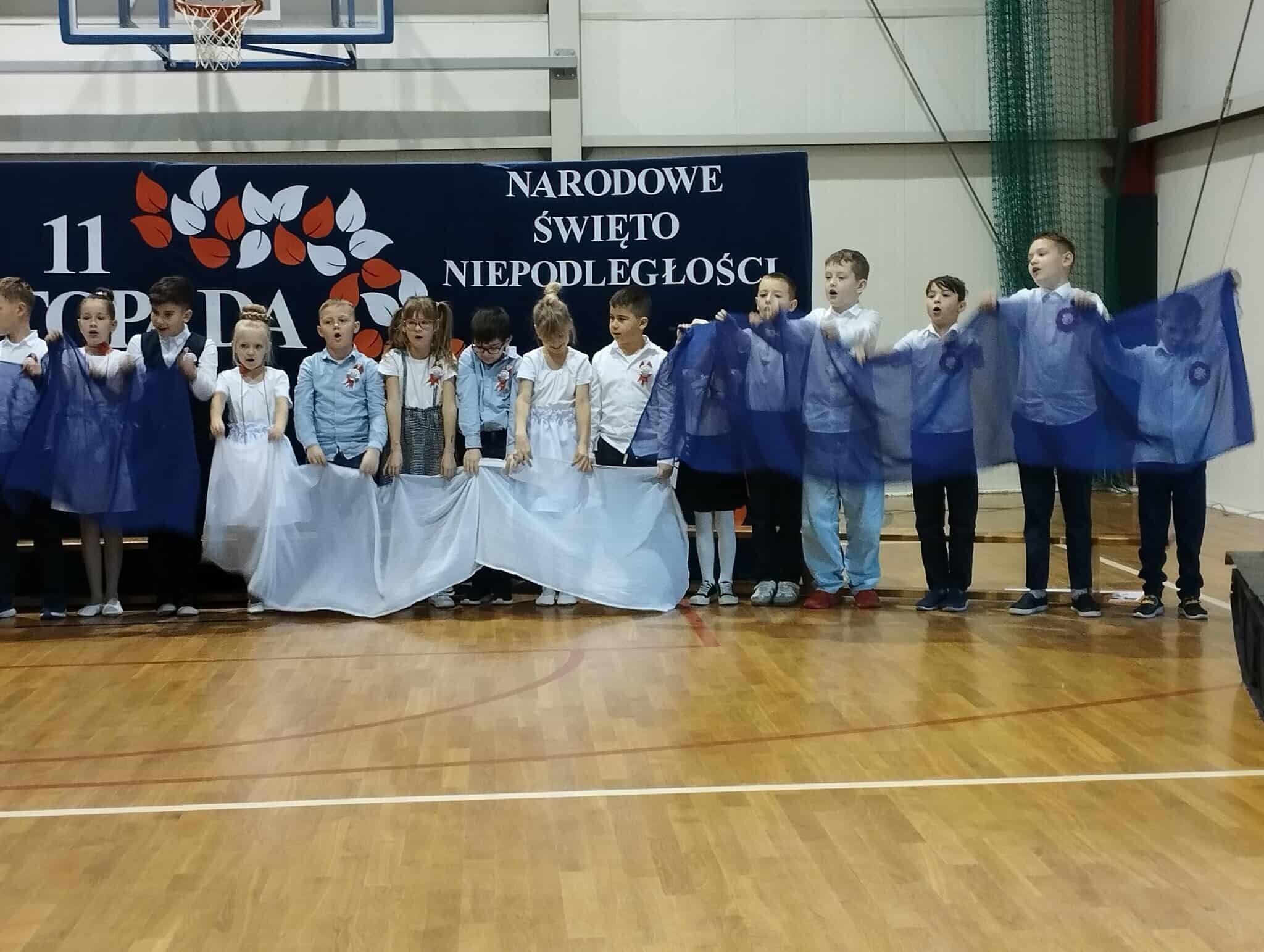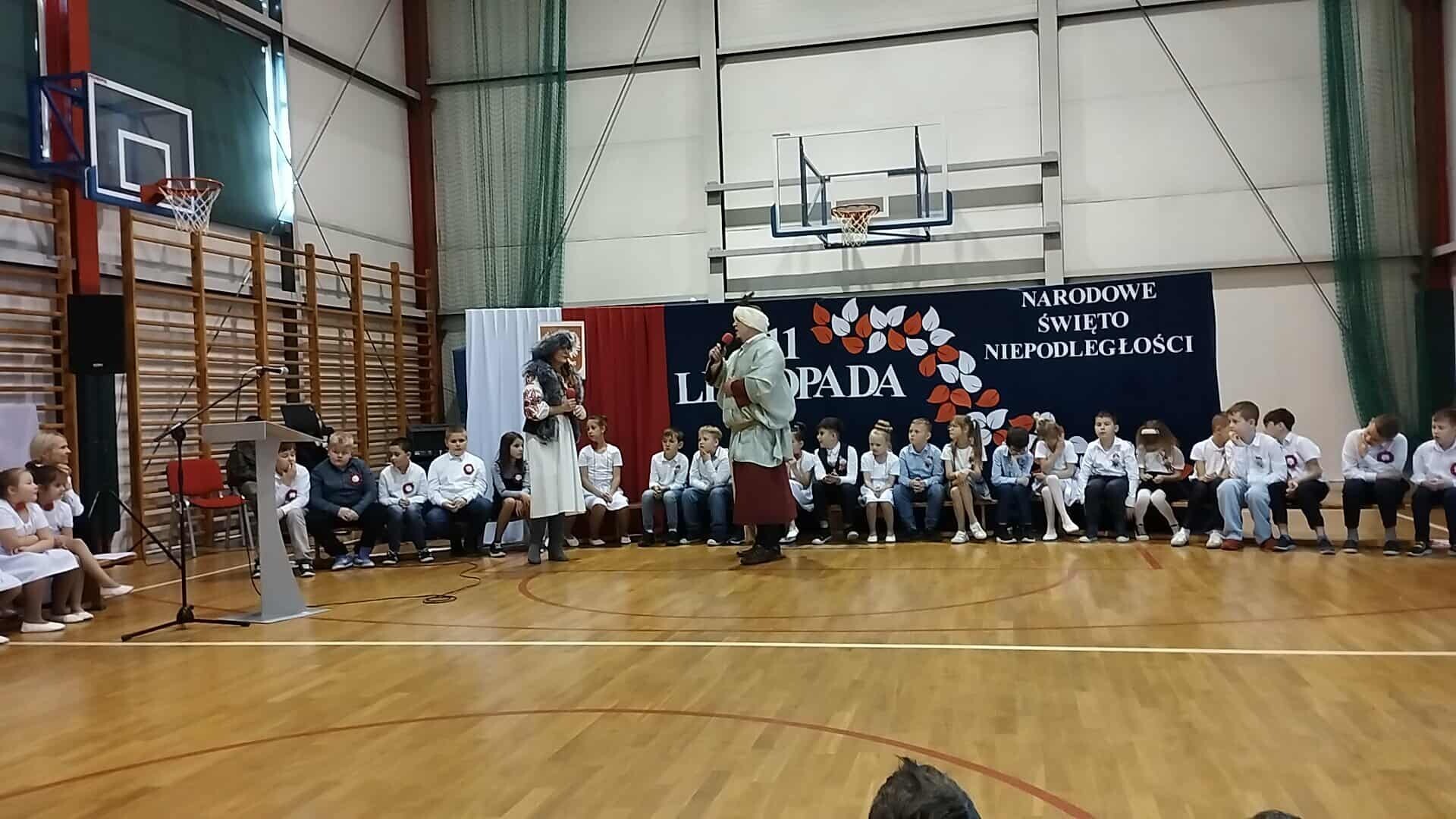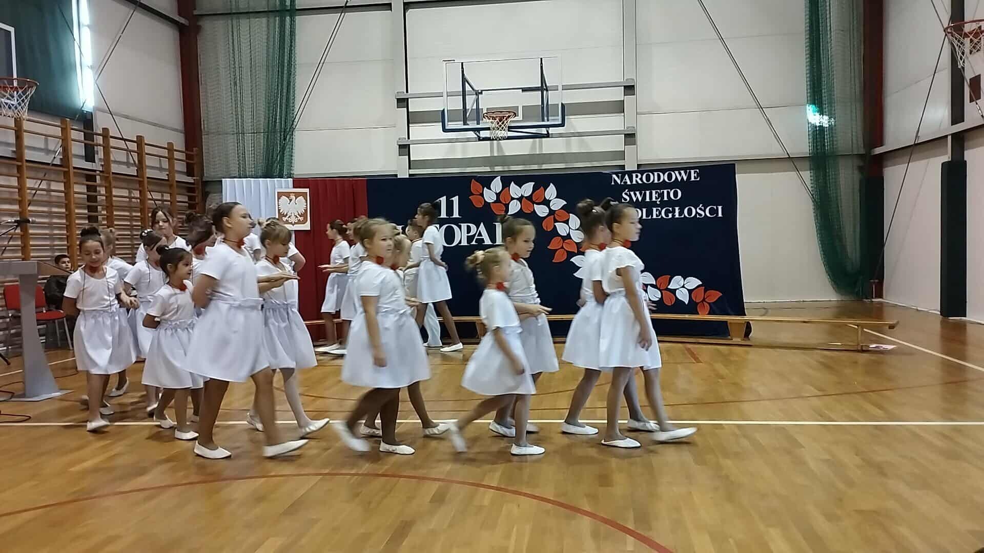 Apel rozpoczął się pięknym Polonezem w wykonaniu zespołu, który wprowadził wszystkich w podniosły, patriotyczny nastrój. Cała społeczność szkolna z dumą odśpiewała hymn państwowy, oddając hołd wszystkim, którzy walczyli o wolność i niepodległość naszej ojczyzny. Podczas apelu zabrzmiały wiersze i piosenki o miłości do ojczyzny, wolności i polskich bohaterach. Publiczność miała okazję podziwiać występy solowe – Gabriel Jaskólski z klasy VI zaśpiewał utwór „Kalina Malina”, a Aleksandra Czyżewska z klasy VII wzruszyła wszystkich wykonaniem piosenki „Orła cień”. Publiczność zachwyciły rónież dzieci z oddziału przedszkolnego, które cudownie zaśpiewały i zatańczyły piosenkę „Czterej pancerni i pies”.