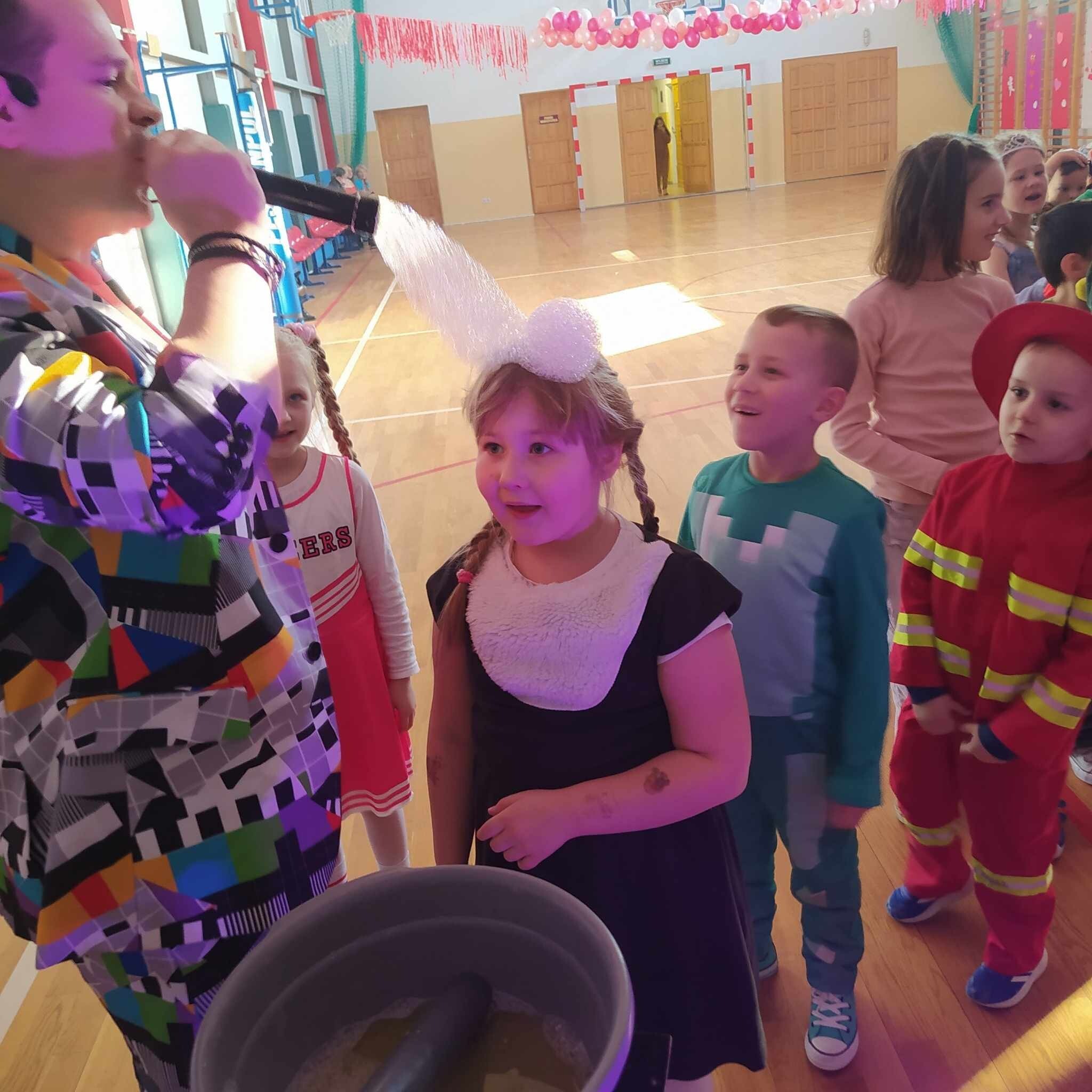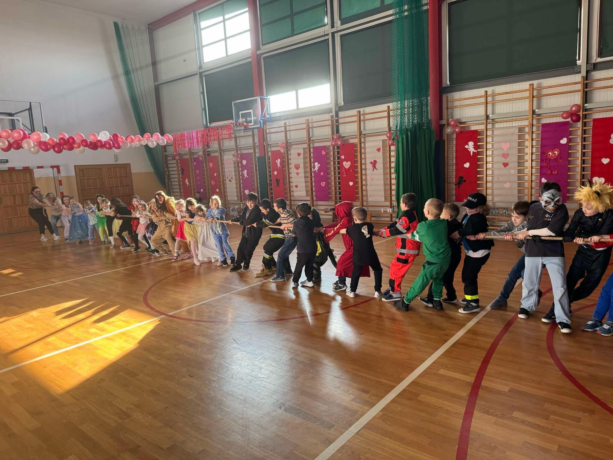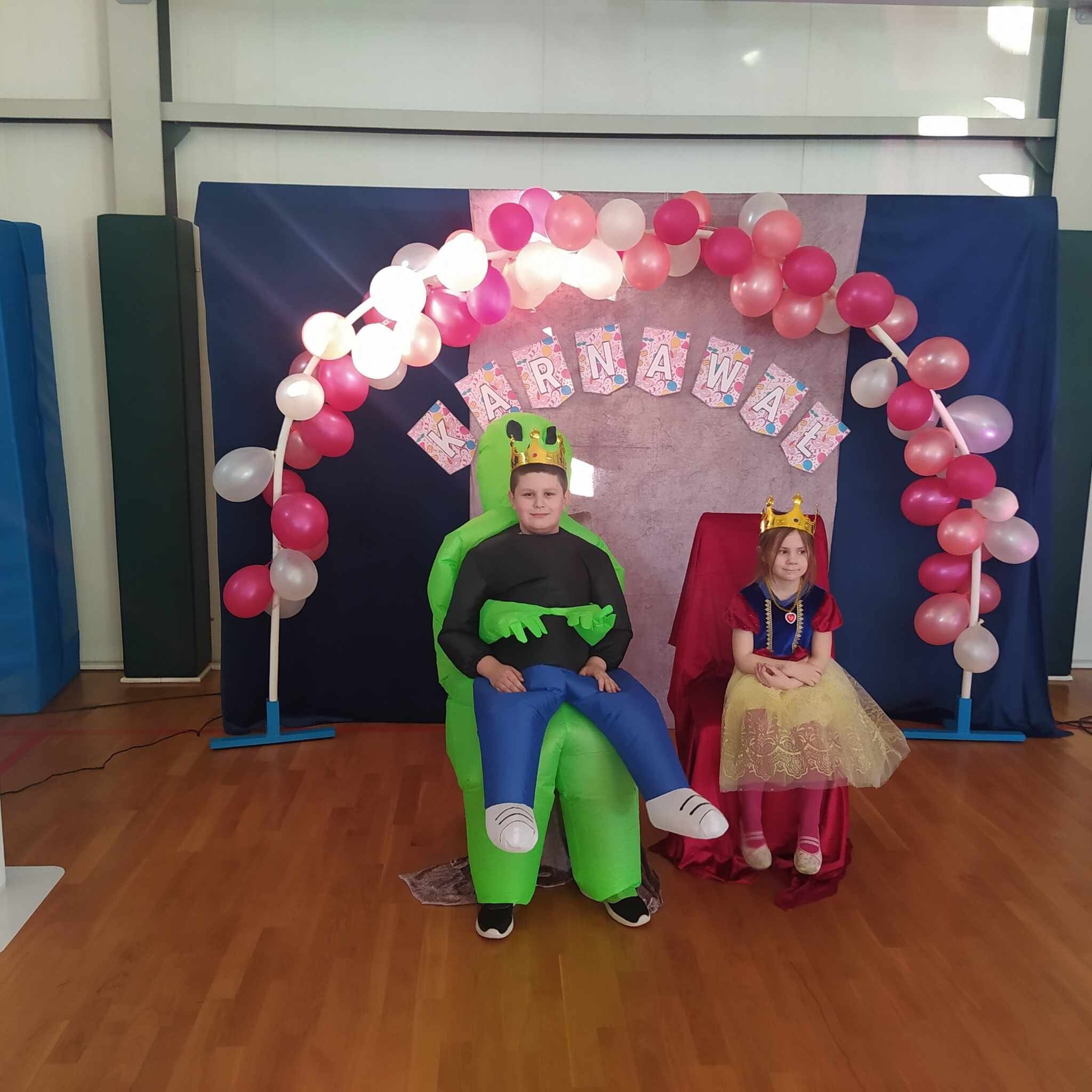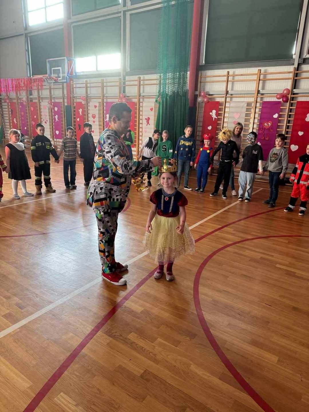 W trakcie imprezy przeprowadzone zostały liczne konkursy z nagrodami. Wybrano także króla i królową balu w klasach młodszych I - III i OP oraz klasach starszych IV - VIII. W większości dzieci były przebrane za ulubione postacie z bajek, ale także za bohaterów filmów, kreskówek i komiksów. Zaangażowanie uczniów w zabawę, ich radosne miny i towarzyszące pozytywne emocje świadczą, że dzisiejsza zabawa karnawałowa udała się i na długo pozostanie w pamięci naszych wychowanków.