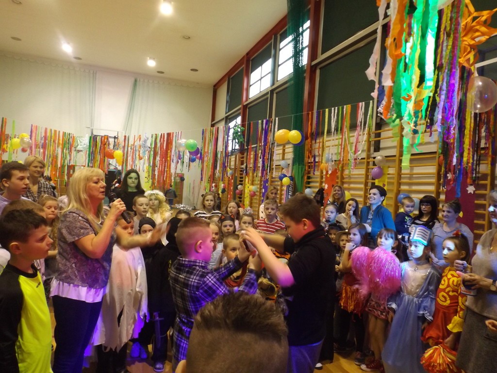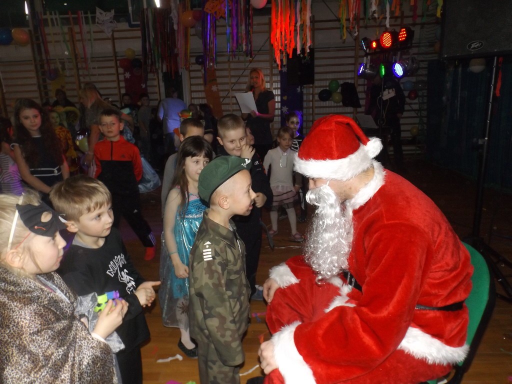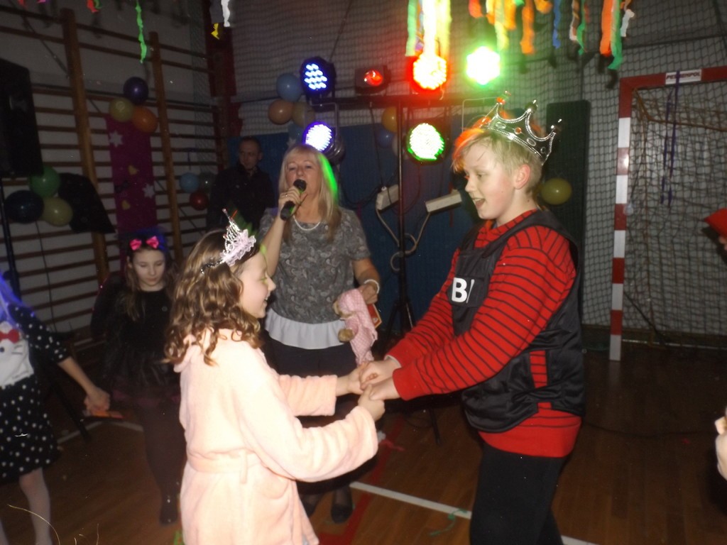 W piątek, 3 lutego 2017 r. uczniowie naszej szkoły uczestniczyli w długo wyczekiwanym balu przebierańców. Dzieci od samego rana przechadzały się po korytarzach szkoły cudownie wystrojone w najrozmaitsze postacie z bajek, filmów itp. W pięknie udekorowanej w balony, serpentyny, bibułę oraz elementy zimowe sali gimnastycznej wszyscy przystąpili do wspólnej zabawy. Nie zabrakło oczywiście konkursów, w których można było wygrać ciekawe nagrody ufundowane przez Radę Rodziców. Najmłodsze dzieci brały udział w konkursie plastycznym, zręcznościowym z czapką niewidką oraz konkursie na najciekawszy strój karnawałowy. Starsi zaś sprawdzali swoje umiejętności w śpiewaniu przepisu kulinarnego na melodię „Wlazł kotek na płotek” oraz dmuchaniu balona aż do jego pęknięcia. Śmiechu było co niemiara. Przez cały bal, nauczyciele oraz rodzice wypatrywali króla oraz królowej balu. No i wypatrzyli… Zdecydowanie w tej konkurencji wygrali Karina Grabowska z klasy czwartej i Staś Langer z klasy szóstej, którzy wspaniale tańczyli podczas całej zabawy. Rodzice przygotowali uczestnikom balu pączki oraz soczki dla zaspokojenia pragnienia po wyczerpujących tańcach. Na koniec zabawy dzieci przywitały głośną owacją Mikołaja, który przybył do nich z paczkami. Wszyscy zatańczyli w dużym kole wspólny taniec. Należałoby wspomnieć, że dzieci bawiły się dzięki wspaniałym piosenkom przygotowanym przez zaproszonego didżeja. Bal karnawałowy uważamy za bardzo udany !!!