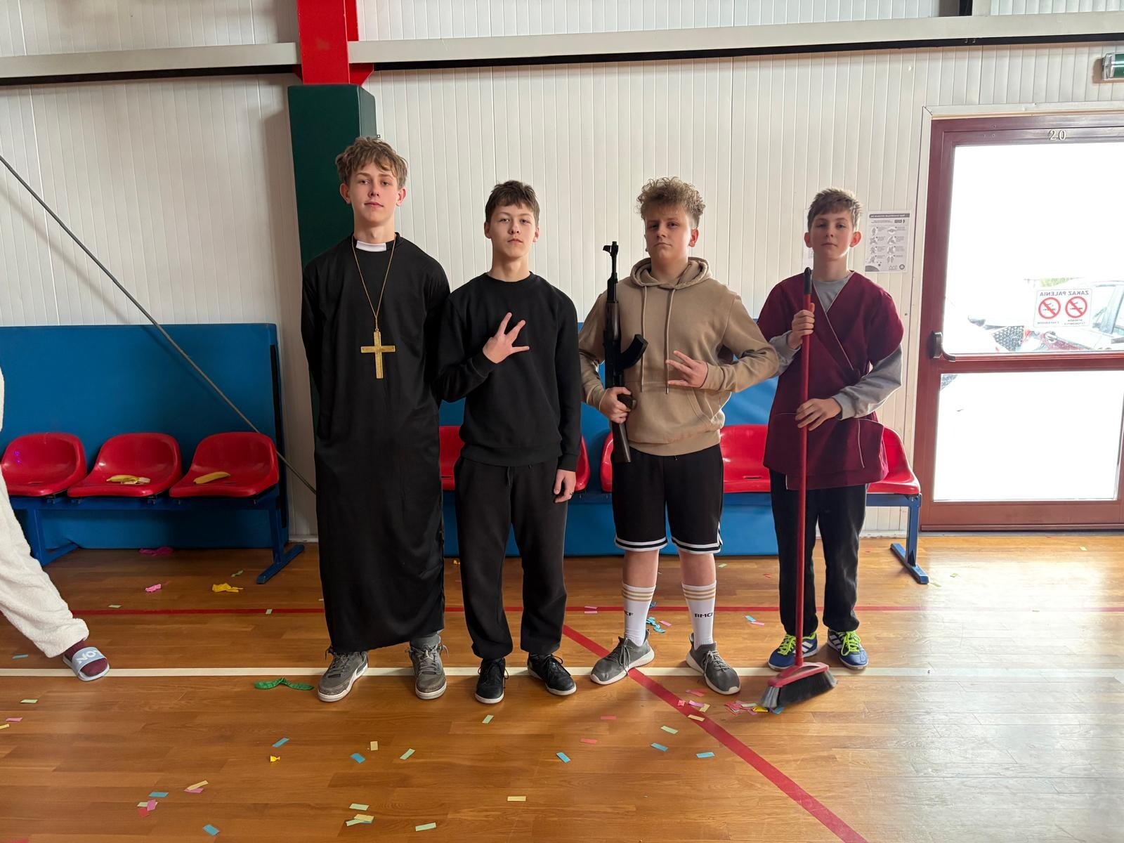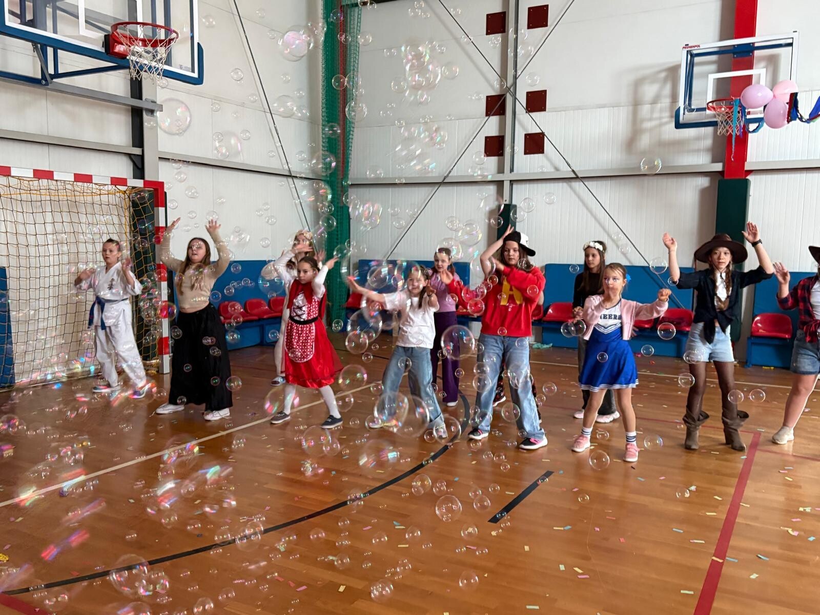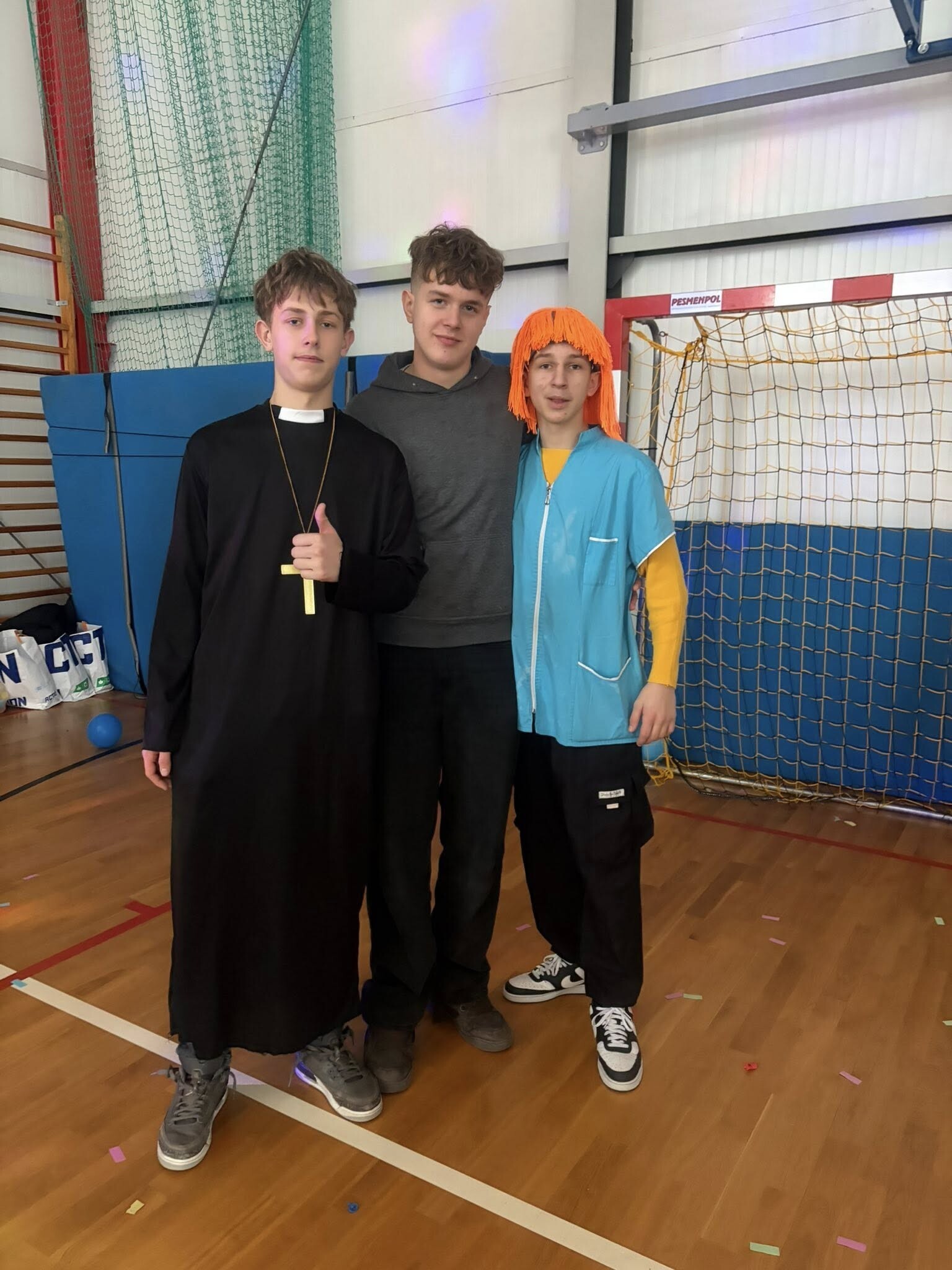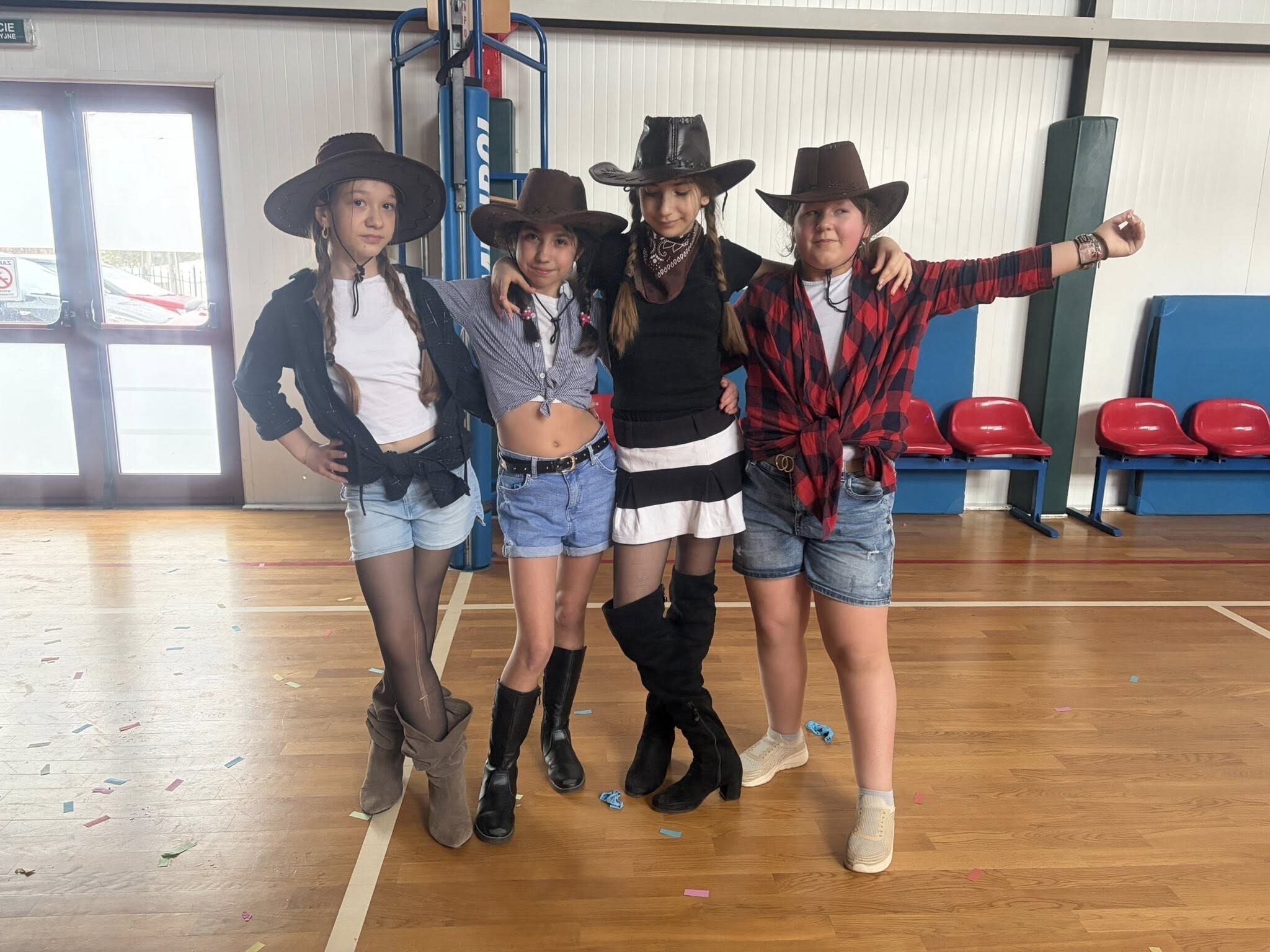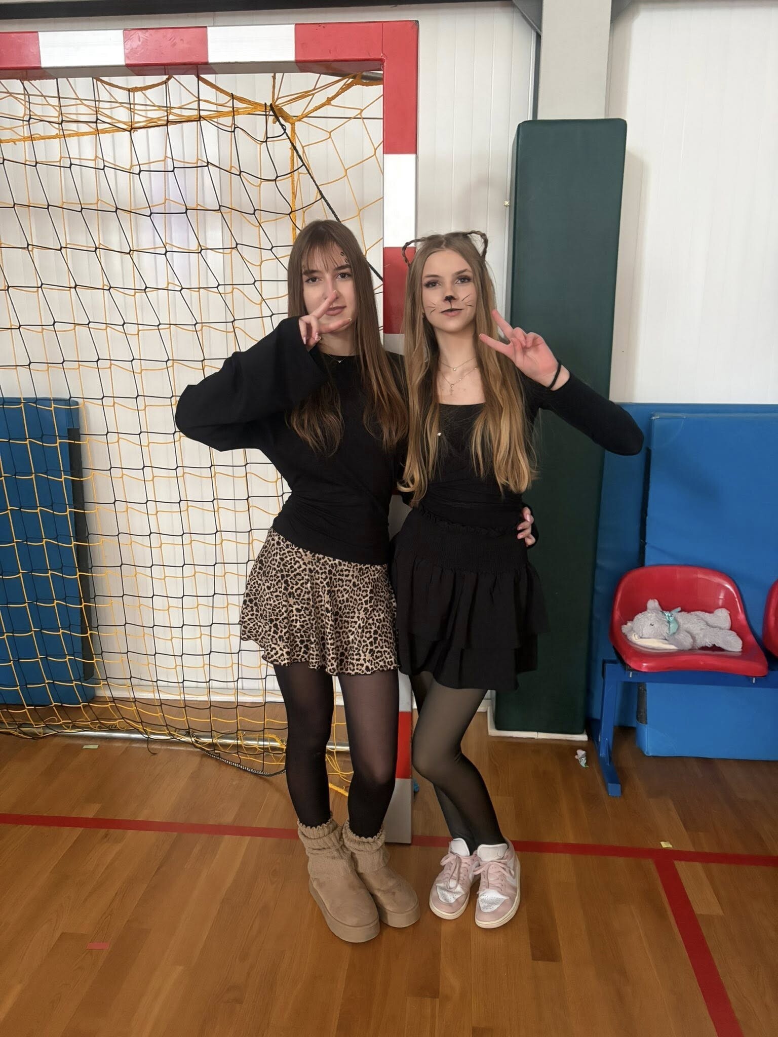 Jako pierwsi parkiet opanowali uczniowie zerówki oraz klas I–III. Wspólnie z animatorką, panią Ewą, bawili się przy wesołej muzyce, brali udział w konkursach i zabawach tanecznych. Kolorowe stroje, uśmiechy i mnóstwo energii sprawiły, że sala zamieniła się w prawdziwą krainę karnawałowej radości!