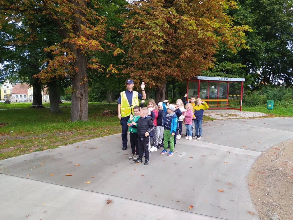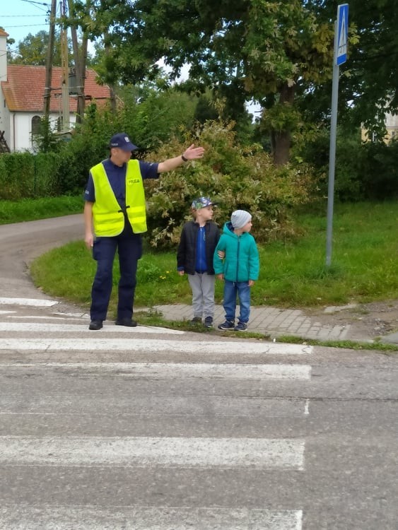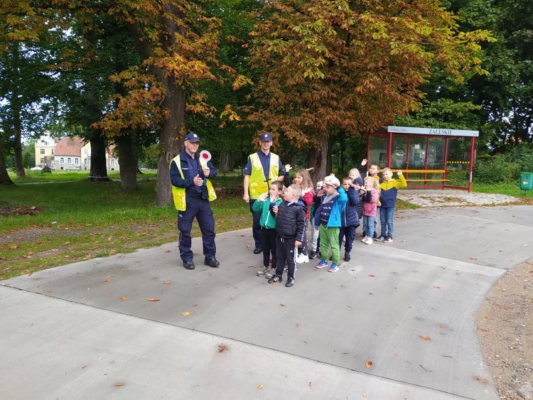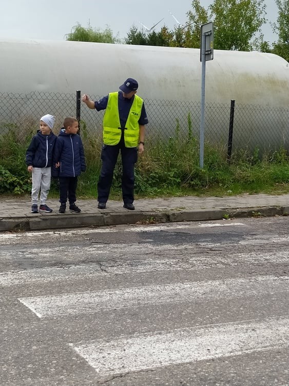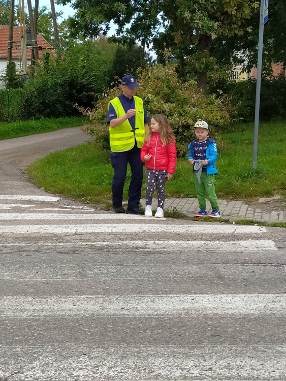 Dnia 14 września 2021 roku w naszej szkole odbyły się zajęcia profilaktyczne poświęcone bezpieczeństwu w ruchu drogowym. Dzięki uprzejmości funkcjonariuszy usteckiego komisariatu policji, pana Sebastiana Chabrosa oraz pana Radosława Pestki nasi najmłodsi podopieczni z oddziału przedszkolnego wyruszyli na spacer, ucząc się bezpiecznych zachowań na drodze. Uczniowie mogli porozmawiać z policjantami o tym, jak prawidłowo poruszać się w ruchu drogowym oraz pod ich opieką bezpiecznie pokonać przejście dla pieszych. Na koniec każdy przedszkolak dostał odblask, który jeszcze bardziej podniesie bezpieczeństwo na drodze.