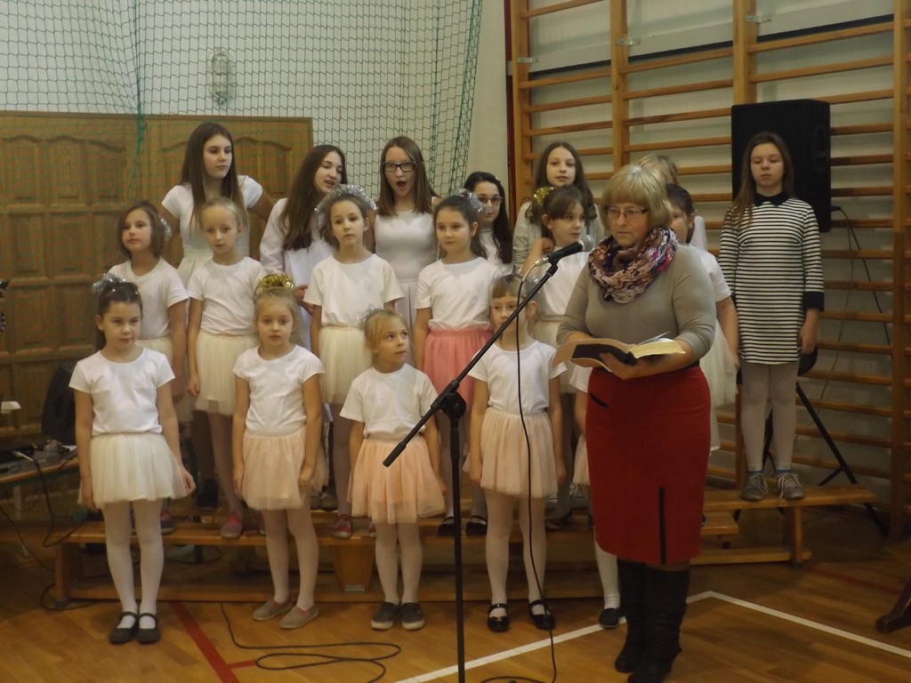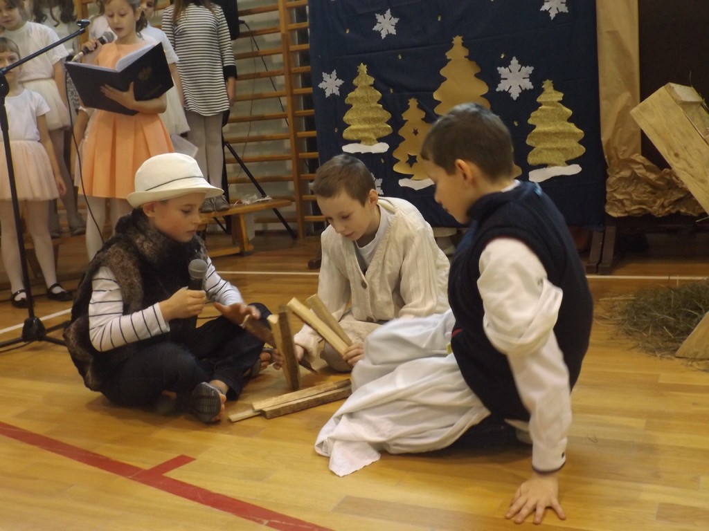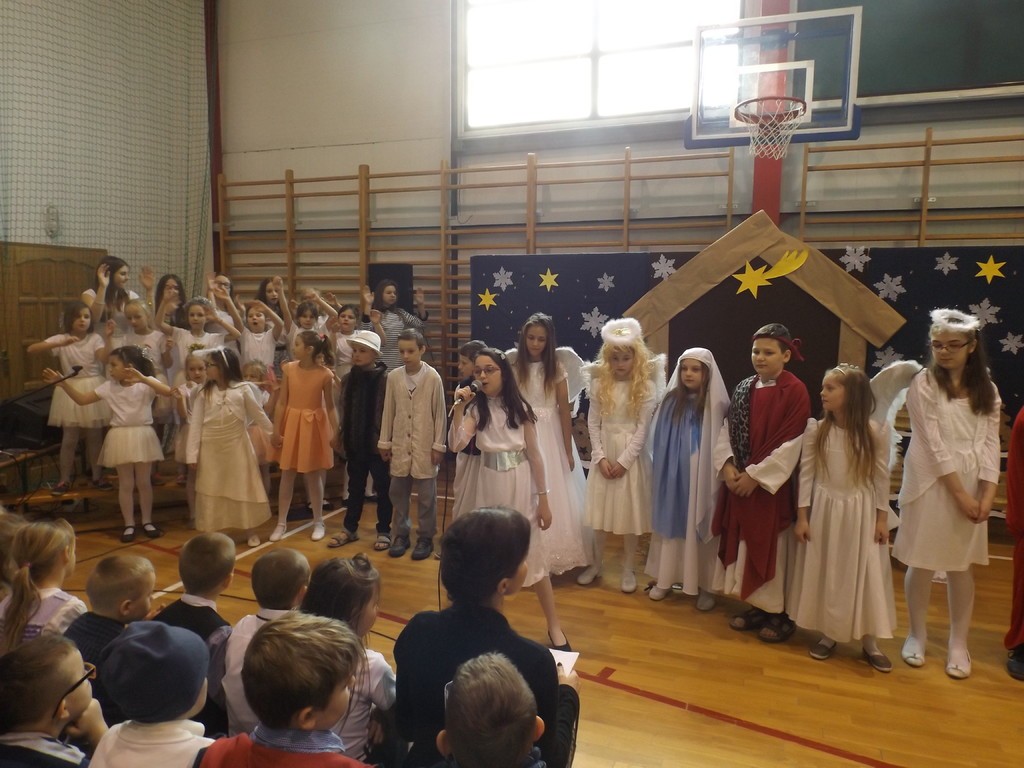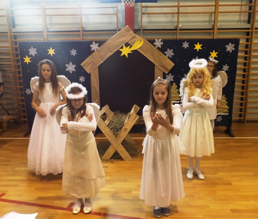 W ostatnim dniu nauki przed przerwą świąteczną - 22 grudnia 2016r. - w naszej szkole odbyły się jasełka bożonarodzeniowe. Spektakl w wykonaniu czwartoklasistów przybliżył widzom zdarzenia sprzed ponad dwóch tysięcy lat - historię Maryi i Józefa oraz narodziny Jezusa. Nie zabrakło aniołów na czele z archaniołem Gabrielem, pastuszków, herolda i trzech króli. Część artystyczna została wzbogacona pięknym śpiewem kolęd i pastorałek w wykonaniu zespołów muzycznych „ Mini Wiolinki” i „Wiolinki”. Jasełka napełniły wszystkich świąteczną radością i sprawiły, że każdy poczuł magię zbliżających się świąt Bożego Narodzenia. Nie dziwi zatem fakt, że praca całego grona artystów została nagrodzona gromkimi brawami.