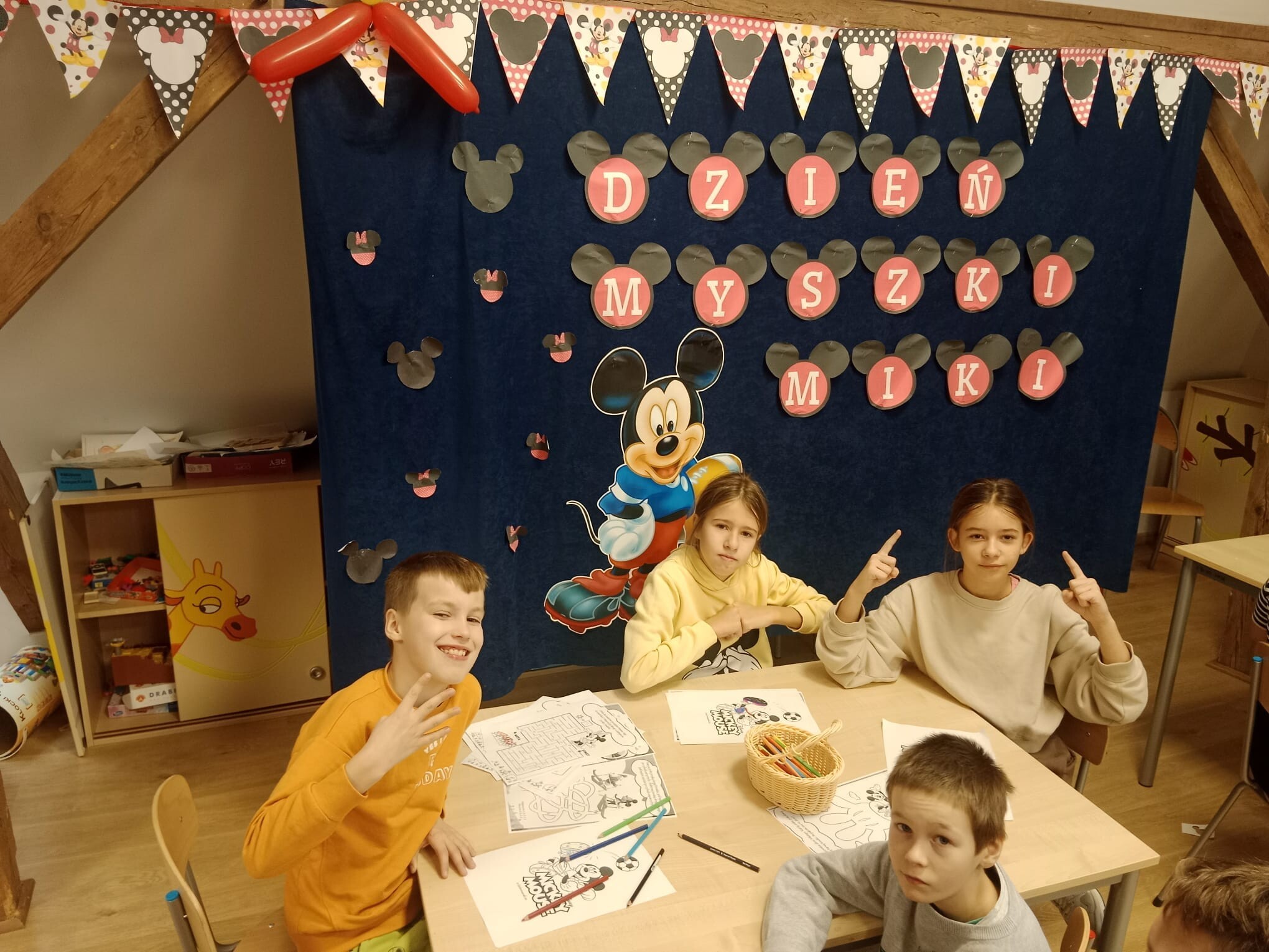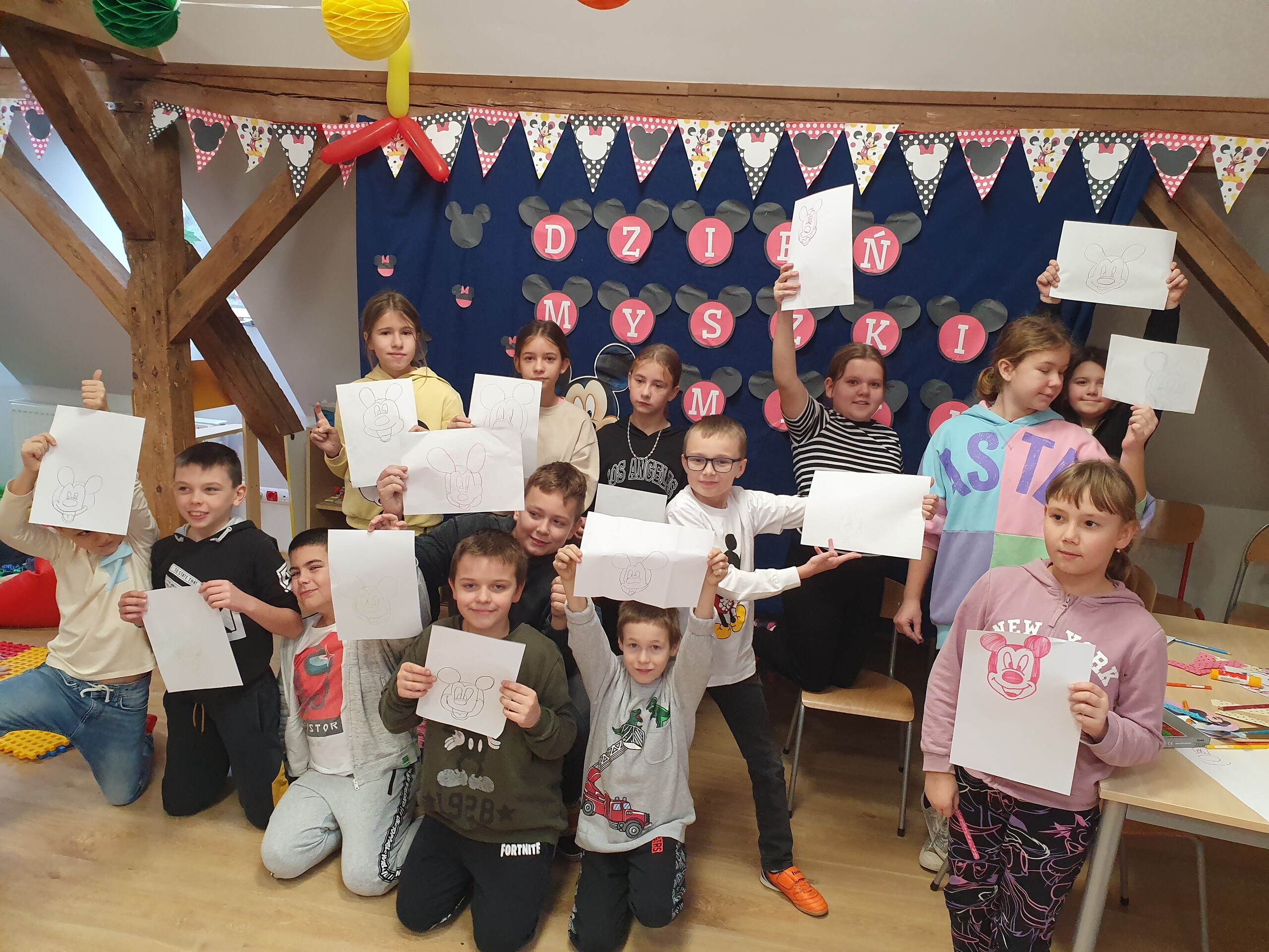 Dnia 18 listopada 1928 r. narodziła się Myszka Mickey, wymyślił ją Walt Disney. Pewnego dnia w domu w Kansas City na biurko Disneya wskoczyła mała mysz. Animator polubił ją i doszedł do wniosku, że mogłaby zostać bohaterem jego kreskówek. Dla rysunkowej myszki wybrał imię Mortimer, jednak za namową żony Lilly, której imię to wydawało się zbyt poważne, postanowił nazwać ją Miki. Myszka Miki w tym roku obchodziła swoje 95 urodziny. Postanowiliśmy uczcić to święto i w dniach 22-24 listopada zostały zorganizowane w świetlicy szkolnej „Dni Myszki Miki”.