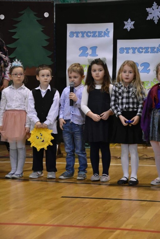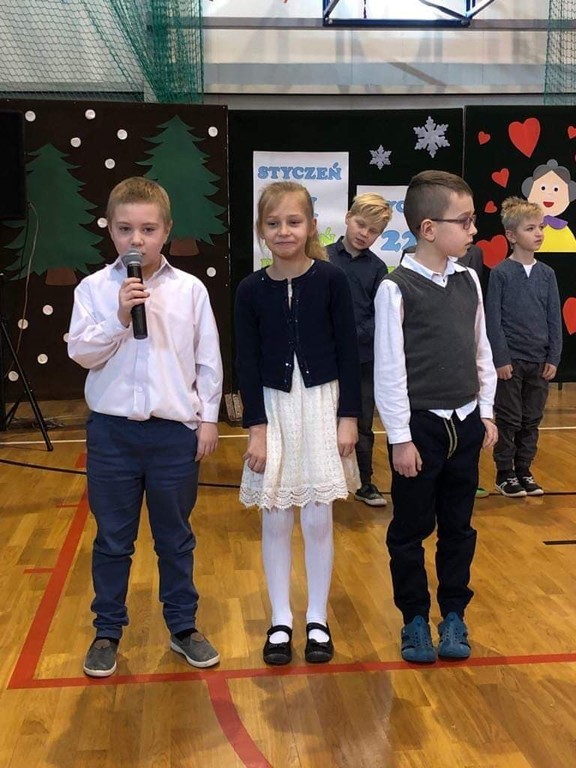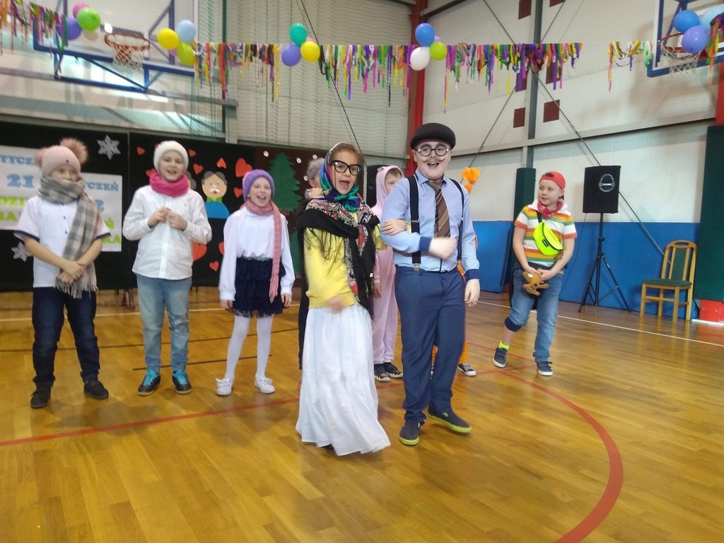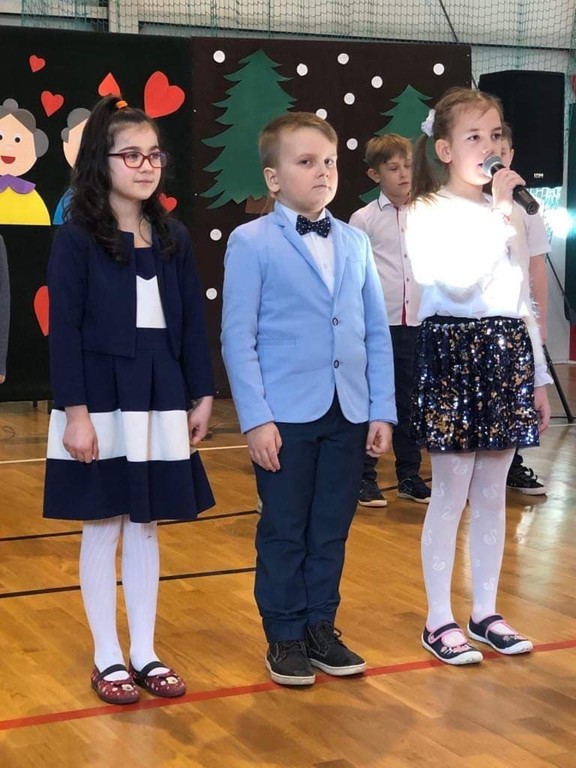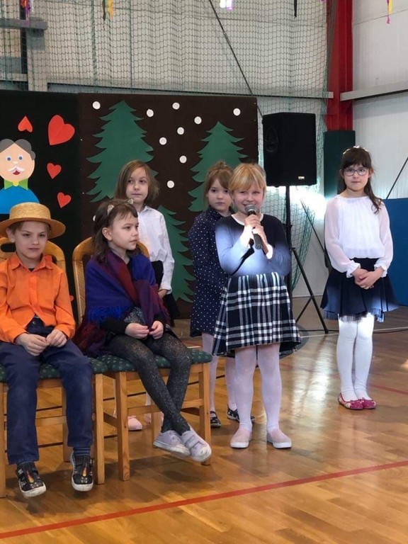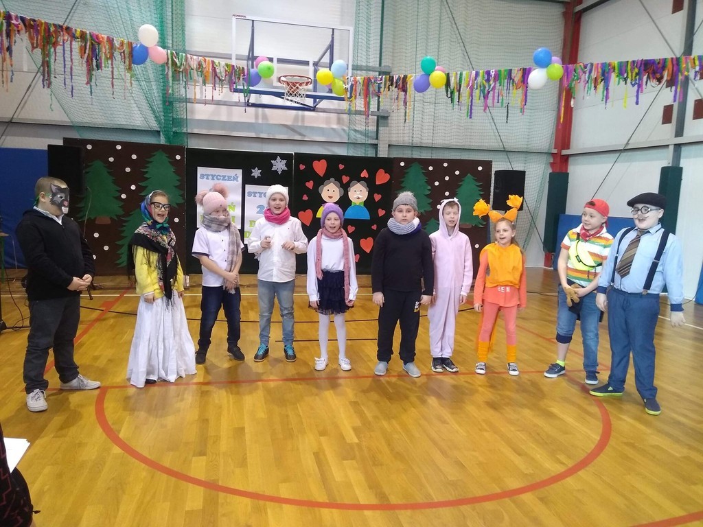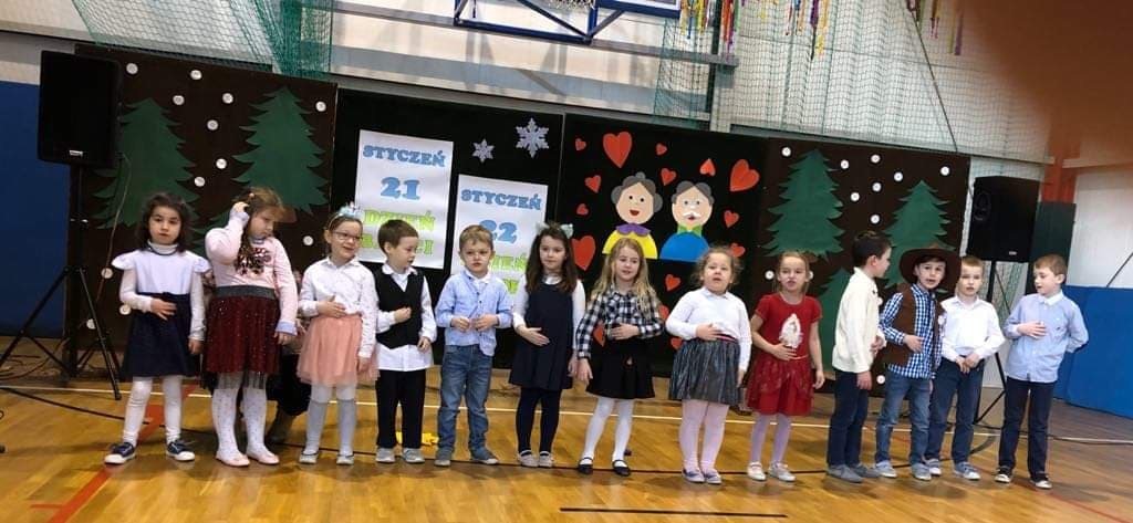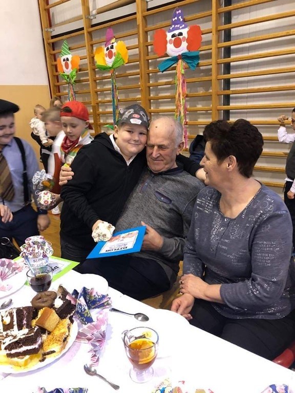 W poniedziałek 03.02.2020r. dzieci klas 0-III, pamiętając o święcie, które w tym roku szkolnym przypadło w okresie ferii zimowych, spotkały się ze swoimi babciami i dziadkami w pięknie udekorowanej sali gimnastycznej. Na początku uroczystości dyrektor szkoły – pan Zbigniew Bednarczyk, przywitał ciepłymi słowami licznie przybyłych gości. Część artystyczną rozpoczęły dzieci z oddziału przedszkolnego, które swoim występem wprowadziły wszystkich w odświętny nastrój. Pięknie zaprezentowali się również uczniowie z klasy I i II. Wspaniałymi aktorami okazały się dzieci z klasy III, które brawurowo zagrały w przedstawieniu o babci i dziadku. Dostojna publiczność podziwiała i gromko oklaskiwała swoje ukochane wnuki. Następnie mali aktorzy wręczyli gościom własnoręcznie wykonane upominki. Słodkim akcentem uroczystości był poczęstunek przygotowany przez niezawodnych rodziców. Podczas tego miłego spotkania nie brakowało okazji do rozmów i wspomnień, niejedna łza zakręciła się w oku...