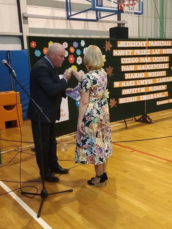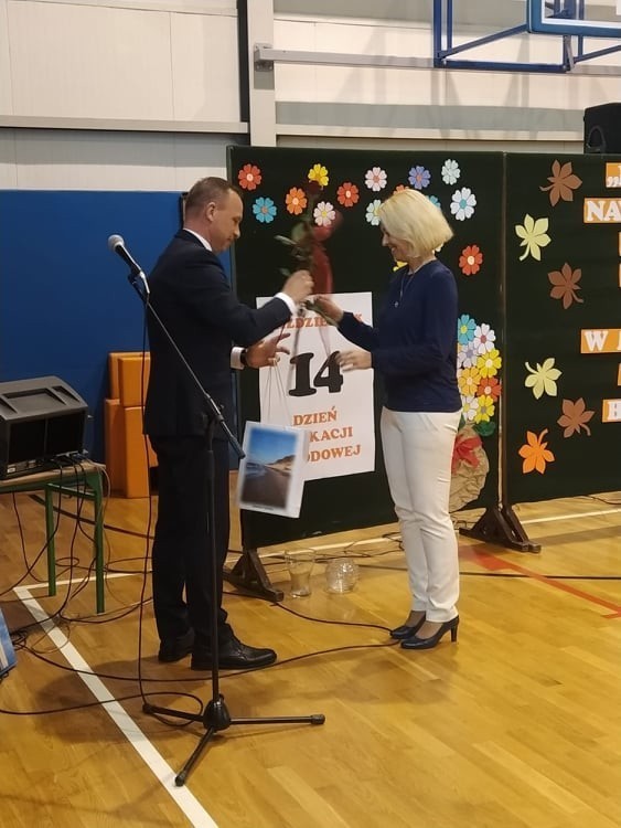 Drugą część uroczystości rozpoczął dyrektor szkoły pan Zbigniew Bednarczyk, składając życzenia wszystkim pracownikom szkoły. Następnie wyróżniającym się w pracy nauczycielom zostały wręczone nagrody. Nagrodę Wójta Gminy Ustka otrzymała pani Renata Czerczak. Nagrody Dyrektora Szkoły otrzymali następujący nauczyciele: Joanna Kaczmarczyk, Barbara Mielczarek, Marta Miotk, Małgorzata Stępień, Mariola Wólczyńska i Marta Wróblewska. Ponadto Nagrody Dyrektora Szkoły otrzymali wszyscy pracownicy obsługi i administracji. Wielkie gratulacje dla wszystkich nagrodzonych osób! I tak minęło nam w miłej atmosferze Święto Edukacji Narodowej.