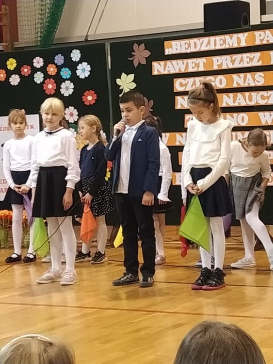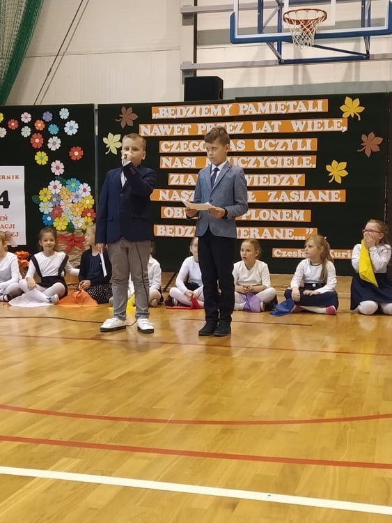 "Będziemy pamiętali nawet przez lat wiele, czego nas uczyli nasi nauczyciele. Ziarno wiedzy w nasz umysł zasiane obfitym plonem będzie zbierane..." Takie motto Czesława Kuriaty towarzyszyło nam podczas tegorocznej uroczystości przygotowanej z okazji Dnia Edukacji Narodowej.