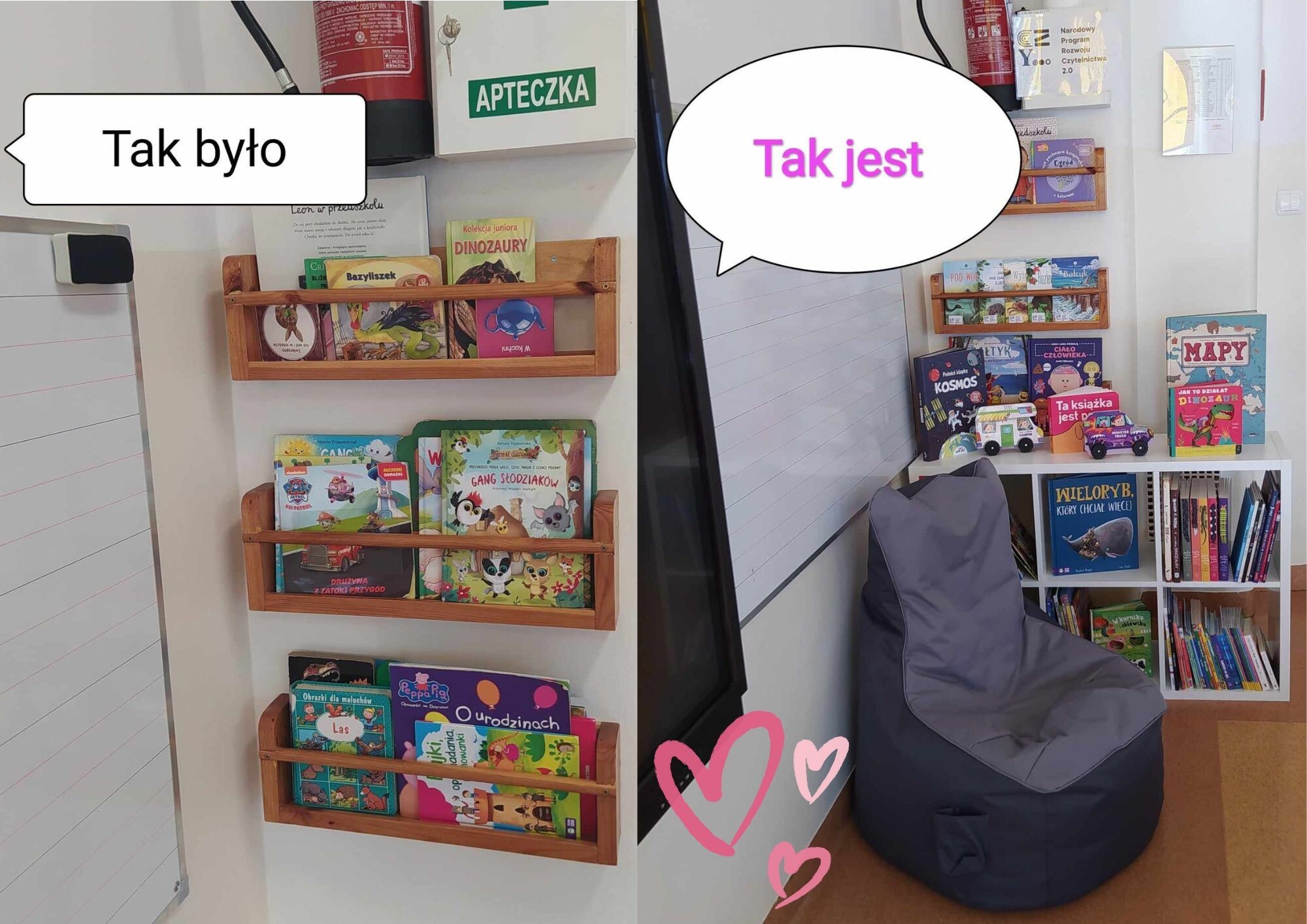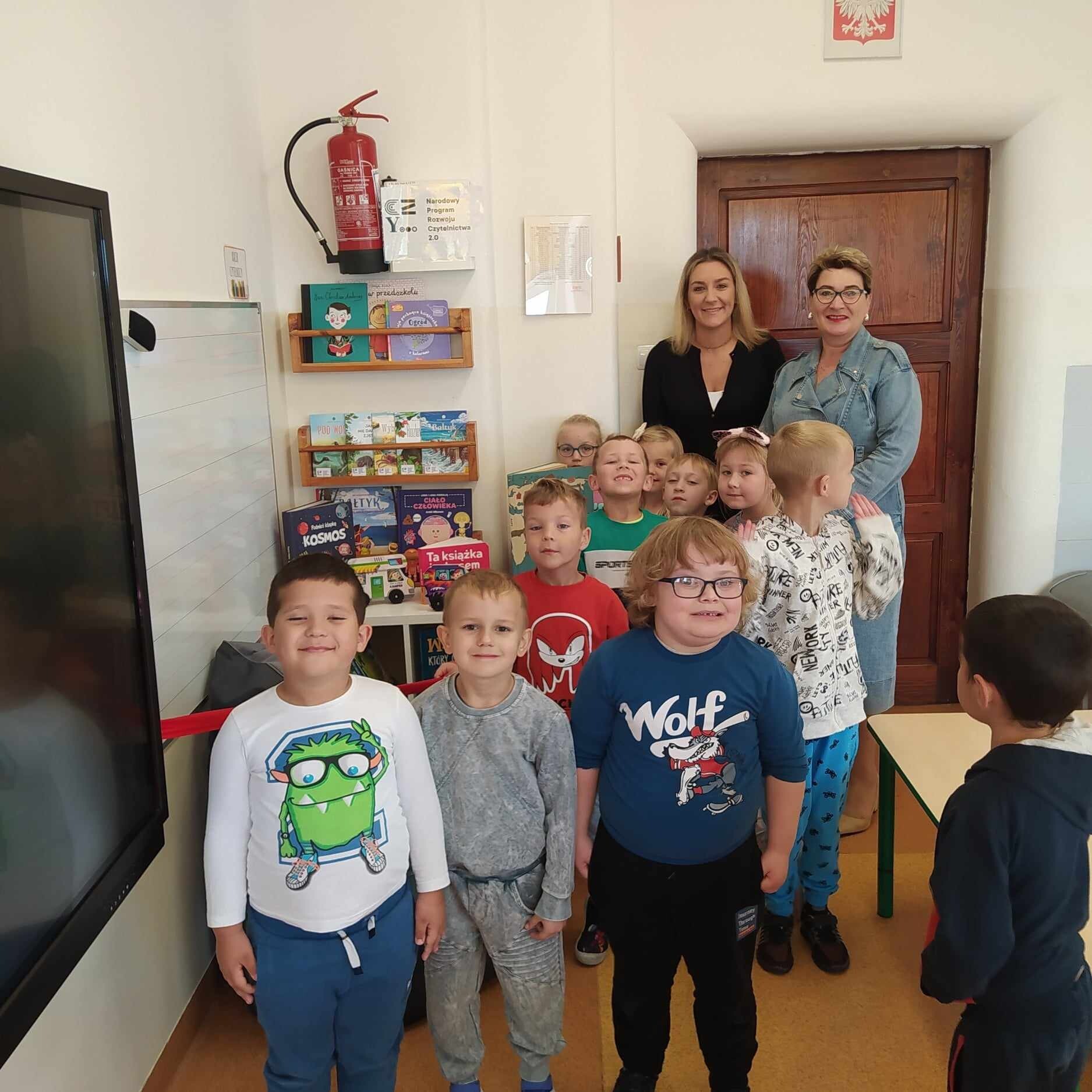 W Dniu Głośnego Czytania dzieci z oddziału przedszkolnego miały wielkie święto. W ramach uzyskanego dofinansowania na realizację Narodowego Programu Rozwoju Czytelnictwa otwarto nowy kącik czytelniczy, do którego zakupiono 90 nowości wydawniczych. Symbolicznego przecięcia wstęgi dokonała pani Joanna Kaczmarczyk – dyrektor szkoły wraz z dziećmi.