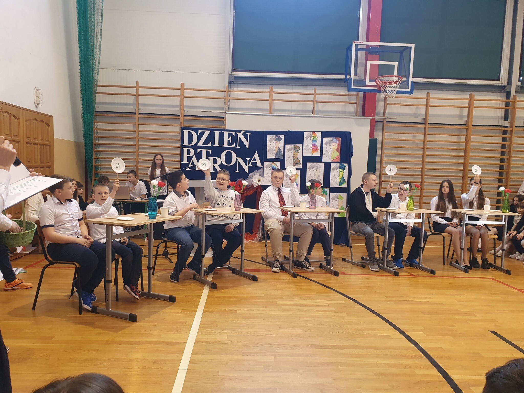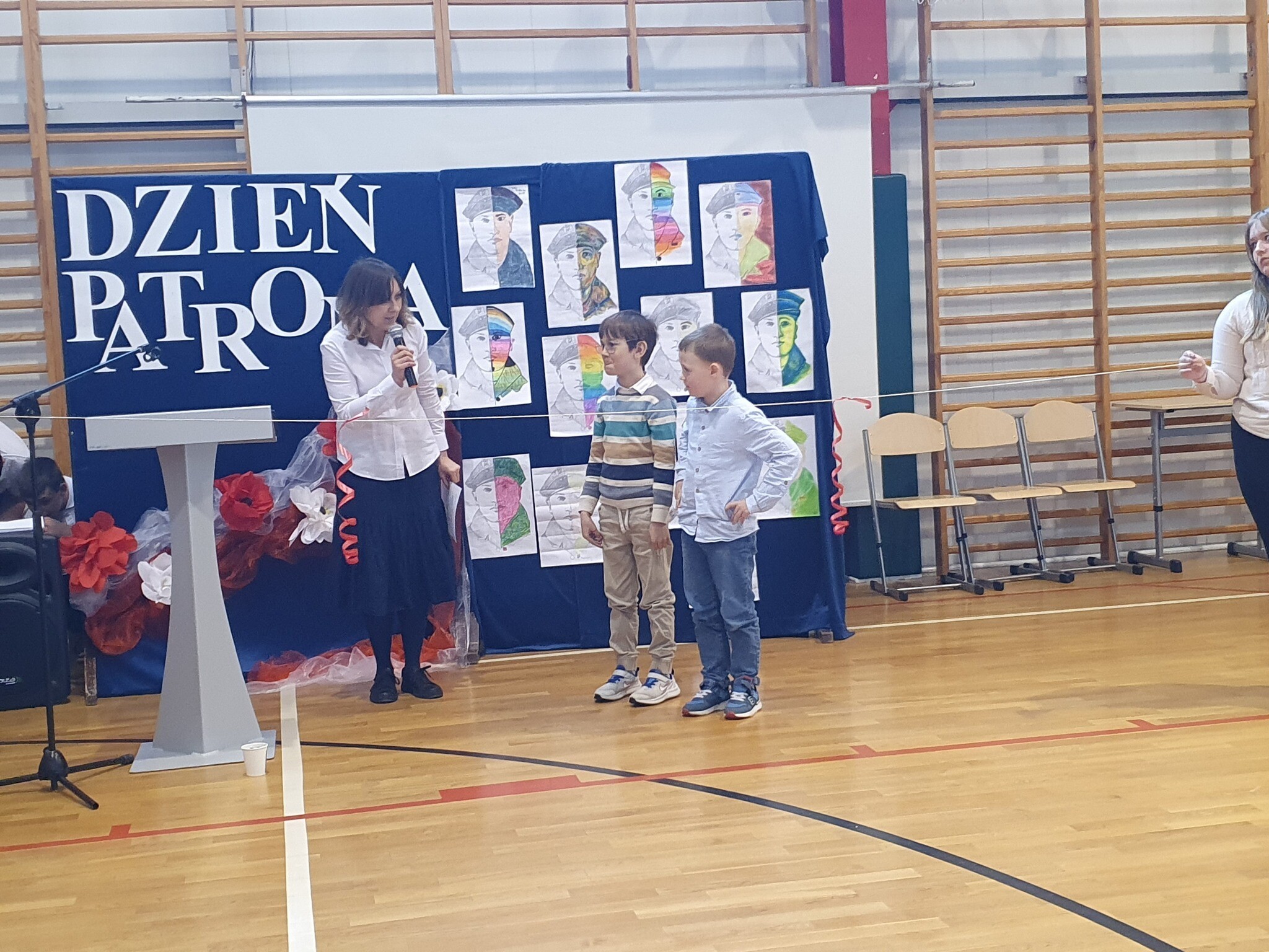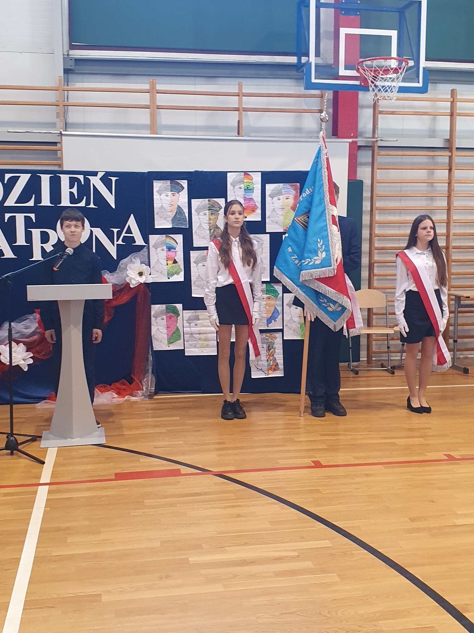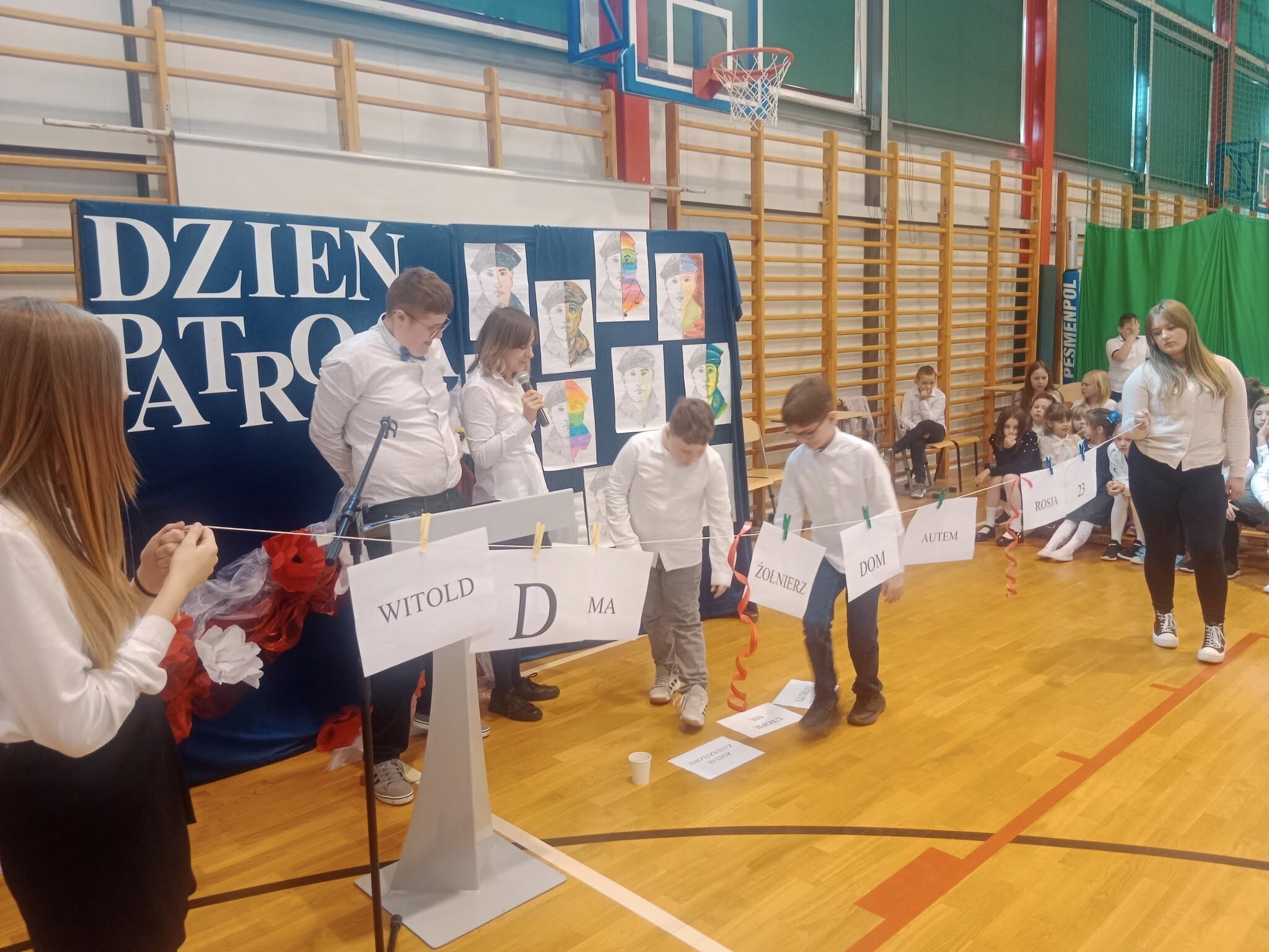 W dniu pierwszego kwietnia obchodziliśmy Dzień Patrona Szkoły, którym od wielu lat jest porucznik Witold Dzięgielewski. Z tej okazji odbyła się uroczystość, podczas której mogliśmy wysłuchać patriotycznych utworów oraz obejrzeć pokaz taneczny. Siódmoklasiści przygotowali scenkę - wywiad dziennikarzy z "ożywionym" patronem, a dwuosobowe reprezentacje klas I -VIII sprawdziły swoją wiedzę na temat naszego bohatera, biorąc udział w quizie. Uczniowie doskonale przygotowali się do turnieju, nie było więc przegranych.