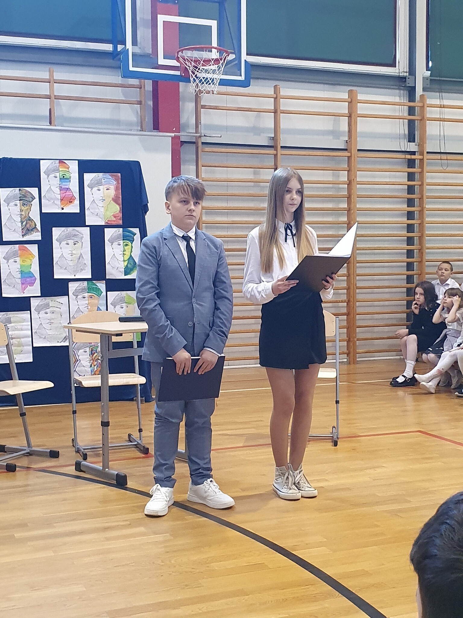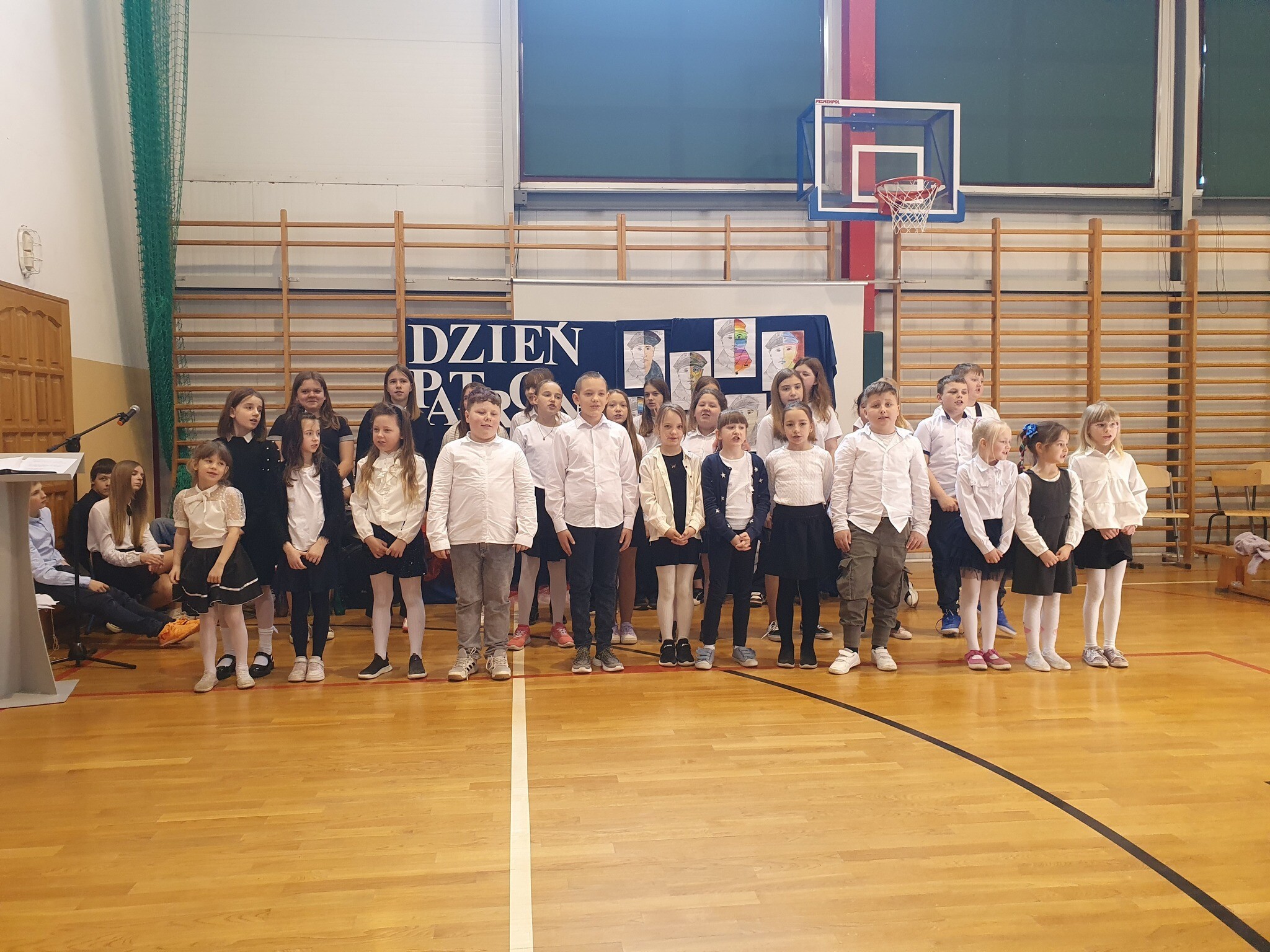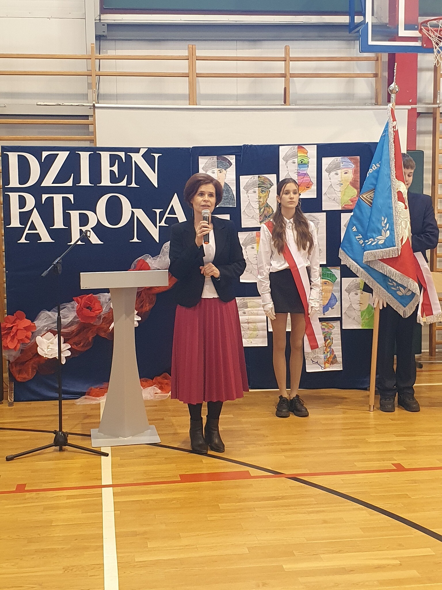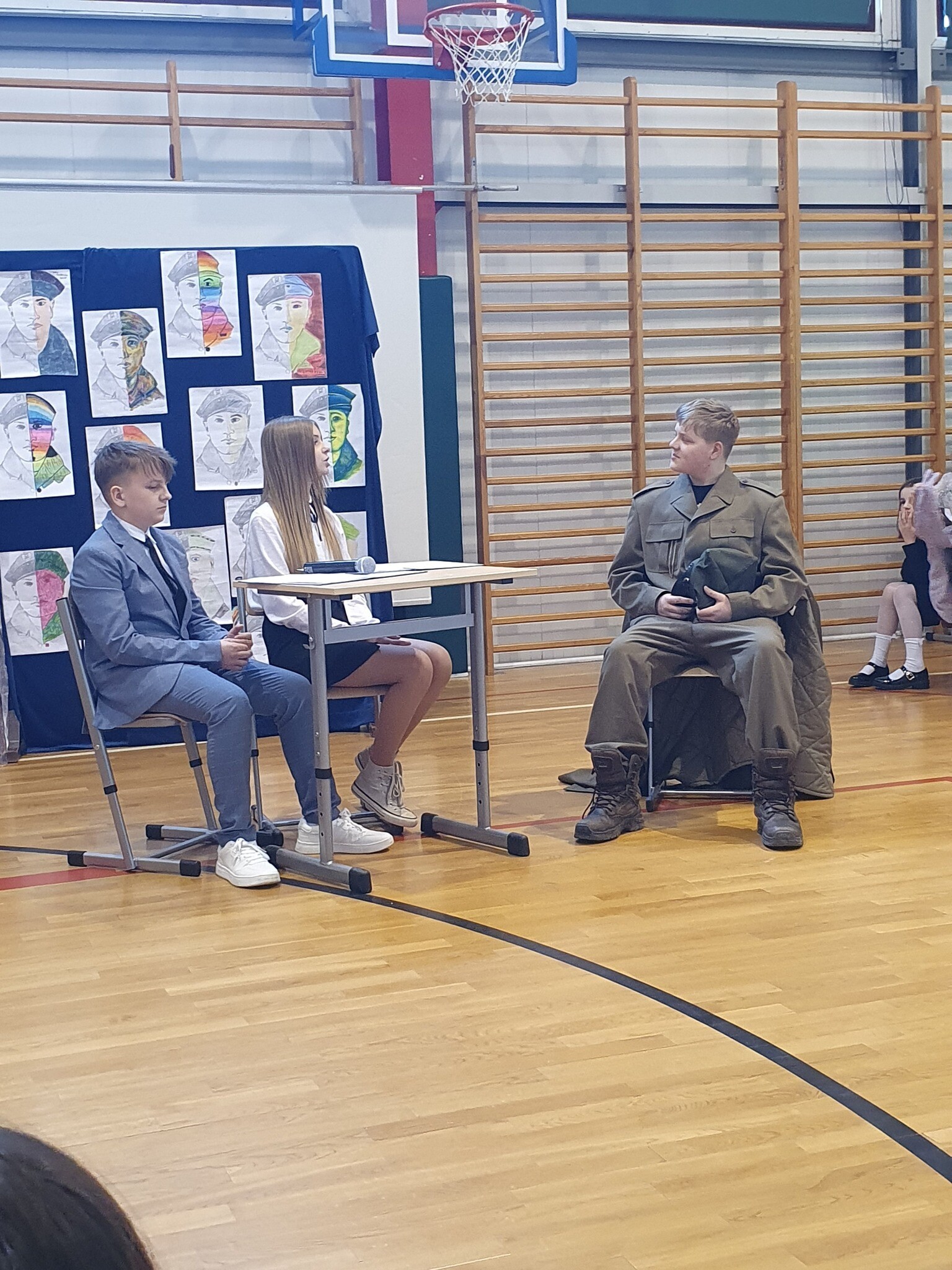 W dniu pierwszego kwietnia obchodziliśmy Dzień Patrona Szkoły, którym od wielu lat jest porucznik Witold Dzięgielewski. Z tej okazji odbyła się uroczystość, podczas której mogliśmy wysłuchać patriotycznych utworów oraz obejrzeć pokaz taneczny. Siódmoklasiści przygotowali scenkę - wywiad dziennikarzy z "ożywionym" patronem, a dwuosobowe reprezentacje klas I -VIII sprawdziły swoją wiedzę na temat naszego bohatera, biorąc udział w quizie. Uczniowie doskonale przygotowali się do turnieju, nie było więc przegranych.