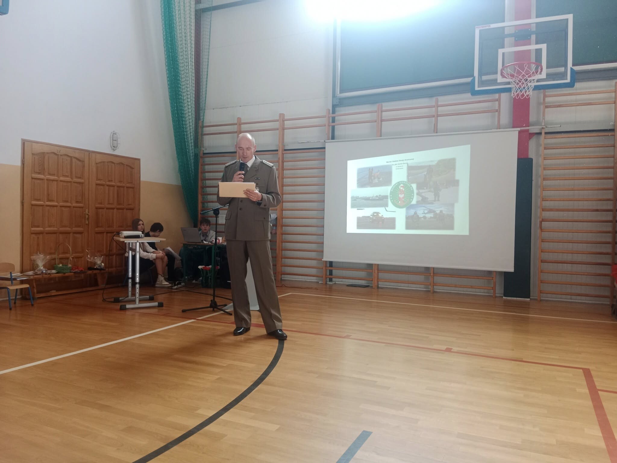 Swoją obecnością zaszczycił nas przedstawiciel Straży Granicznej z placówki w Ustce, starszy chorąży sztabowy - Tomasz Albin. Opowiedział nam, jak chroniono granice w czasach, w których żył nasz patron oraz jakie zadania obecnie realizuje ta formacja.