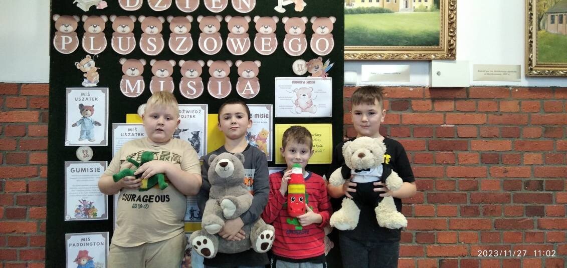 Uczniowie naszej szkoły opowiadali, dlaczego lubią swoje pluszaki i jak się z nimi bawią. Uczestniczyli również w zabawach ruchowych, zgadywankach, rozwiązywali karty pracy o tematyce związanej z misiami. Odbyła się też sesja zdjęciowa ze swoim Misiem. Ten dzień w szkole pełen był uśmiechu oraz wspólnej zabawy.