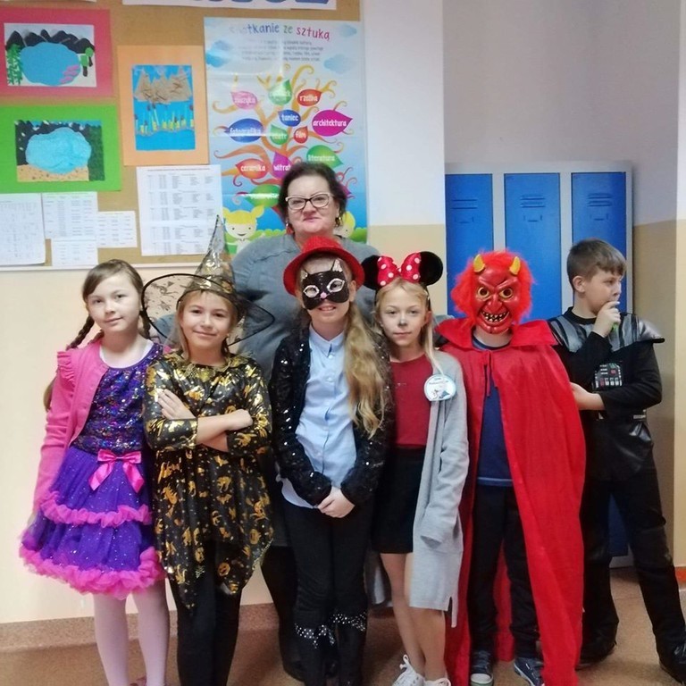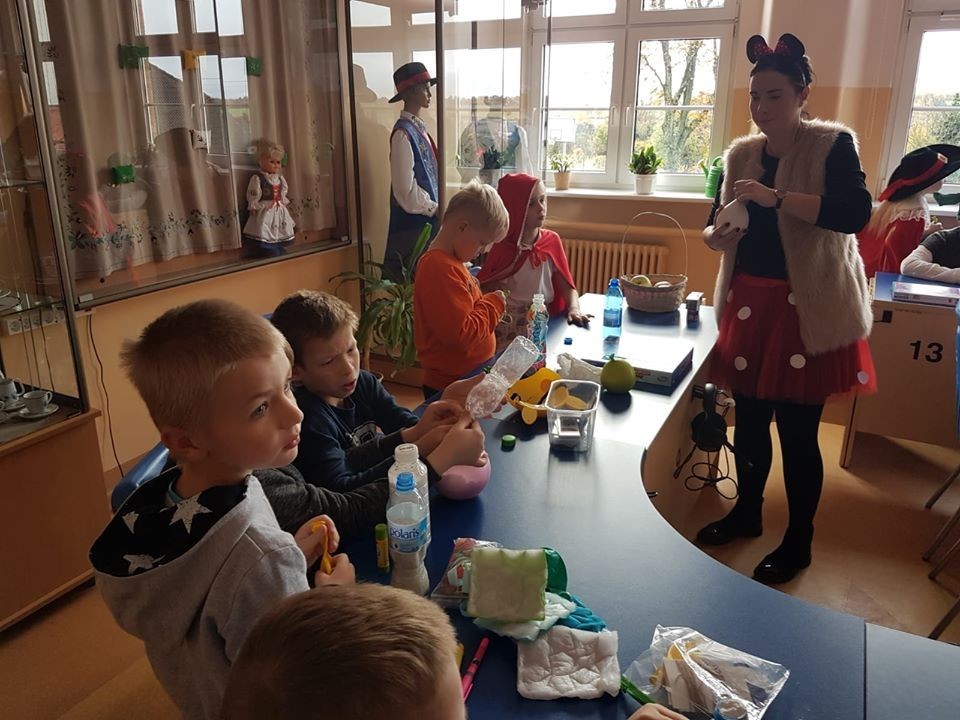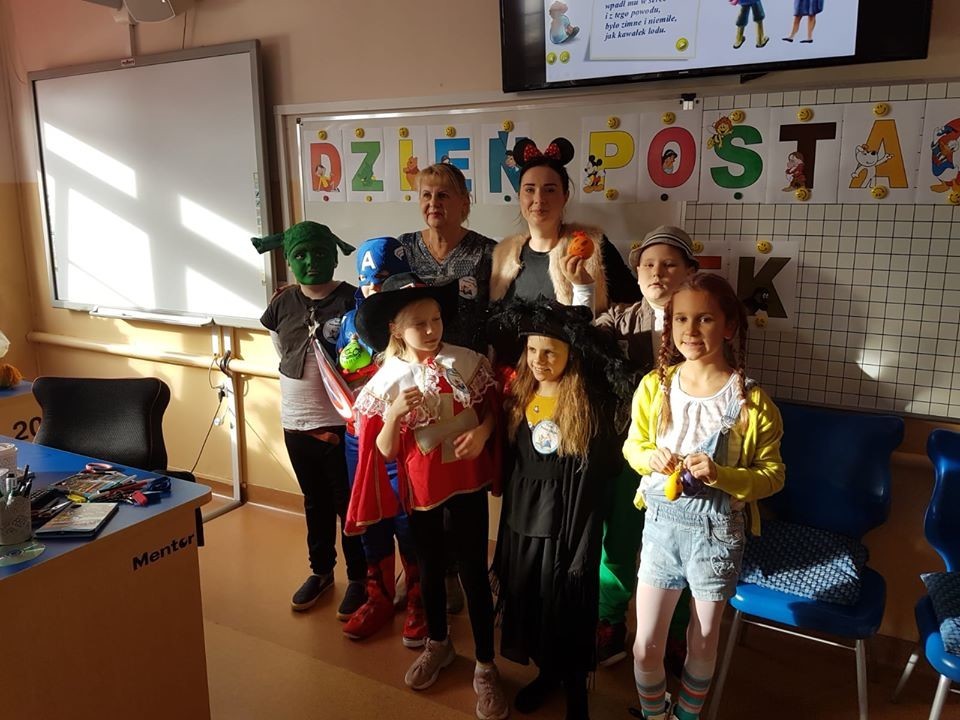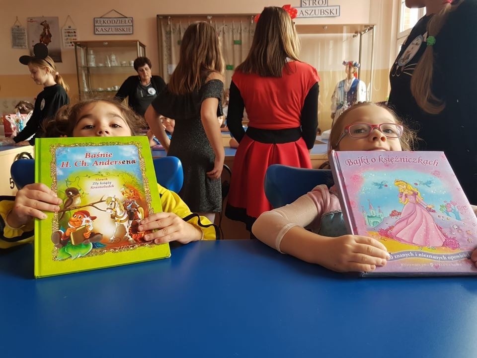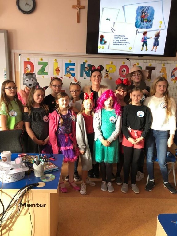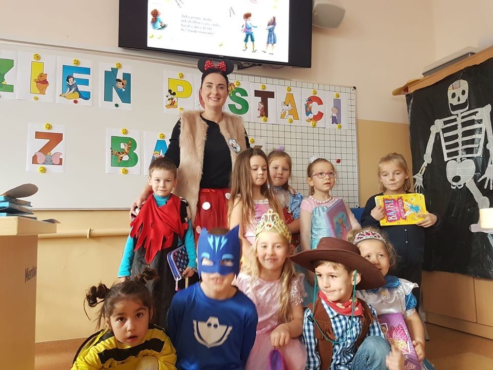 W dniu 6 listopada 2019 roku nasza szkoła zamieniła się w zaczarowaną krainę, a wszystko to z okazji Dnia Postaci z Bajek. Po korytarzach przechadzały się księżniczki, kowboje, pszczółki Maje i wiele innych bajkowych postaci. Ten dzień był pełen atrakcji. Oprócz zagadek na dzieci czekało wiele ciekawych zadań. Nie od dziś wiadomo, że Dzień Postaci z Bajek jest doskonałą okazją do rozwijania zainteresowań czytelniczych wśród uczniów. Wartościowe książki kształcą w nich odpowiednie postawy moralne, rozwijają fantazję, pamięć, wzbogacają słownictwo. Uczniowie naszej szkoły tego dnia przynieśli ze sobą ulubioną książkę. Dzięki konkursowi mogliśmy poznać ulubione postacie z bajek. W oddziale przedszkolnym i w klasie I w wyniku głosowania wygrała Elza i Barbie, w klasie II i III - Myszka Miki, Olaf oraz Reksiu, a w klasie IV zwyciężczynią okazała się Świnka Peppa. Dziękujemy wszystkim dzieciom za zaangażowanie, a rodzicom za przygotowanie bajkowych strojów.