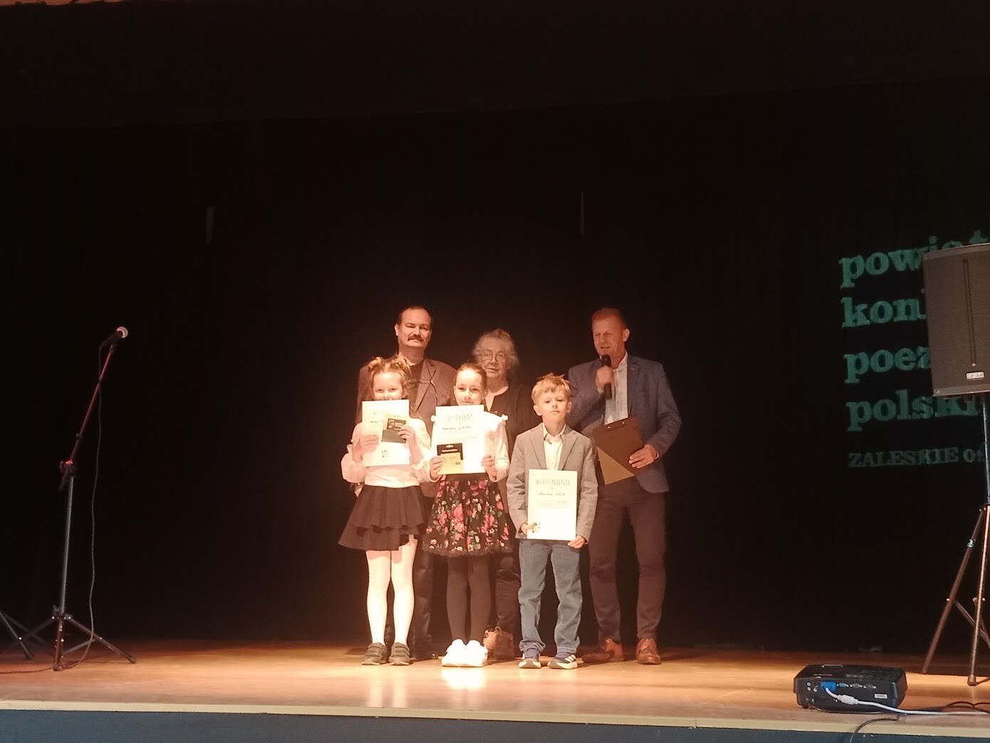 W kategorii wiekowej klas I - III pierwsze miejsce zajęła Martyna Gontek z klasy III, drugie zaś - Hanna Kozłowska z klasy I. W kategorii wiekowej klas IV - VI Zofia Małkowska z klasy V zdobyła drugie miejsce, a Iga Nieradka z klasy IV otrzymała wyróżnienie. W kategorii: recytacja - klasy VII - VIII Karolina Sieradzka z klasy VII zajęła drugie miejsce. Lena Ziemska uczennica klasy VIII w kategorii: poezja śpiewana również zdobyła drugie miejsce.