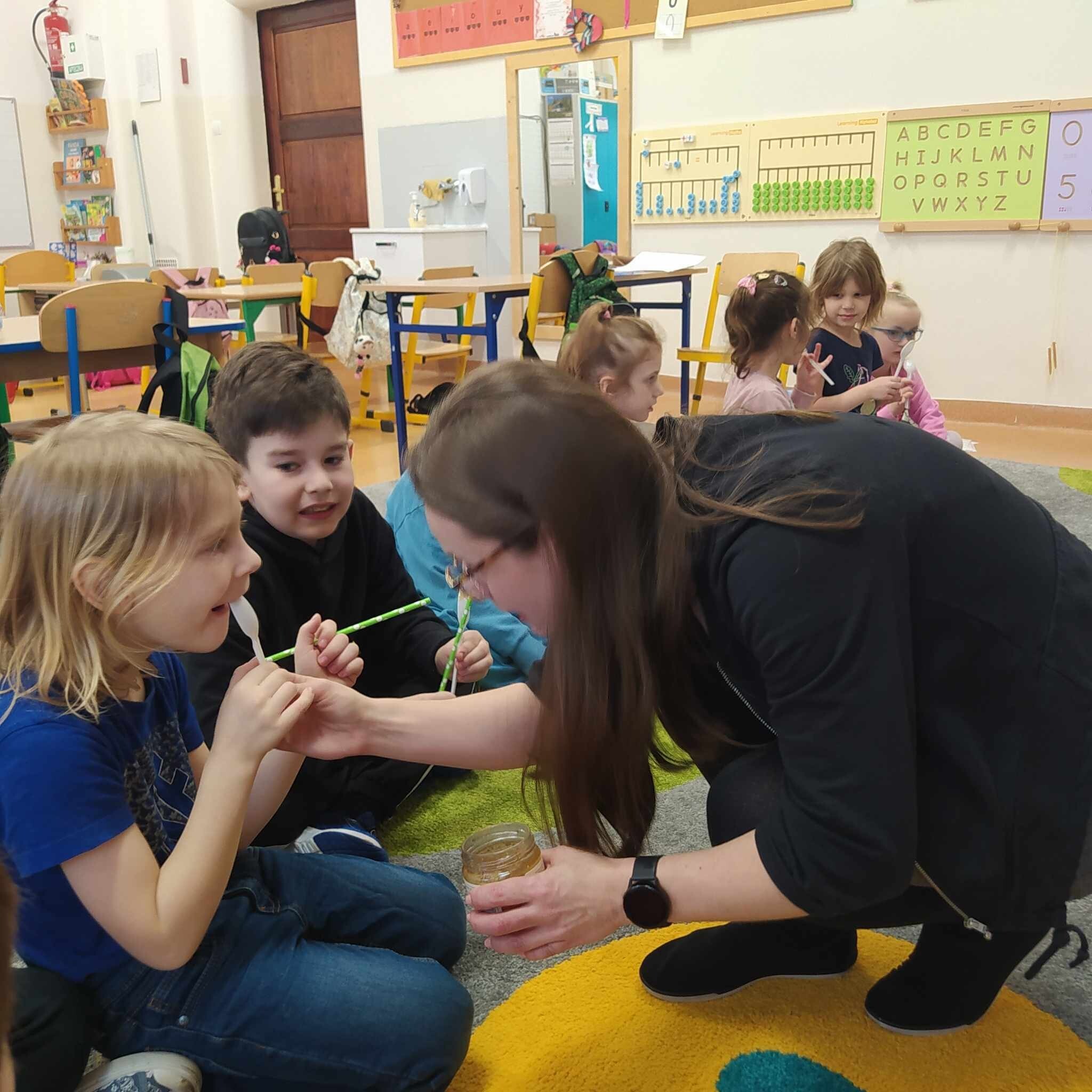 Przedszkolaki bardzo chętnie uczestniczyły w przygotowanych zajęciach, a proponowane ćwiczenia warg, języka i żuchwy oraz podniebienia usprawniły narządy mowy. Podczas zajęć logopedycznych prowadzone były zabawy z wykorzystaniem różnych produktów spożywczych takich jak miód i kolorowe opłatki, usprawniające narządy mowy oraz stymulujące zmysł smaku, niewymagające specjalistycznych pomocy. Zabawy te wspierają gimnastykę buzi i języka oraz uwrażliwiają receptory smakowe u dzieci. To była smaczna zabawa!