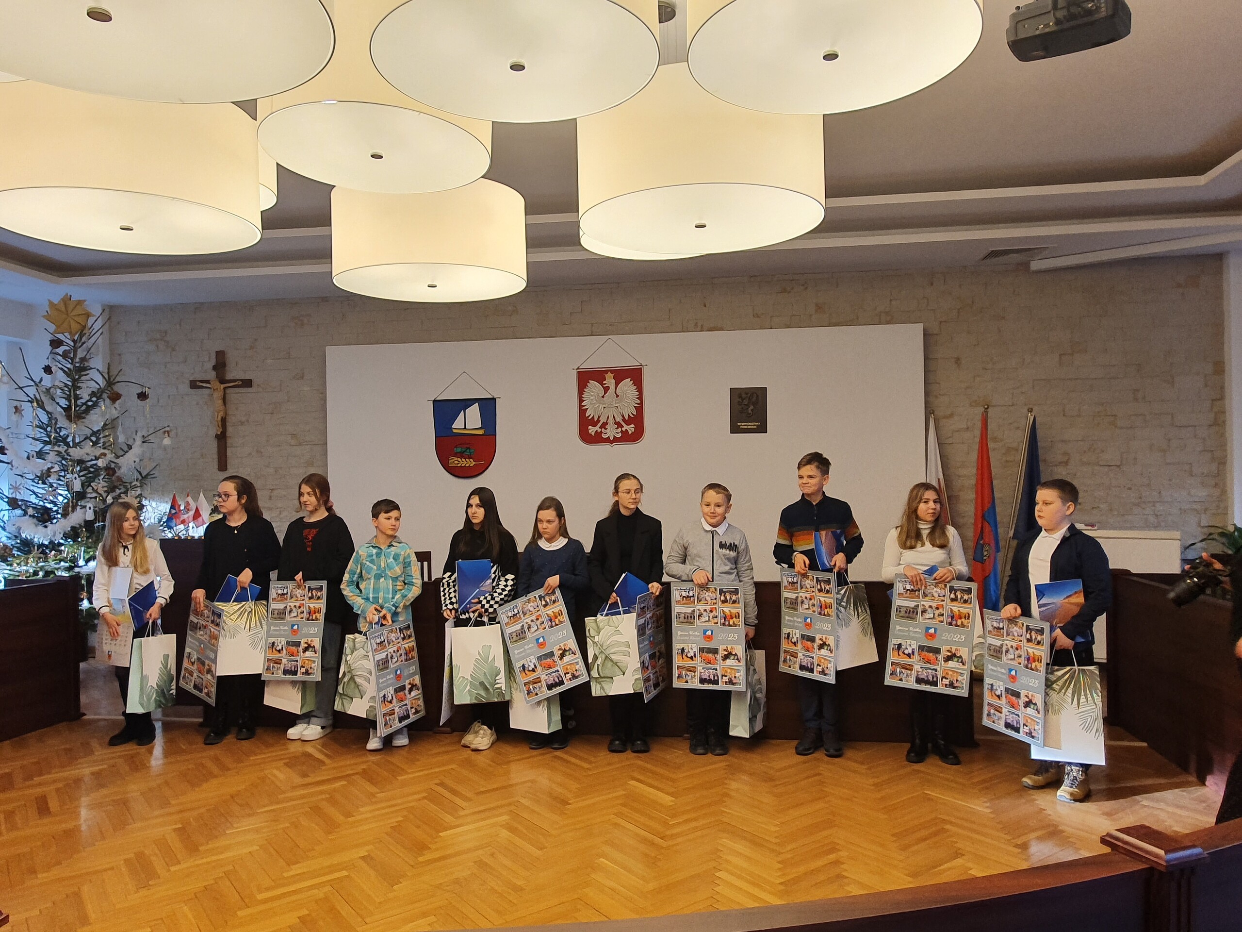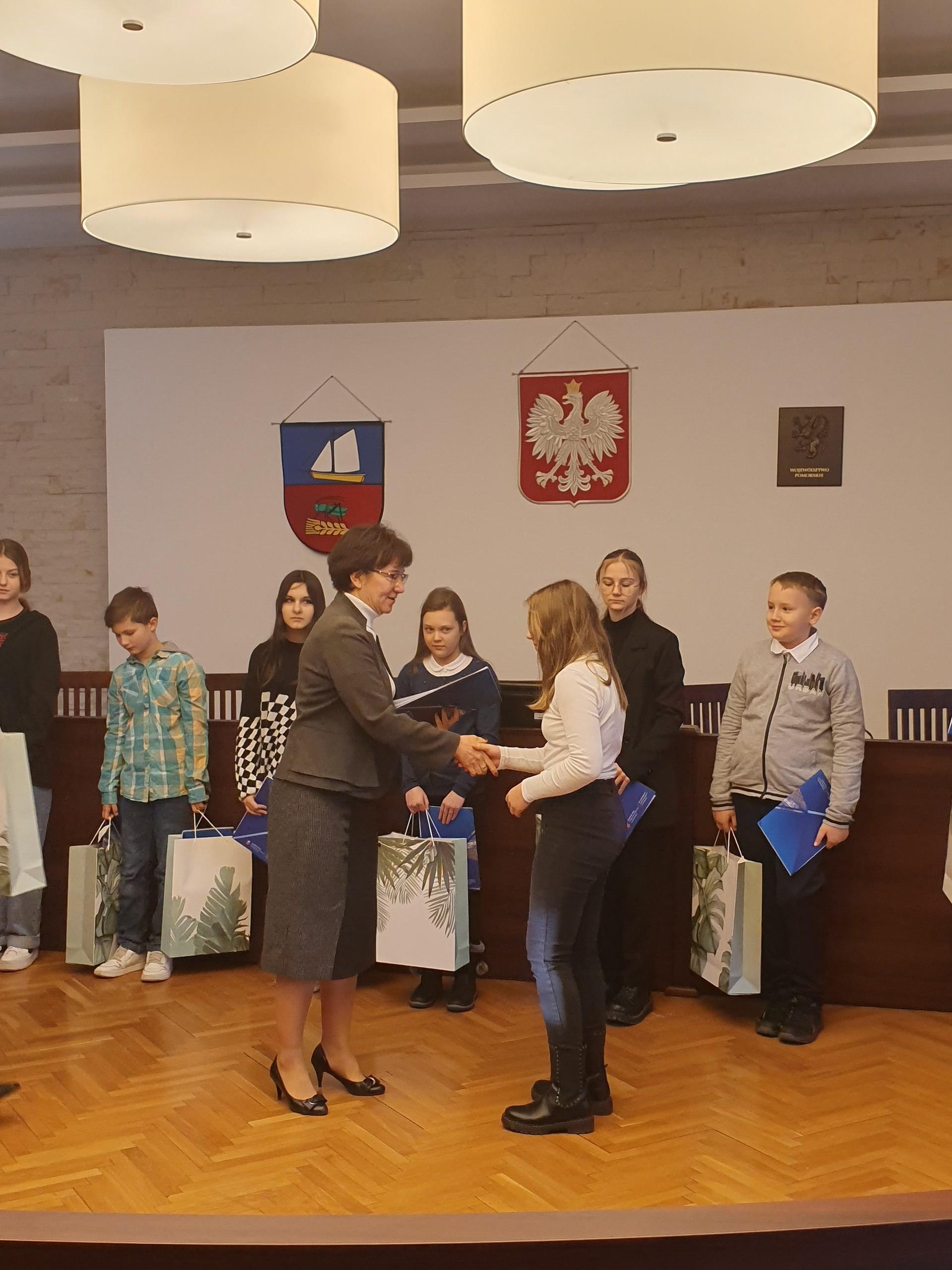 W środę, 11 stycznia 2023 r. wójt Gminy Ustka p. Anna Sobczuk -Jodłowska zaprosiła uczniów na podsumowanie Gminnego Konkursu Plastycznego "Gmina Ustka na cztery pory roku". W sali obrad Urzędu Gminy Ustka wręczono dyplomy oraz drobne upominki. Tematem pracy plastycznej mógł być zakątek przyrody lub obiekt znajdujący się na terenie Gminy Ustka ukazany w określonej porze roku. W drodze losowania naszej szkole przypadła zima. Uznanie w oczach jury zyskały prace następujących uczniów: