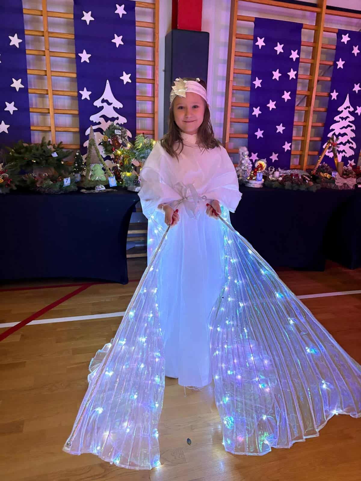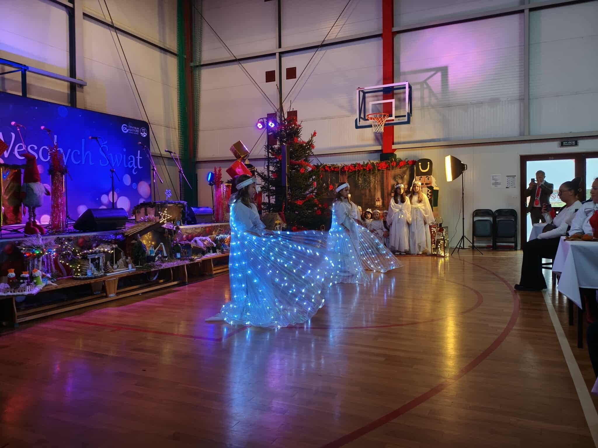 Uczennice Szkoły Podstawowej w Zaleskich, z zespołu wokalnego,,Wiolinki", zaśpiewały i zagrały na instrumentach perkusyjnych kolędę ,,Przybieżeli do Betlejem pasterze". Dużym zainteresowaniem cieszył się także taniec w świetlistych pelerynach do kolędy ,,Lulajże Jezuniu". Dziewczęta do występu przygotwała pani Agata Frankiewicz.