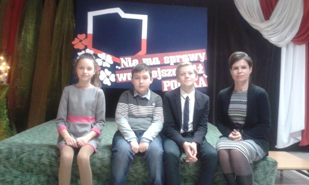 Dnia 26 listopada 2016 r. w Szkole Podstawowej w Objeździe odbył się Gminny Konkurs Poezji i Pieśni Patriotycznej, w którym wzięli udział uczniowie z naszej szkoły. Radomir Sokołowski w kategorii klas IV – VI nie miał sobie równych i zdobył I miejsce, zaś Agnieszka Kujawa otrzymała wyróżnienie. Trzeci z naszych recytatorów, Kacper Bokacz tym razem nie został doceniony przez jury. Wokalistki w składzie: Karina Grabowska, Aleksandra Schutta i Roksana Garbolińska mimo iż zaprezentowały się pięknie, również nie zostały nagrodzone. Gratulujemy Radkowi i Agnieszce, zaś pozostałym uczestnikom życzymy sukcesów w innych konkursach.