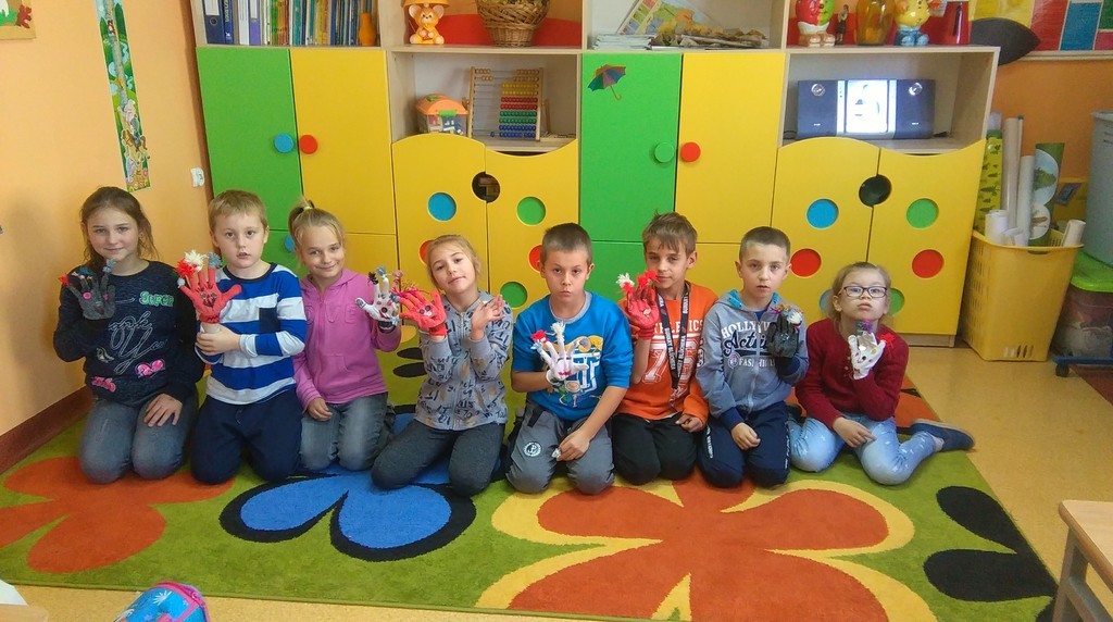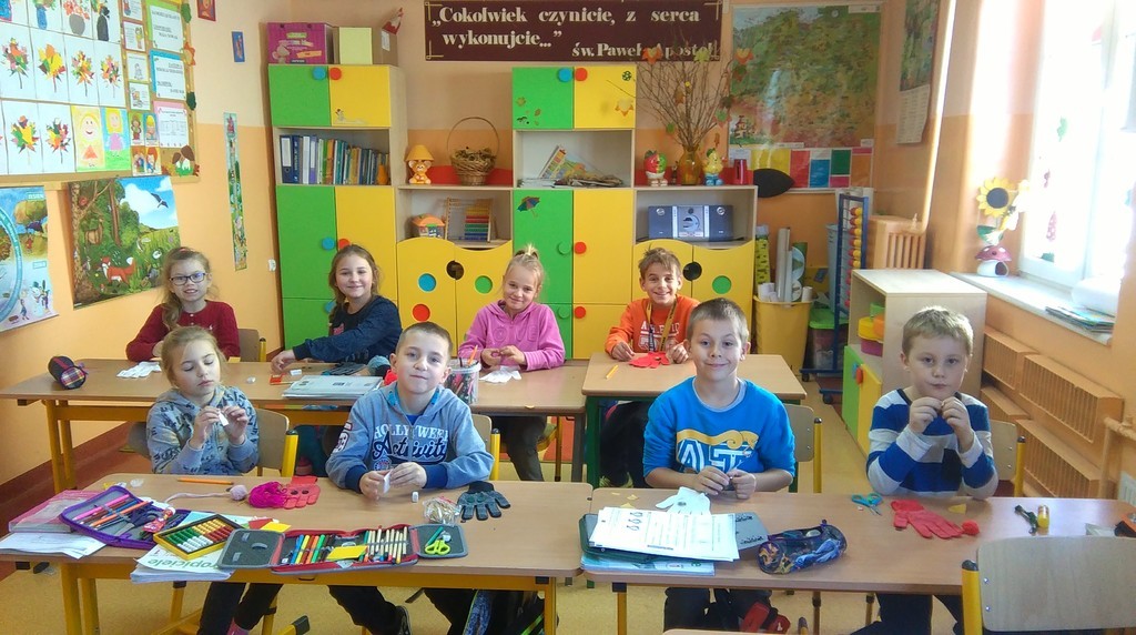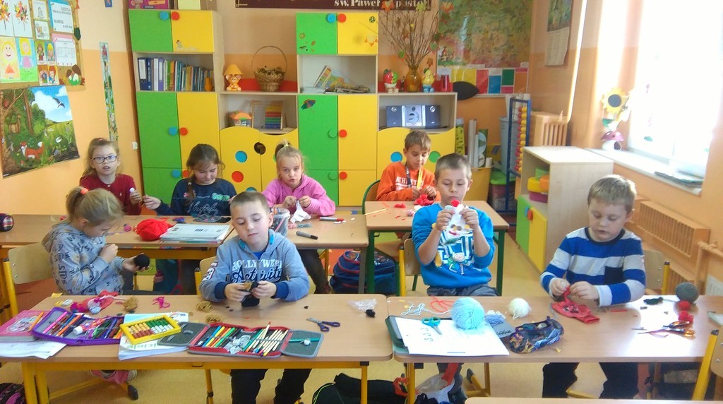 Czasem strach ma wielkie oczy, ale można go przełamać i zamienić w dobrą zabawę. Taką właśnie metodą postanowili oswoić lęk przed duchami drugoklasiści, nadając im przyjazny wizerunek. Zdecydowali, że w ich domach zamieszka własnoręcznie wykonany Dobry Duszek. Do przygotowania tej pracy technicznej uczniowie klasy II wykorzystali kolorowe rękawiczki, guziki, mulinę, wełnę i mazaki. Każdy duszek powstał w czasie półgodzinnej, ciężkiej i żmudnej pracy. Tak wykonana zabawka umili każdemu długie, zimowe wieczory, kiedy na dworze ciemno, a wyobraźnia intensywnie pracuje. Może znajdą się w szkole chętni do samodzielnego wykonania pacynki?