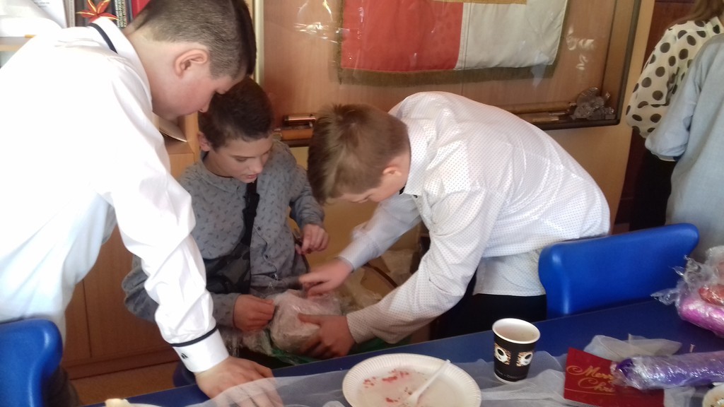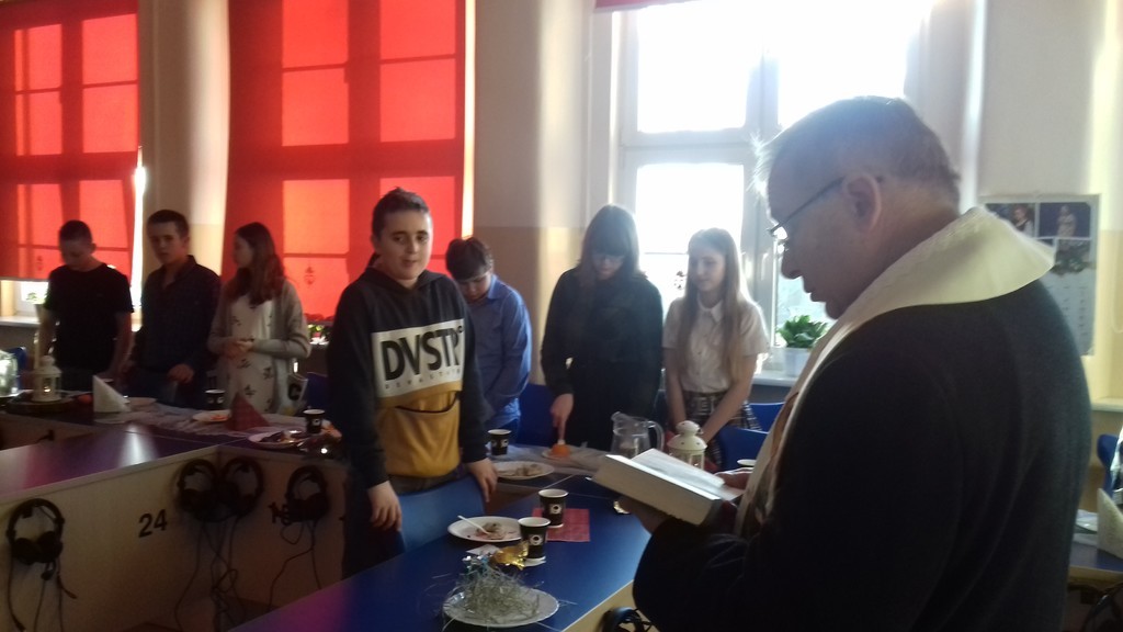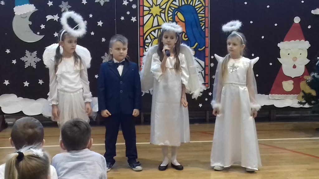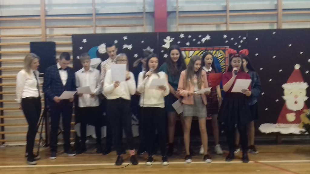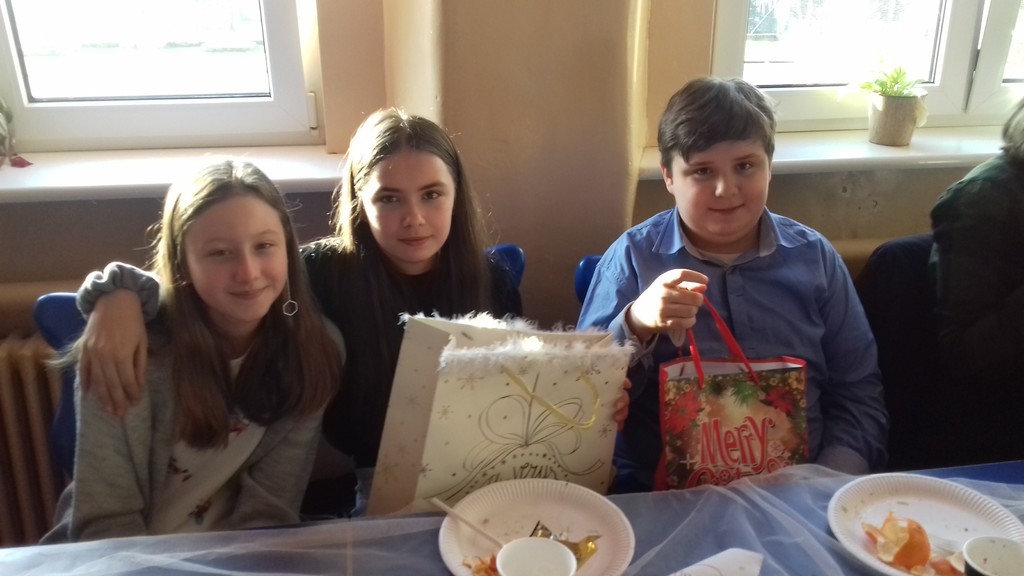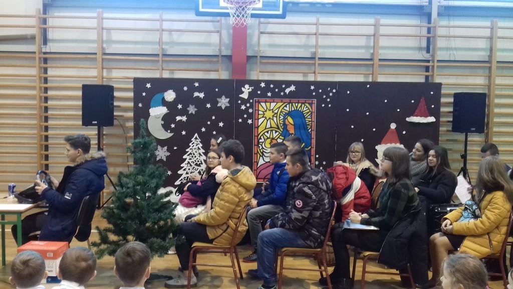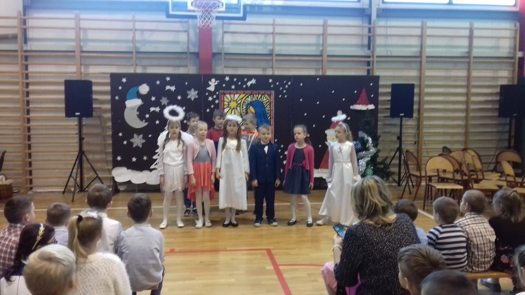Święta Bożego Narodzenia to czas niezwykły -  czas dobroci, refleksji nad tym, co ważne i istotne. Budzi w nas poczucie wspólnoty i wytwarza szczególną więź, dlatego trudno nam sobie wyobrazić sytuację ludzi samotnych, którzy nie mają z kim podzielić się opłatkiem. Są też osoby, które w ostatniej chwili, w pośpiechu wracają z pracy do domów, by zdążyć na Wigilię. I tu może się wydarzyć coś nieoczekiwanego… O tym opowiadało przedstawienie świąteczne przygotowane pod kierunkiem pani Barbary Mielczarek przez najstarszych uczniów naszej szkoły, które mieliśmy okazję obejrzeć tuż przed przerwą świąteczną, 20 grudnia br. Spektakl uświadomił nam, że nawet obcy sobie i mało życzliwi ludzie mogą otworzyć serca na drugich. My także otwieraliśmy swoje serca… Podczas Wigilii klasowych dzieliliśmy się opłatkiem, wymienialiśmy prezentami i wspólnie śpiewaliśmy kolędy. Każdej klasie życzenia bożonarodzeniowe złożyli pan dyrektor, Zbigniew Bednarczyk i ksiądz proboszcz, Jerzy Wyrzykowski. Tego dnia atmosfera w szkole była prawdziwie świąteczna!