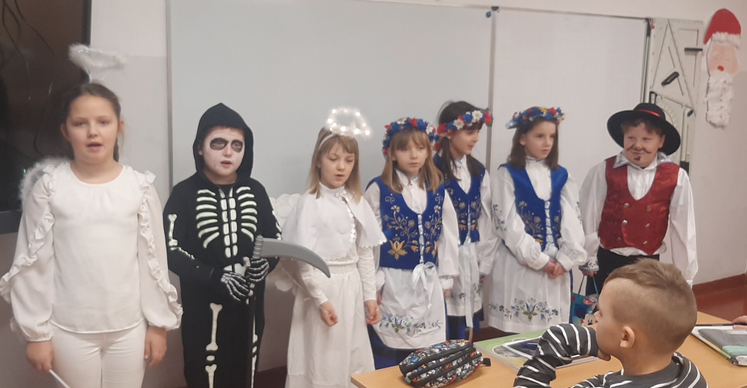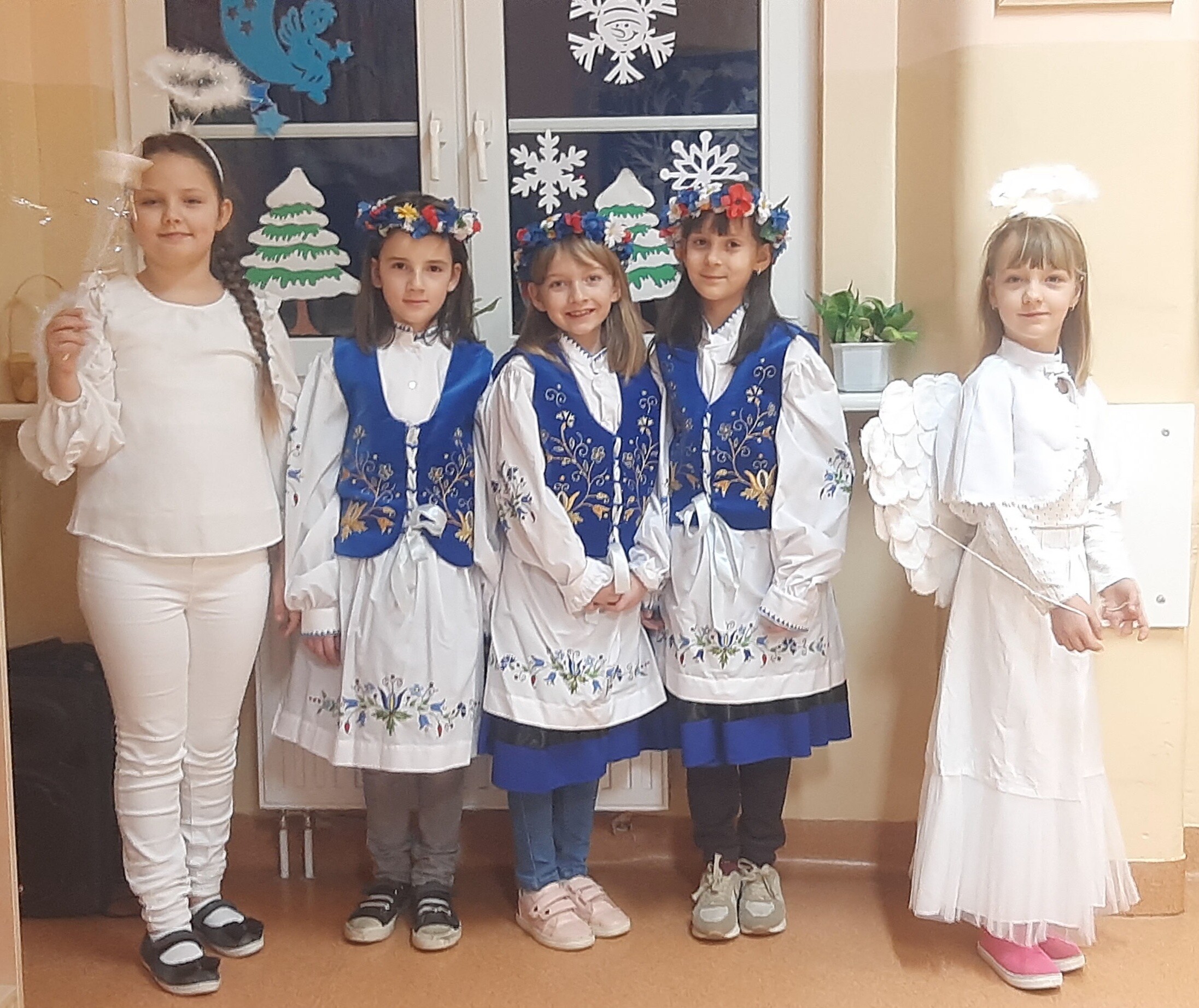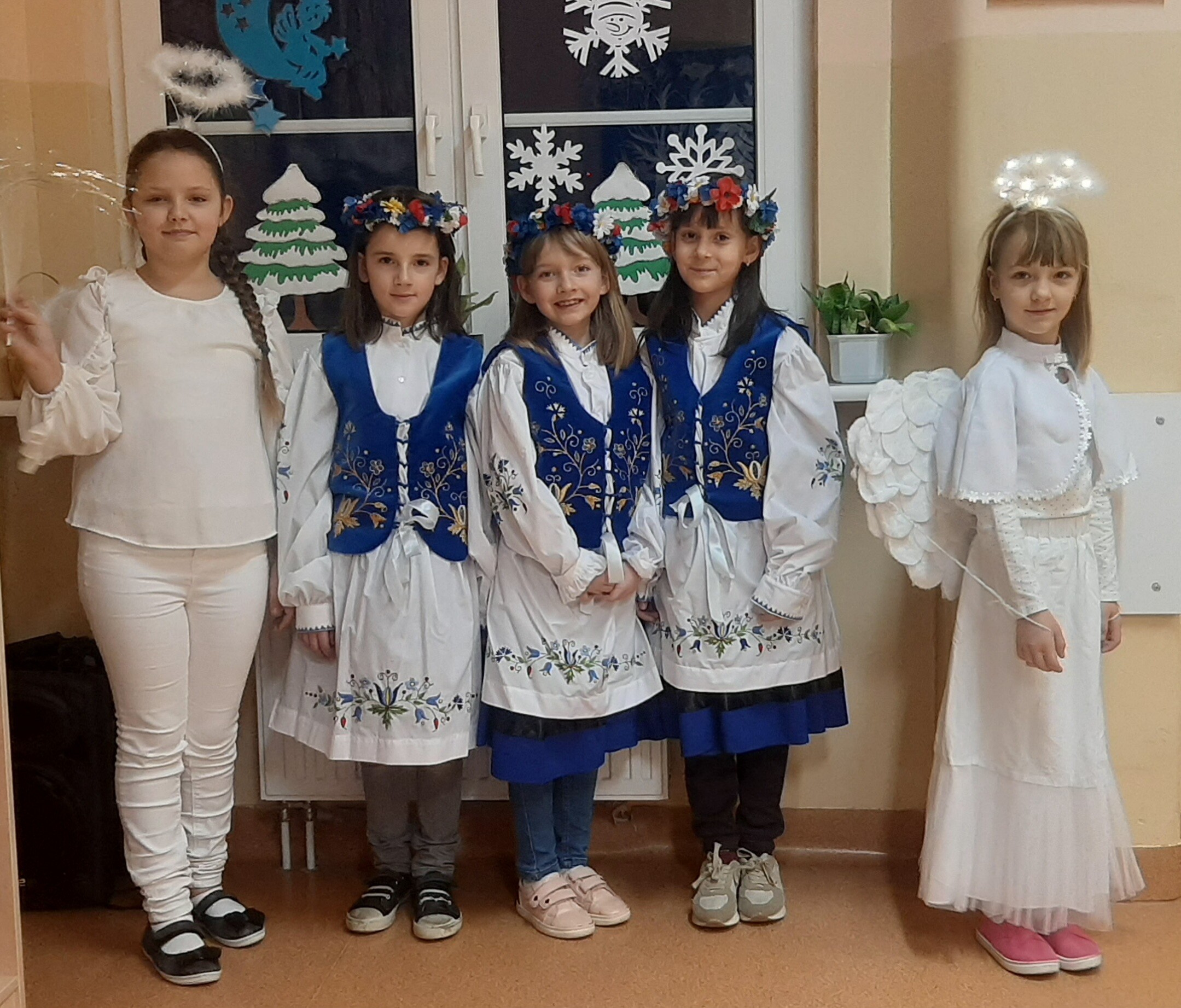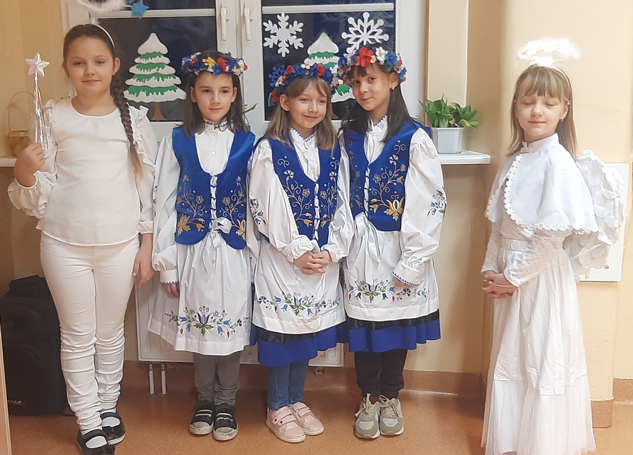 To kaszubscy kolędnicy, w których wcielili się uczniowie uczący się języka kaszubskiego. Śpiewali piękną kolędę Pòjmë do szopë i składali wszystkim uczniom oraz pracownikom naszej szkoły życzenia w języku kaszubskim.