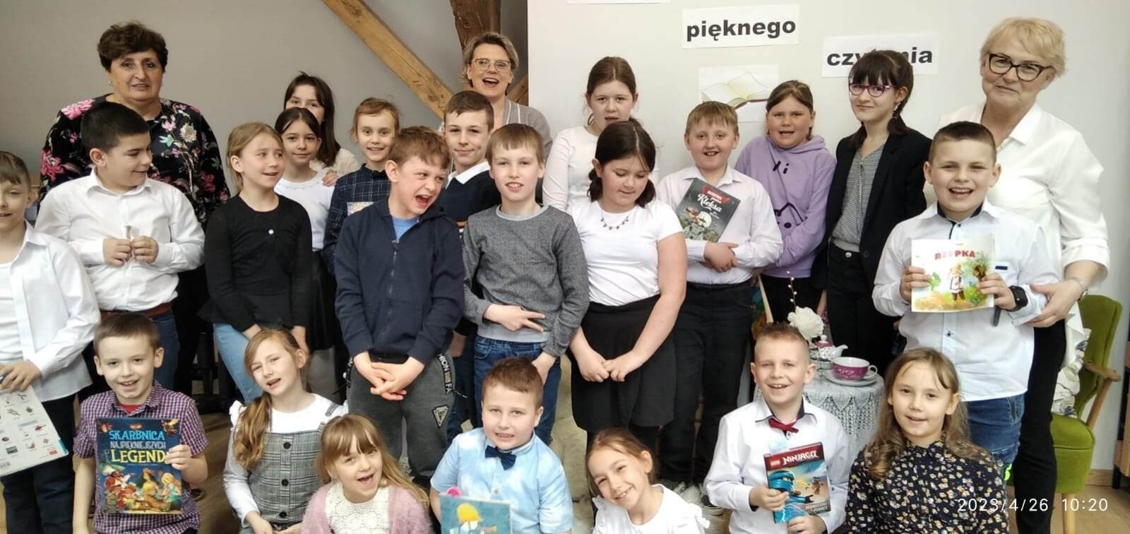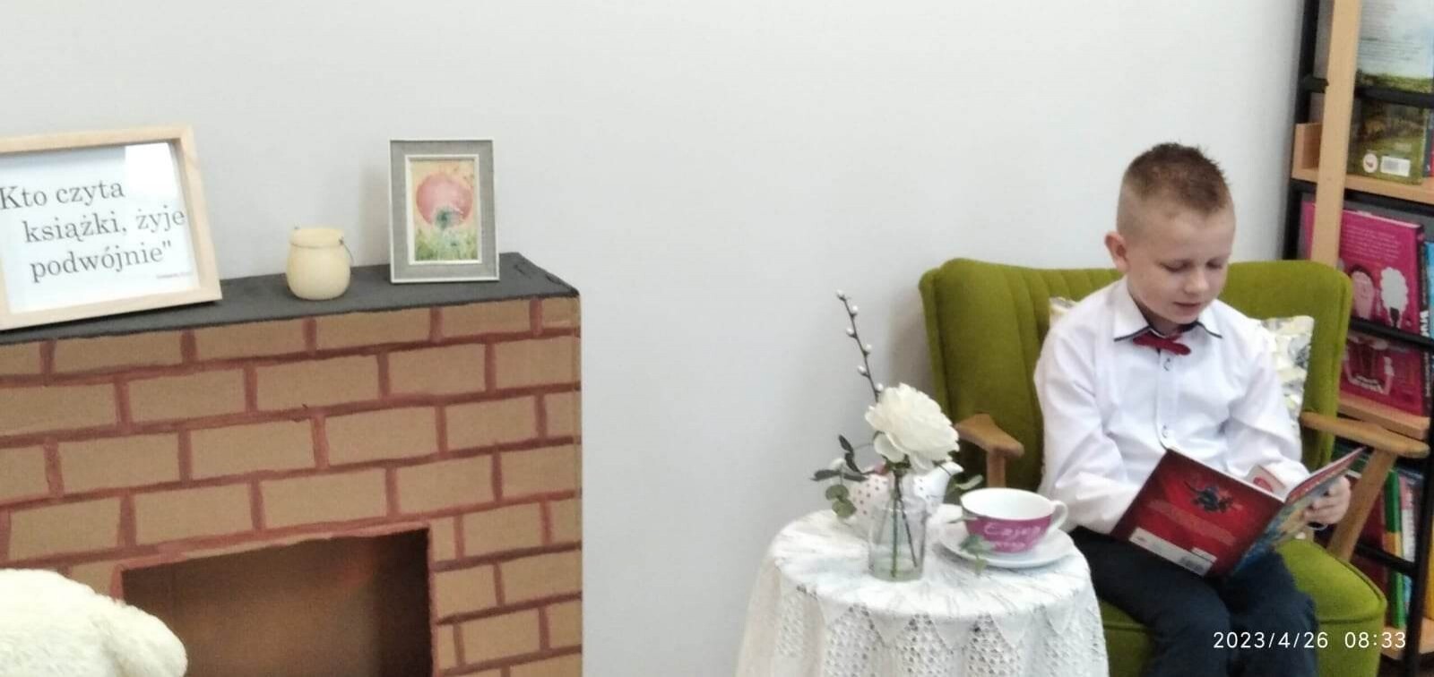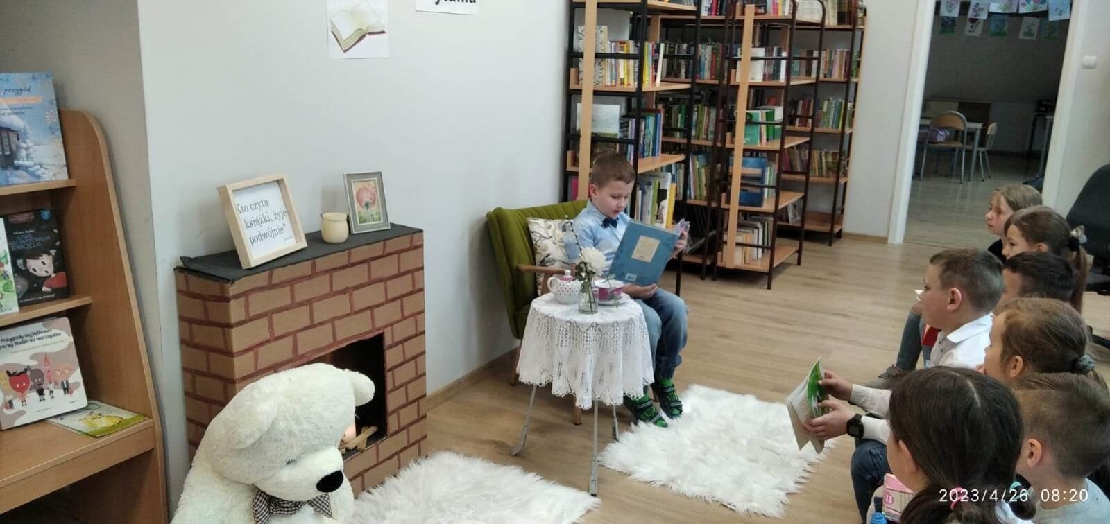 Konkurs pięknego czytania odbył się 26 kwietnia 2023 r. w bibliotece szkolnej. W wydzielonej części sali został stworzony salonik z kominkiem, fotelem i stoliczkiem z filiżanką „herbaty’’. Uczestnicy konkursu wygodnie zasiadali w fotelu i prezentowali wybrane przez siebie fragmenty książek oraz czytali teksty-niespodzianki przygotowane przez swoich nauczycieli. Jury w składzie Paulina Stolarczuk - aktorka i bibliotekarka z Miejskiej Biblioteki Publicznej w Ustce, Urszula Bugaj Momot i Ewa Czulak przyznało następujące miejsca : I - Martynie i Nadii Gontek, II - Zofii Małkowskiej i Jakubowi Torczukowi i III - Gabrielowi Jaskólskiemu i Sebastianowi Stachurze. Wyróżnienia otrzymali: Filip Pesta, Patryk Kilian i Agata Cuper. Wielkimi umiejętnościami oraz niebywałą odwagą popisali się najmłodsi uczestnicy konkursu: Bartek Szewczyk i Franek Baran z oddziału przedszkolnego, którzy pięknie przeczytali opowiadania o Kici Koci, za co jurorzy przyznali im wyróżnienia i nagrody specjalne. Brawo chłopcy! Słowa uznania należą się wszystkim dzieciom, które wykazały się starannością w prezentowaniu tekstów, skupieniem i ciekawymi interpretacjami czytanych utworów.