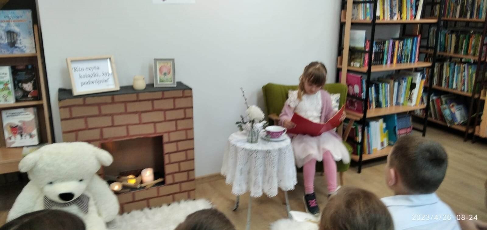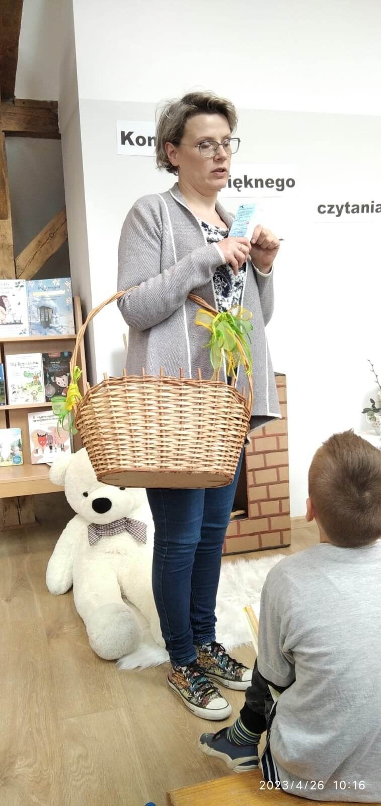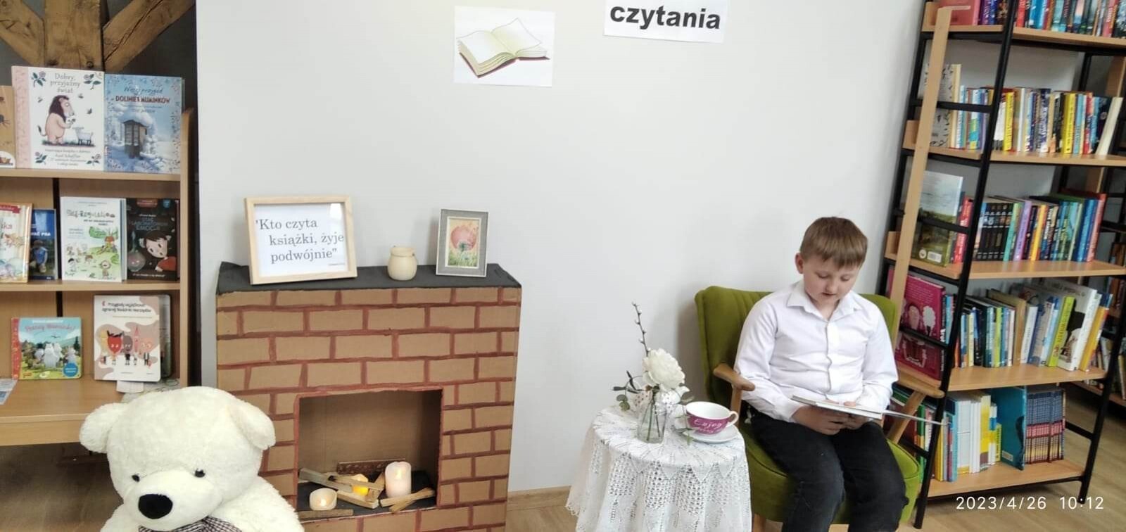 Konkurs pięknego czytania odbył się 26 kwietnia 2023 r. w bibliotece szkolnej. W wydzielonej części sali został stworzony salonik z kominkiem, fotelem i stoliczkiem z filiżanką „herbaty’’. Uczestnicy konkursu wygodnie zasiadali w fotelu i prezentowali wybrane przez siebie fragmenty książek oraz czytali teksty-niespodzianki przygotowane przez swoich nauczycieli. Jury w składzie Paulina Stolarczuk - aktorka i bibliotekarka z Miejskiej Biblioteki Publicznej w Ustce, Urszula Bugaj Momot i Ewa Czulak przyznało następujące miejsca : I - Martynie i Nadii Gontek, II - Zofii Małkowskiej i Jakubowi Torczukowi i III - Gabrielowi Jaskólskiemu i Sebastianowi Stachurze. Wyróżnienia otrzymali: Filip Pesta, Patryk Kilian i Agata Cuper. Wielkimi umiejętnościami oraz niebywałą odwagą popisali się najmłodsi uczestnicy konkursu: Bartek Szewczyk i Franek Baran z oddziału przedszkolnego, którzy pięknie przeczytali opowiadania o Kici Koci, za co jurorzy przyznali im wyróżnienia i nagrody specjalne. Brawo chłopcy! Słowa uznania należą się wszystkim dzieciom, które wykazały się starannością w prezentowaniu tekstów, skupieniem i ciekawymi interpretacjami czytanych utworów.