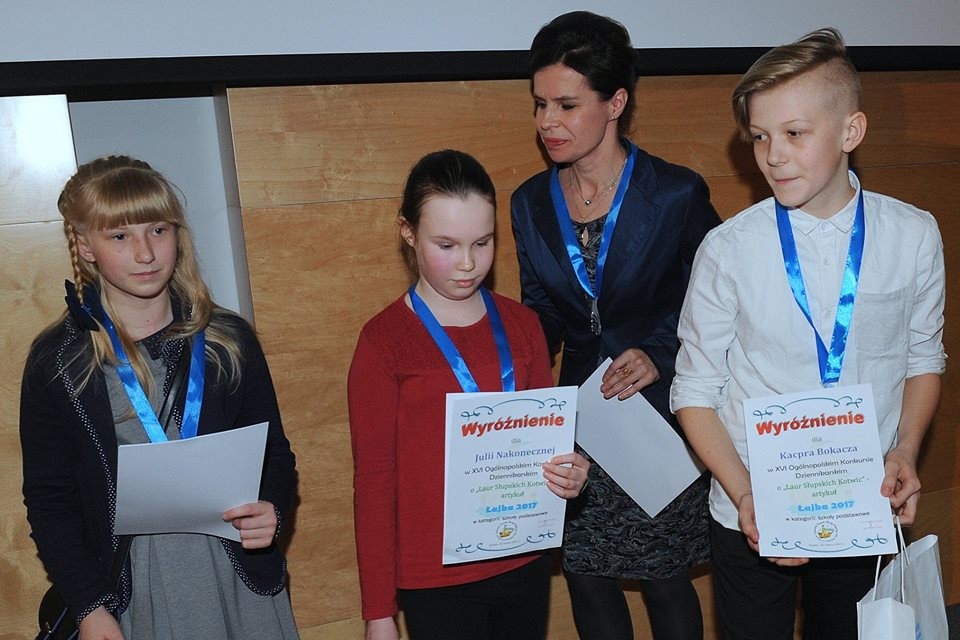 Od wielu lat uczniowie naszej szkoły biorą udział w festiwalu marynistycznym „Łajba” organizowanym przez Szkołę Podstawową nr 9 w Słupsku. Mogą w ten sposób rozwijać swoje uzdolnienia muzyczne, plastyczne, dziennikarskie, a od bieżącego roku nawet matematyczne. Z pewnością są to jedne z ciekawszych form edukacji morskiej realizowanych w placówce. Co roku nasi przedstawiciele odnoszą sukcesy w konkursach towarzyszących festiwalowi. Tak też się stało i w tym roku. Przywieźliśmy z „ Łajby” trzy nagrody. Roksana Garbolińska pięknie wykonała piosenkę „ Nie sprzedawajcie swoich marzeń” i została wyróżniona przez jury. Kacper Bokacz przygotował na Ogólnopolski Konkurs Dziennikarski artykuł „Przyczółki turystyczne polskiego wybrzeża”. Jego tekst o latarni morskiej w Ustce także spodobał się jurorom. Z kolei w konkursie o tytuł „ Mistrza nawigacji” świetnie spisał się Radosław Bieniek. Umiejętności nawigacyjne naszego piątoklasisty zostały docenione i choć trochę zabrakło do zdobycia głównego trofeum, to wyróżnienie również stało się powodem do wielkiej radości, zwłaszcza że Radek debiutował w zmaganiach konkursowych. Trochę mniej szczęścia miały tym razem „Wiolinki” oraz duet Łukasz Bartyzel i Stanisław Langer. Dla nas jednak wszyscy są zwycięzcami i zasługują na złoty medal.