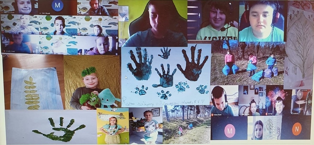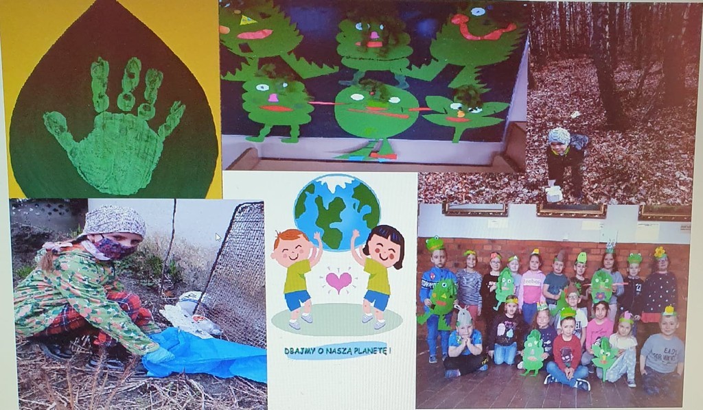 Nasza szkoła rokrocznie 22 kwietnia obchodzi Dzień Ziemi. Akcje związane z tym świętem prowadzone są na świecie zawsze wiosną od 1970 roku, czyli już 51 lat. Ich celem jest promowanie postaw proekologicznych w społeczeństwie. Nasi uczniowie w tym roku przyłączyli się do akcji poprzez posprzątanie własnej okolicy oraz wykonanie zielonego listka techniką dowolną. Na znak solidarności z naszą zieloną planetą ubrali się na zielono i odbili własną dłoń w kolorze zielonym. Jesteśmy świadomi, z czym zmaga się Ziemia i jak ważne są odnawialne źródła energii oraz recykling. Dzień Ziemi jest wspaniałą okazją, by przypomnieć o tym, że walka o dobro naszej planety trwa i każdy z nas może przyłączyć się do tej pokojowej batalii. Wiemy, że los planety jest w naszych rękach!