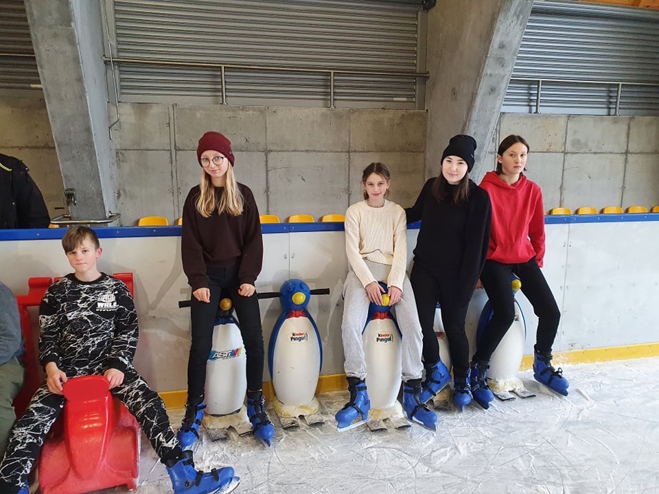 6 grudnia uczniowie z klas IV-VI wybrali się do kina „ Delfin” w Ustce na najnowszy film animowany Disneya „Nasze magiczne Encanto”, zaś dzień później na seans filmowy pojechały młodsze dzieci. Maluchy miały okazję obejrzeć bajkę „Gwiazdka Klary Mu”. Zarówno jedna, jak i druga opowieść bardzo się naszym widzom spodobały. Z zainteresowaniem śledzili przygody bohaterów oraz ich relacje rodzinne i przyjacielskie. Po powrocie najmłodsi namalowali piękne ilustracje do obejrzanej bajki. Oba wyjazdy zostały zorganizowane w ramach prezentu mikołajkowego. Inaczej mikołajki spędzili najstarsi uczniowie. Siódmoklasiści i ósmoklasiści pojechali do Redzikowa na lodowisko. Tam mogli się nie tylko zrelaksować, ale też zintegrować. Sprzyjała temu wspólna zabawa na lodzie i prowadzone rozmowy towarzyskie. Kolejne spotkanie z Mikołajem nastąpi w Wigilię. Uczniowie już nie mogą doczekać się tego dnia.
