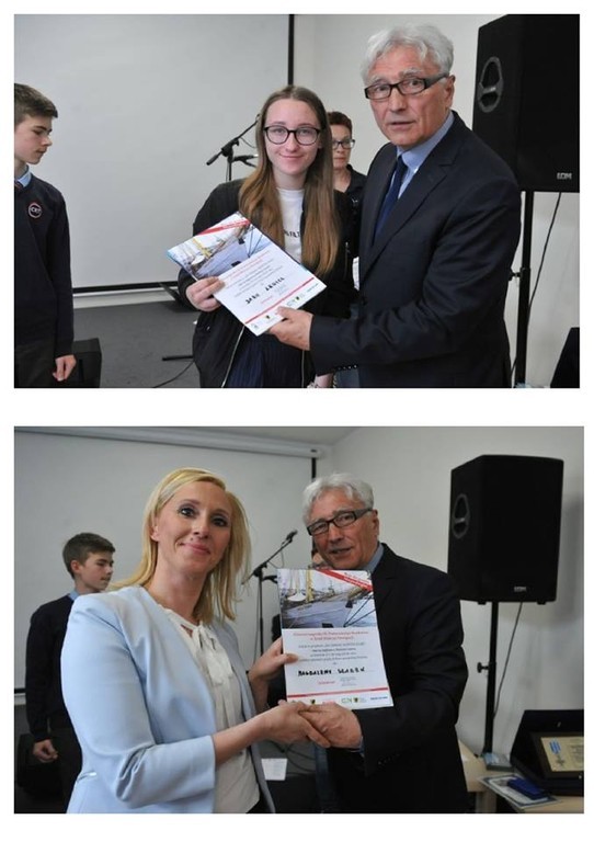 W ramach konferencji inaugurującej słupską część programu „Pomorskie Drogi do Niepodległej” nagrodzono najlepszych uczestników III Pomorskiego Konkursu o Tytuł Mistrza Nawigacji. Uroczystość odbyła się 23 kwietnia w Pedagogicznej Bibliotece Wojewódzkiej w Słupsku. Jury konkursu wyłoniło trójkę najlepszych i szóstkę wyróżniających się nawigatorów, dodatkowo wskazało również dziewięciu uczniów z terenu całego województwa pomorskiego, którzy w nagrodę za dobre wyniki wezmą udział w projekcie „Do granic Niepodległej”. Wśród nagrodzonych znaleźli się uczniowie z naszej szkoły. Kacper Bokacz, Daria Lewicz oraz Radosław Bieniek już w maju wezmą udział w rejsie żaglowcem "Zawisza Czarny". Przez cztery dni czekają ich zajęcia na pokładzie „Zawiszy Czarnego”, pływanie wzdłuż morskich granic II Rzeczypospolitej oraz zwiedzanie ważnych miejsc dla polskiej historii. Warto wspomnieć, że uczniowie przygotowywali się do konkursu kilka tygodni pod czujnym okiem pani Magdaleny Szałek. Gratulujemy i życzymy stopy wody pod kilem.