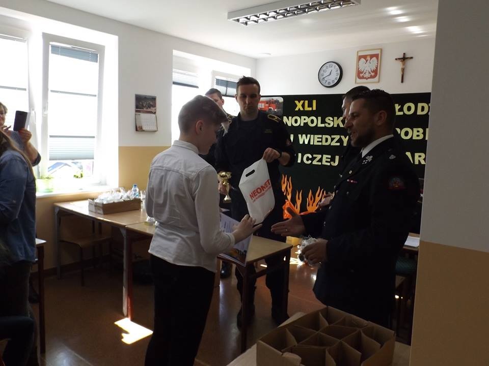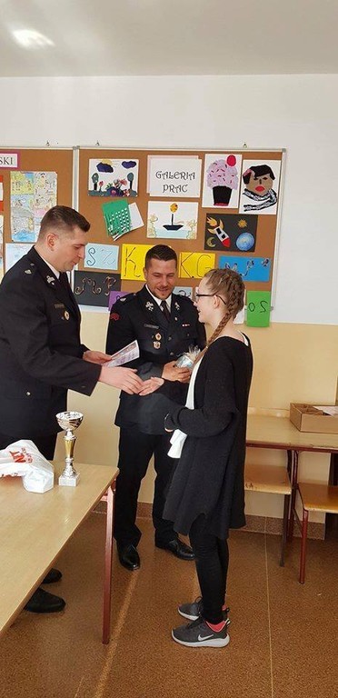 Dnia 19 marca 2018 roku w naszej szkole odbyły się eliminacje gminne Ogólnopolskiego Konkursu Wiedzy Pożarniczej „Młodzież zapobiega pożarom”, w których wzięło udział 15 uczestników z czterech szkół: Charnowa, Gąbina, Objazdy oraz Zaleskich. Tematyka konkursu obejmuje szeroko rozumiane ratownictwo i pożarnictwo, dlatego uczniowie w pierwszej części pisali test zawierający pytania dotyczące przepisów i zasad przeciwpożarowych, struktur OSP oraz historii pożarnictwa. W części drugiej odpowiadali ustnie na pytania komisji. Warto dodać, że konkurs został rozegrany w dwóch kategoriach: szkoła podstawowa i gimnazjum. Zwycięzcami konkursu w obu kategoriach zostali nasi uczniowie:Kacper Bokacz (jeszcze trzynastolatek) i Daria Lewicz (skończyła 14 lat). Będą oni reprezentować Gminę Ustka w eliminacjach powiatowych konkursu. Już dziś życzymy im powodzenia!
