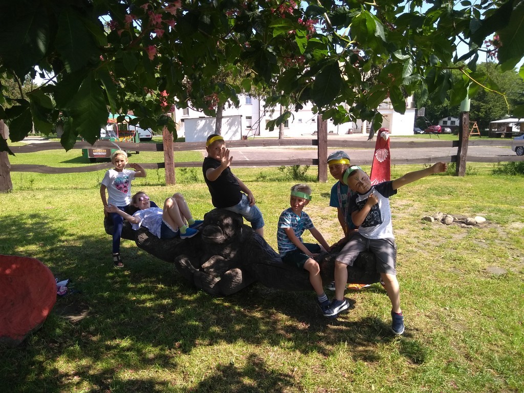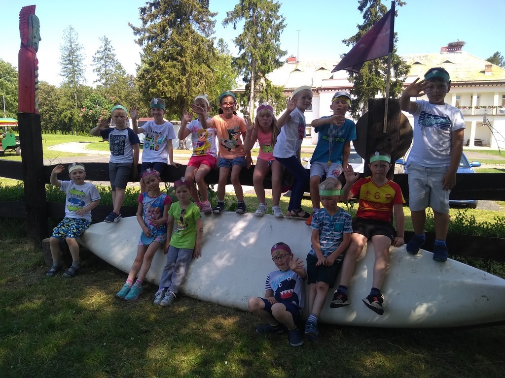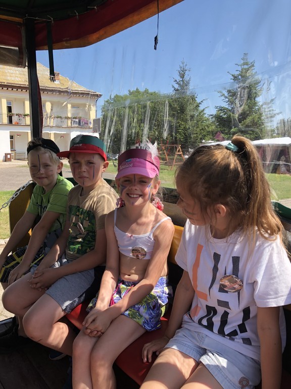 W dniu 05.06.2019r. dzieci z oddziału przedszkolnego oraz uczniowie z klas I – III wybrali się na wycieczkę do Runowa, gdzie wzięli udział w programie „Na indiańskiej ścieżce”. Podczas spotkania z Wielkim Wodzem dzieci miały okazję poznać ciekawostki z życia Indian. Wiele radości sprawiło im nadawanie przez Wodza niepowtarzalnych imion oraz nauka indiańskich okrzyków. Mali Indianie otrzymali specjalne opaski oraz zostali pięknie pomalowani przez pomocnice Wodza. Mogli również spróbować własnych sił strzelając z łuku. Wielką atrakcją była dla dzieci wizyta w miejscowej stajni oraz przejażdżka wozem po malowniczej okolicy. Na zakończenie głodni Indianie zostali poczęstowani kiełbaskami z grilla i mieli okazję pobawić się na placu rekreacyjnym. Mimo że upalna pogoda dała się wycieczkowiczom we znaki, wszyscy wrócili do szkoły bardzo zadowoleni i pełni wrażeń.