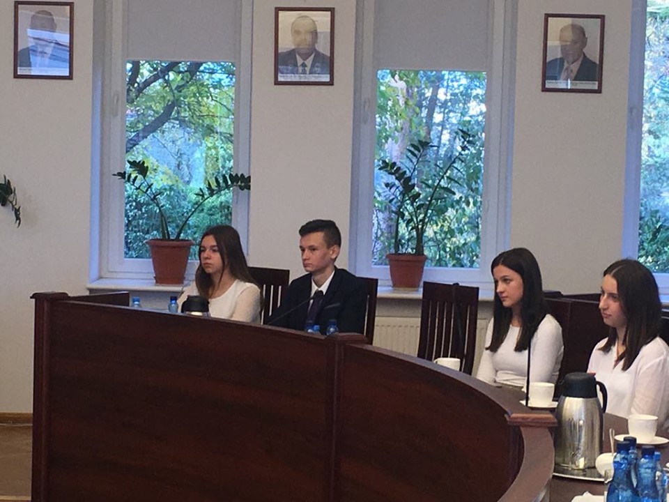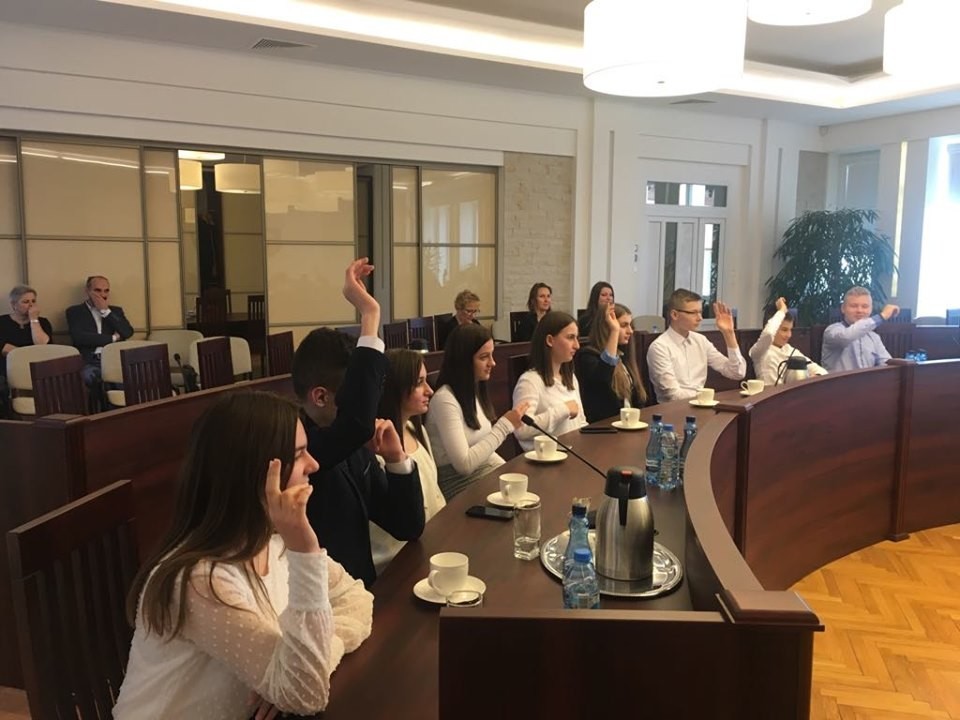 W dniu 30 października 2019 roku o godz. 14.00 w sali obrad Urzędu Gminy w Ustce odbyło się inauguracyjne posiedzenie Młodzieżowej Rady Gminy Ustka, w skład której wchodzą również uczniowie naszej szkoły: Jakub Godzieba, Jagoda Łukomska oraz Aleksandra Schutta. Opiekunem ósmoklasistów jest pani Marta Miotk. Podczas sesji młodzi Radni złożyli ślubowanie oraz wybrali prezydium. Jagoda została wiceprzewodniczącą Młodzieżowej Rady Gminy, a Ola przewodniczącą Komisji Rewizyjnej. W czasie spotkania pani wójt Anna Sobczuk – Jodłowska wygłosiła młodym samorządowcom pogadankę na temat administracji oraz życzyła im wszelkiej pomyślności w realizacji planów.