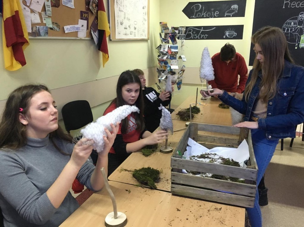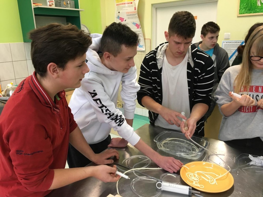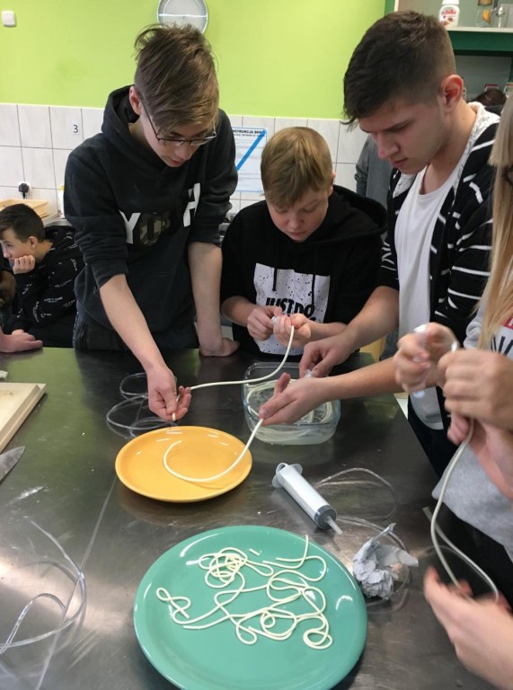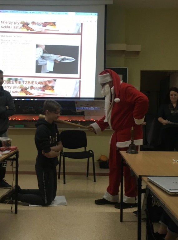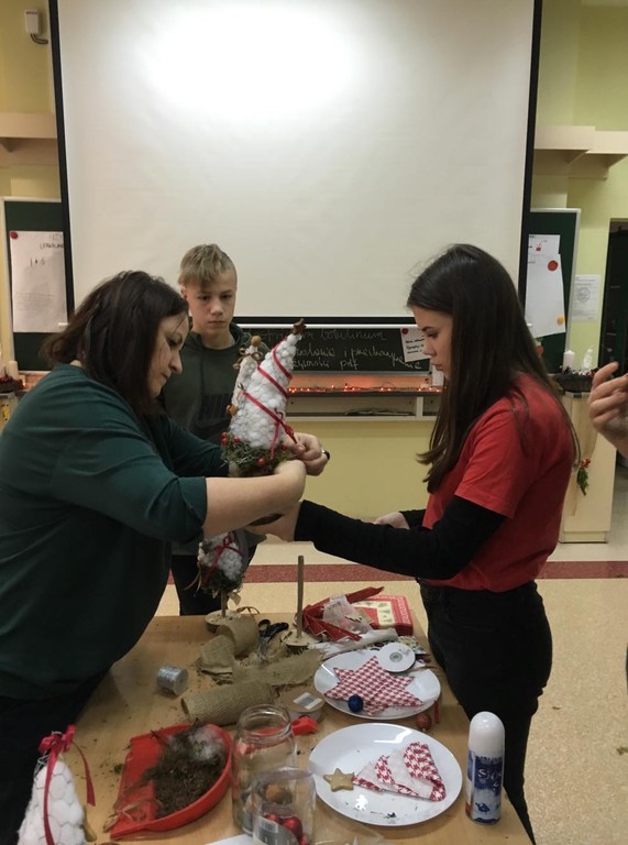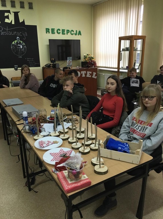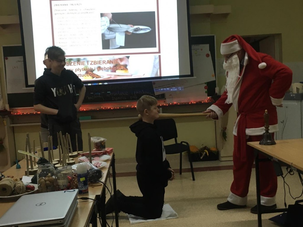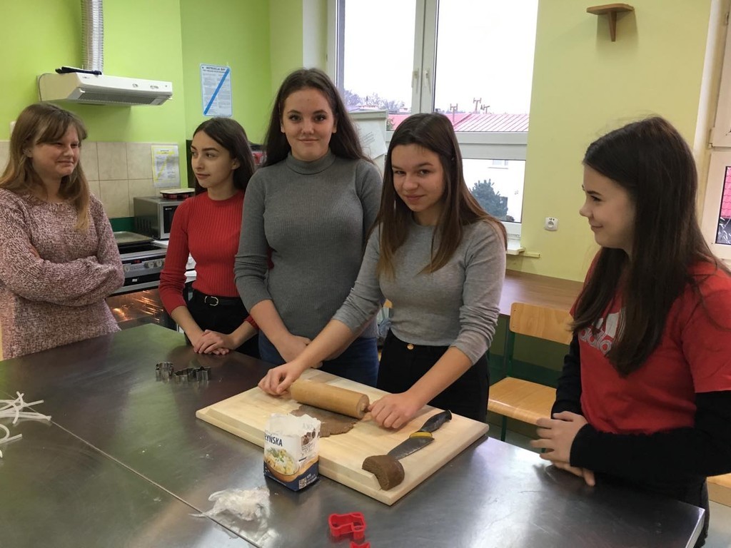 6 grudnia nasi ósmoklasiści mieli przyjemność uczestniczyć w warsztatach, które odbyły się w Zespole Szkół Ogólnokształcących i Technicznych w Ustce. Podczas niezwykle ciekawych zajęć uczniowie zgłębili tajniki kuchni molekularnej. Upiekli świąteczne pierniki, przyrządzili wędzoną pierś z nutą pomarańczy oraz makaron spaghetti w sosie śmietanowym. Z wielką uwagą wzięli udział w zajęciach z robotyki, a także wykonali piękne stroiki choinkowe. Podczas warsztatów pojawił się również Święty Mikołaja, który obdarował wszystkich cukierkami. Był to bardzo udany wyjazd. Być może niektórzy z naszych przyszłych absolwentów podejmą decyzję, by kolejne lata nauki spędzić w tej gościnnej i wspaniale wyposażonej szkole.