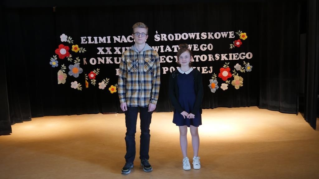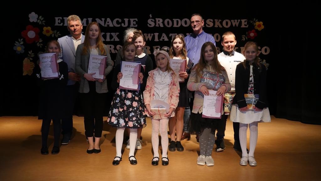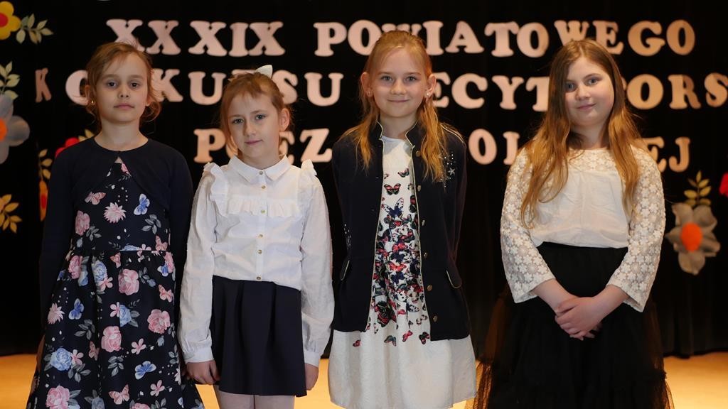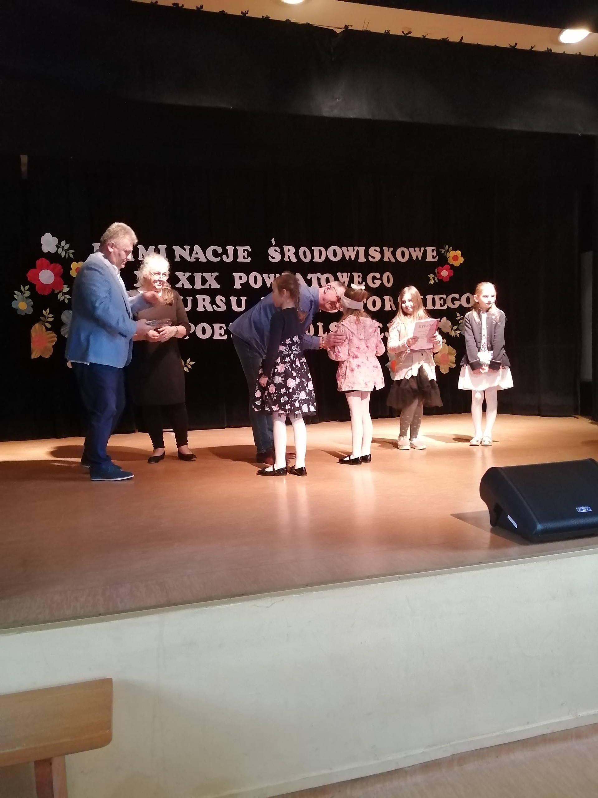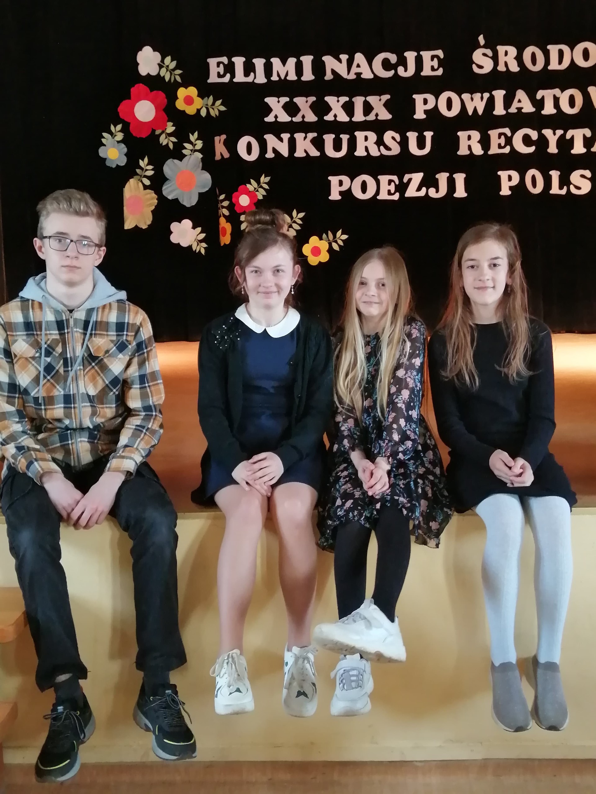 Miło nam poinformować, że w eliminacjach środowiskowych XXXIX Powiatowego Konkursu Recytatorskiego Poezji i Prozy Polskiej w kategorii uczniów klas I-III Zofia Małkowska z klasy II zdobyła I miejsce, a pierwszoklasistka Nadia Gontek - II miejsce. Natomiast w kategorii uczniów klas VII-VIII Gabriela Sieradzka zajęła III miejsce. Recytatorów oceniało jury w składzie: Zorza Sędzicka, Zbigniew Podolak i Tomasz Ruta. Zosia i Nadia otrzymały również nominacje do etapu powiatowego, który odbędzie się 3 czerwca w Teatrze „Rondo” w Słupsku. Oprócz nagrodzonych osób naszą szkołę reprezentowali jeszcze Lena Miloch, Karolina Sieradzka oraz Piotr Paul. Wszyscy spisali się świetnie.