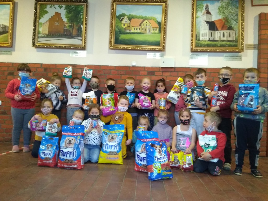Szczególnie dziękuję uczennicom klasy VIII, Marcelinie Ptaszkowskiej oraz Konstancji Zielińskiej za pomoc w zorganizowaniu tej akcji, a także pani Magdalenie Ptaszkowskiej za przewiezienie wszystkich darów na miejsce. Dzięki dużemu zaangażowaniu i zrozumieniu potrzeb czworonogów zgromadziliśmy spore ilości karmy, zabawek i innych akcesoriów.
