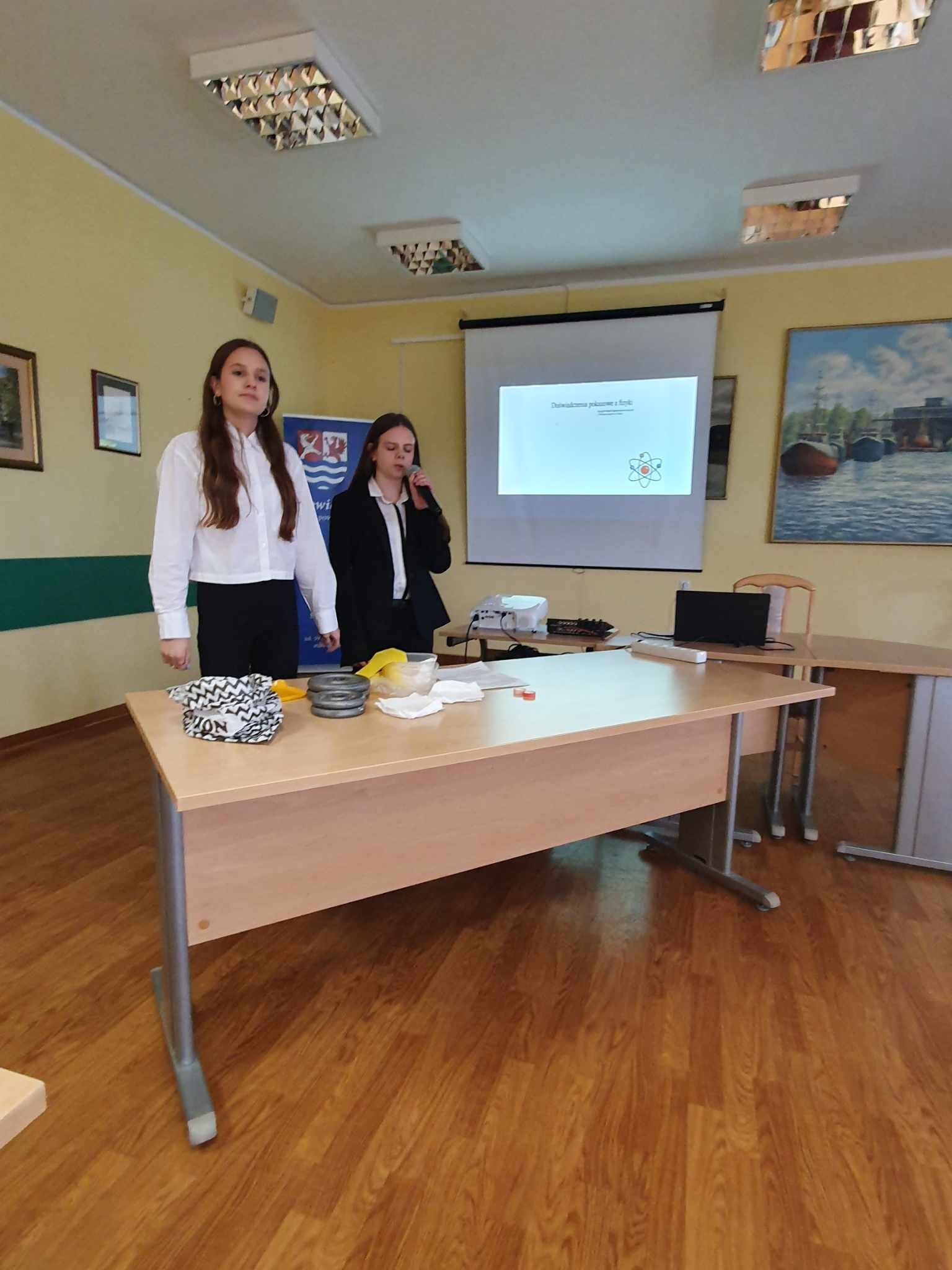 Z naszej szkoły, do udziału w rywalizacji zgłosiło się sześcioro pasjonatów fizyki z klasy VIII tj. Lena Adamczewska, Lena Ziemska, Maja Seńko, Oliwier Kaczor, Maciej Sieńko, Aleksander Odnoczko. Zgodnie z regulaminem konkursu, dzieci w parach prezentowały przygotowane wcześniej doświadczenia fizyczne. Oceny prezentowanych doświadczeń dokonywało jury składające się z nauczycieli fizyki oraz wykładowców z Uniwersytetu Pomorskiego w Słupsku. Młodzi fizycy z naszej szkoły zaprezentowali trzy doświadczenia pt.: „Nawet jajko potrafi być silne!”, „Boska równowaga”, „Ciepło zimno”.
