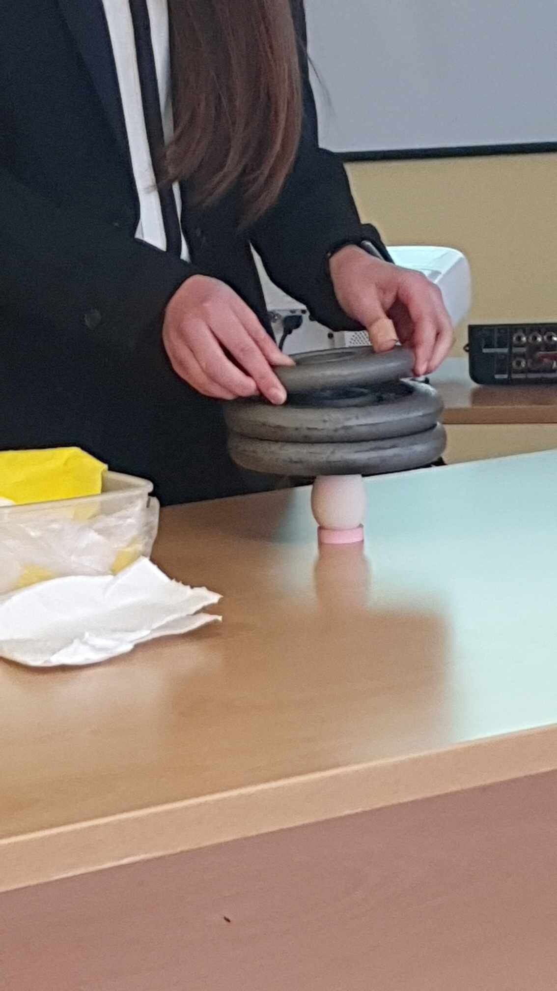 Rywalizacja z pozostałymi uczestnikami była trudna i stała na wysokim poziomie. Wszyscy konkurenci byli wspaniale przygotowani, prezentowali ciekawe doświadczenia oraz wykazali się dużą wiedzą z zakresu fizyki. Pomimo tego nasza delegacja w składzie: Lena Ziemska i Lena Adamczewska, zrobiła duże wrażenie na jury zajmując III miejsce w konkursie. Obie dziewczynki przygotowały doświadczenie pt. „Nawet jajko potrafi być silne!”. Zaprezentowały niezwykłą wytrzymałość jajka na obciążenie siłami zewnętrznymi. W ramach doświadczenia dziewczynki położyły na ustawionym pionowo jajku kilku kilogramowe obciążniki. Skorupka jajka wytrzymała to obciążenie. Nasze zawodniczki w bardzo merytoryczny sposób wyjaśniły jakie prawa fizyki i mechaniki spowodowały, że nie doszło do zniszczenia skorupy jajka.