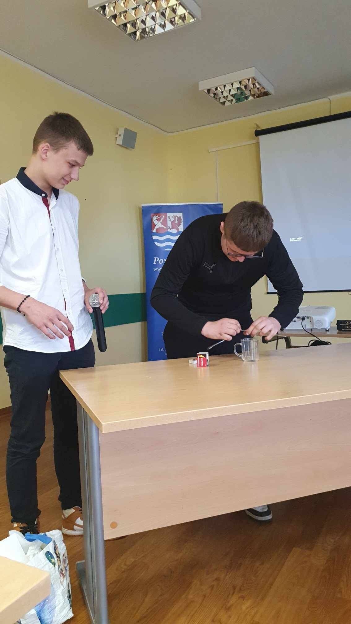 W dniu dzisiejszym uczniowie naszej szkoły wzięli udział w powiatowym konkursie „Doświadczenia pokazowe z fizyki”, który odbył się w Zespole Szkół Ogólnokształcących i Technicznych w Ustce. Konkurs przeznaczony był dla uczniów klas VII - VIII szkół podstawowych oraz dla uczniów szkół ponadpodstawowych.