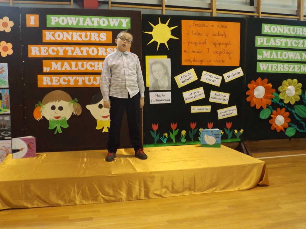 Konkursowi recytatorskiemu „Maluchy recytują” towarzyszył konkurs plastyczny „Malowane wierszem”, który odbył się w trzech kategoriach wiekowych. Dzieci malowały ilustracje do wierszy Marii Terlikowskiej. Pierwszaki ilustrowały wiersz „Leć rakieto”, dzieci z klasy drugiej - „Przedwiośnie”, a uczniowie klasy trzeciej - „Piękna jest Warszawa”.