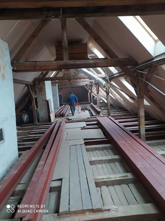 W naszej szkole od 10 lutego 2021 r. trwają prace remontowe, których celem jest adaptacja poddasza na potrzeby uczniów i nauczycieli. Zgodnie z planami do 20 lipca br. mają tam powstać pomieszczenia biblioteczne, świetlica, klasa do zajęć artystycznych, archiwum oraz toaleta. Wymianie ulegnie instalacja elektryczna oraz zostaną zamontowane urządzenia sanitarne. Konieczne jest również przystosowanie klatki schodowej prowadzącej na strych, w tym zdemontowanie schodów drewnianych i zbudowanie betonowych. Koszt inwestycji to blisko 900 tysięcy złotych.