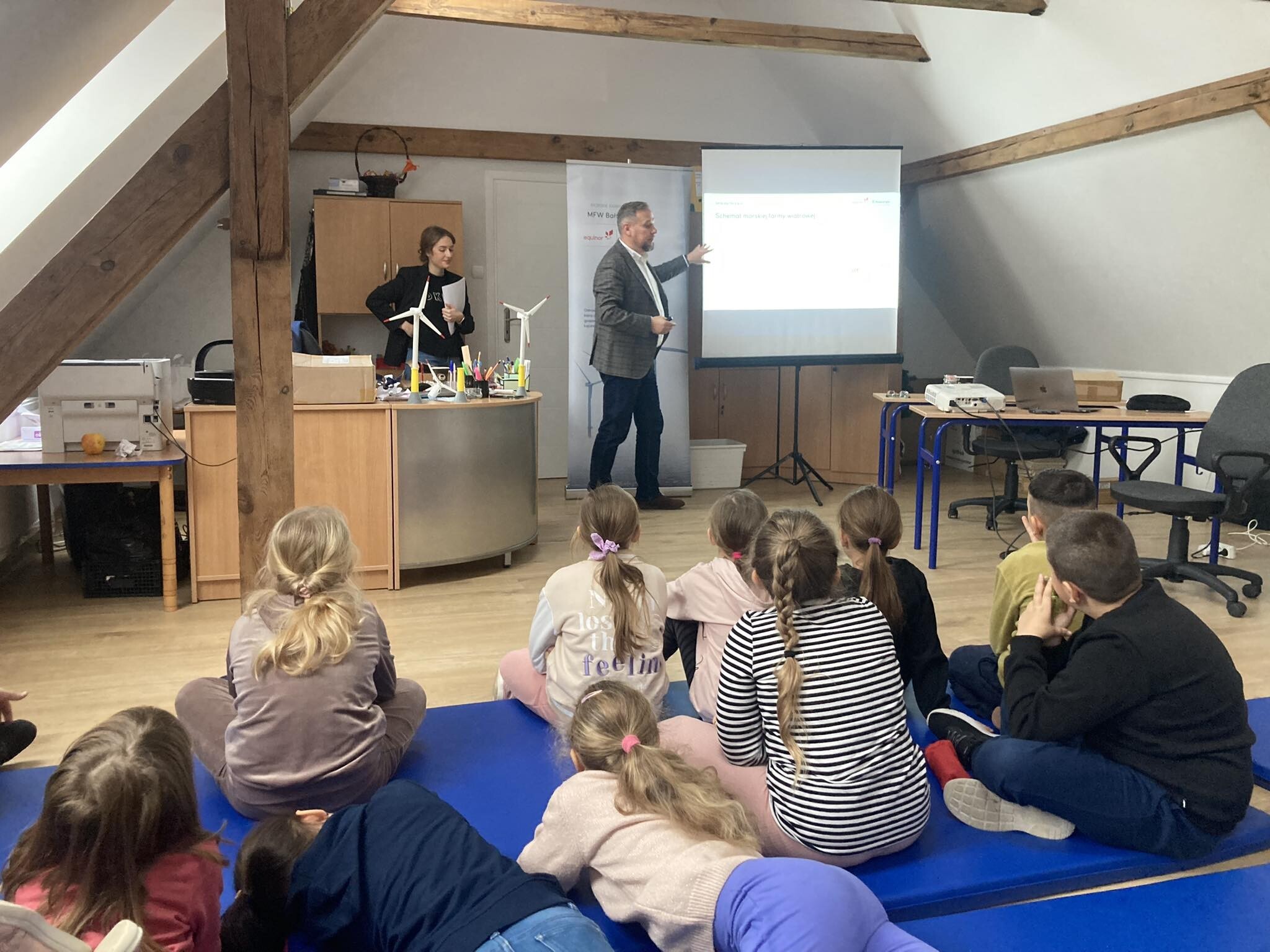 29 listopada odbyły się w naszej szkole prelekcje w temacie morskiej energetyki wiatrowej pod tytułem „Jedno morze wiele korzyści”. Uczniowie dowiedzieli się, jak działają turbiny na morzu, jak są kotwiczone do dna morza, a także jakie niosą za sobą korzyści.