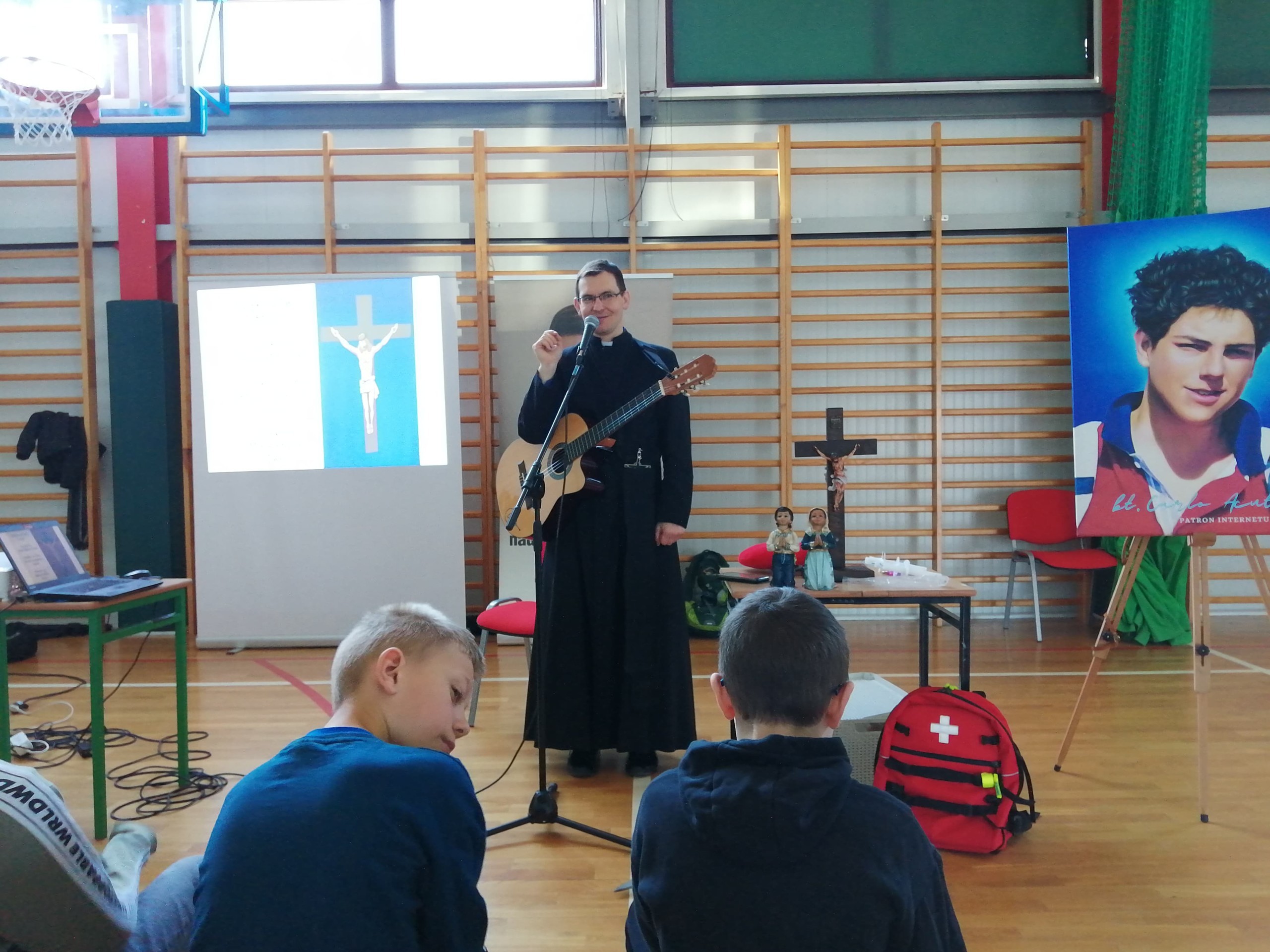 Tradycyjnie przed Świętami Wielkiej Nocy w naszej szkole odbywają się rekolekcje wielkopostne. W tym roku trwały one trzy dni, od 11 do 13 kwietnia 2022 r., a prowadził je ksiądz Łukasz Skołud ze zgromadzenia Misjonarzy Świętej Rodziny. Przywołane przez duchownego świadectwa osób popularnych i cenionych, Roberta Lewandowskiego oraz Kamila Stocha uświadomiły wszystkim, że wiary nie należy się wstydzić. Obaj sportowcy na co dzień przyznają się, że są ludźmi wierzącymi i Pan Bóg jest dla nich bardzo ważny. Uczniowie poznali również biografię błogosławionego Carla Acutisa, chłopca zmarłego na białaczkę w wieku 15 lat. Wykorzystywał on internet do ewangelizacji i propagowania wiary.