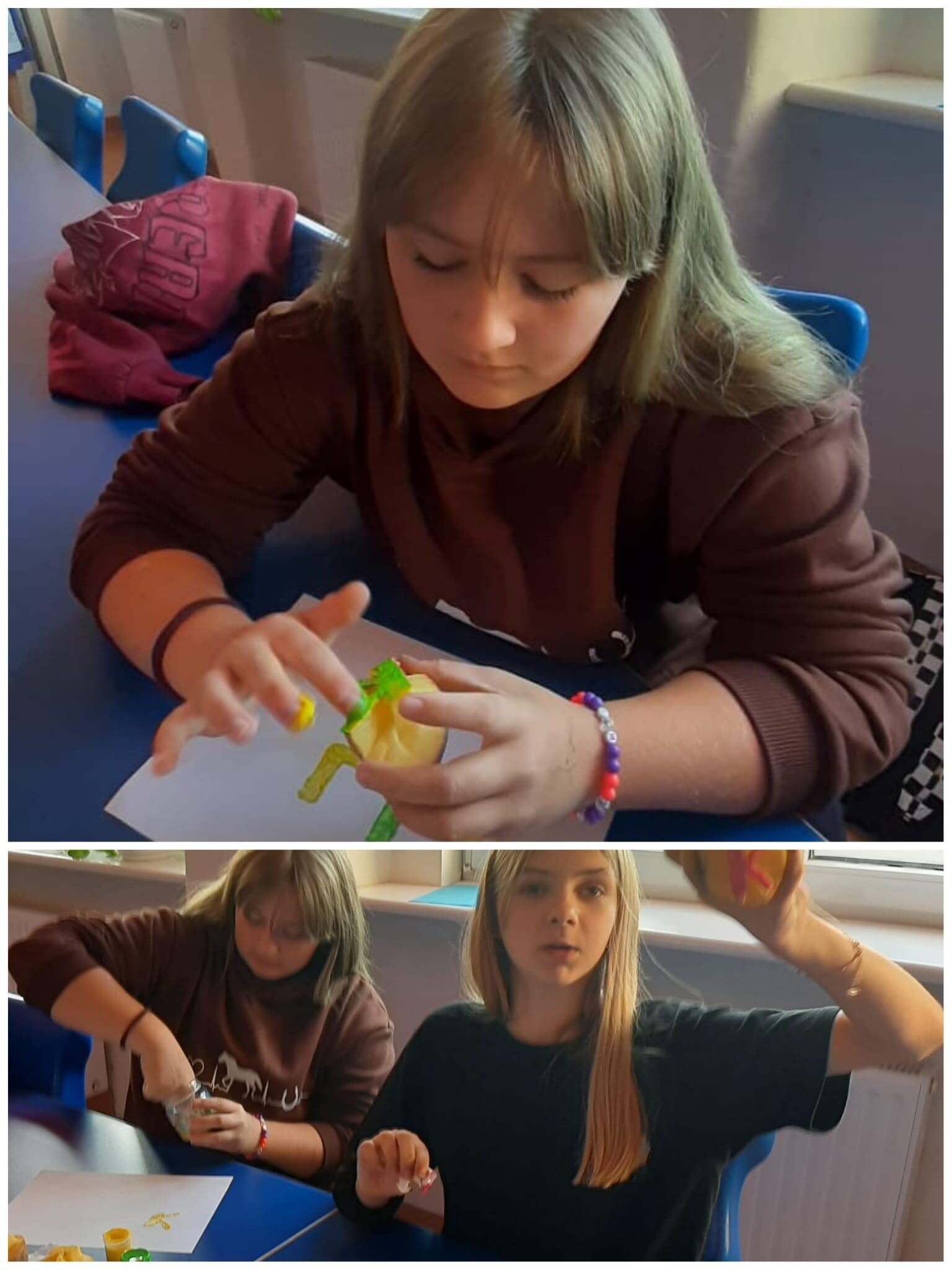 Ta bardzo popularna zabawa sprawiła dzieciom wiele radości, co odzwierciedlają załączone zdjęcia. Uczniom gratulujemy kreatywności i życzymy kolejnych inspirujących aktywności.