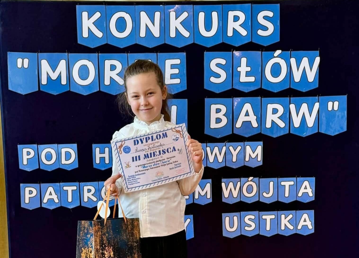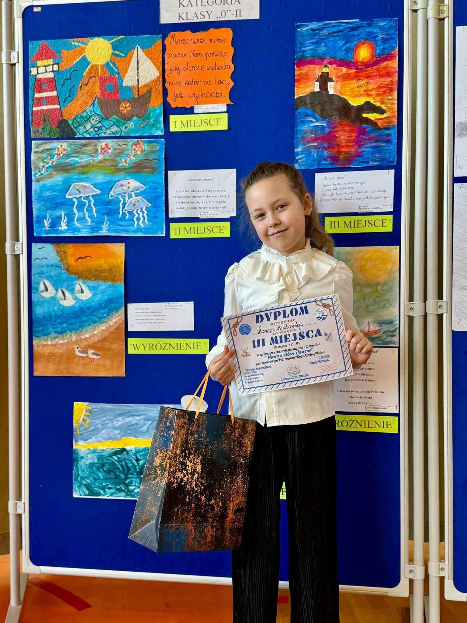 Hanna Kozłowska, uczennica klasy drugiej, zajęła III miejsce w Gminnym Konkursie Plastyczno-Literackim „MORZE SŁÓW I BARW” pod patronatem Wójta Gminy Ustka, zorganizowanym przez Zespół Szkolno - Przedszkolny w Objeździe.