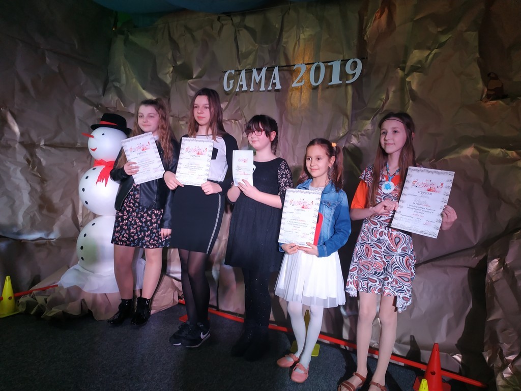 Dnia 8 lutego 2019 w Charnowie odbył się Miejsko-Gminny Konkurs Solowej Piosenki Dziecięcej „GAMA 2019” dla uczniów szkół podstawowych rywalizujących w czterech kategoriach. Nasze uczennice, pod kierunkiem pani Urszuli Tamulis, nie miały sobie równych i zostały laureatkami w trzech kategoriach:
